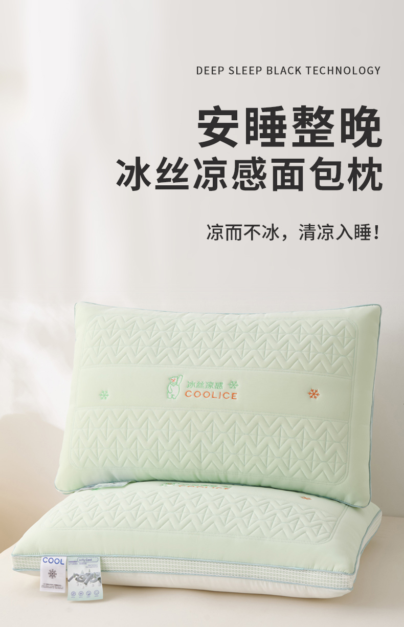 当前位置: 91家纺网 > 商品网购 > 枕头/枕芯/保健枕/颈椎枕 > 普通枕芯 > 蝶飞舞 2025新款刺绣冰丝凉感枕头枕芯 绿色 面包枕48*74cm/900g