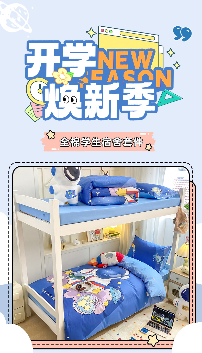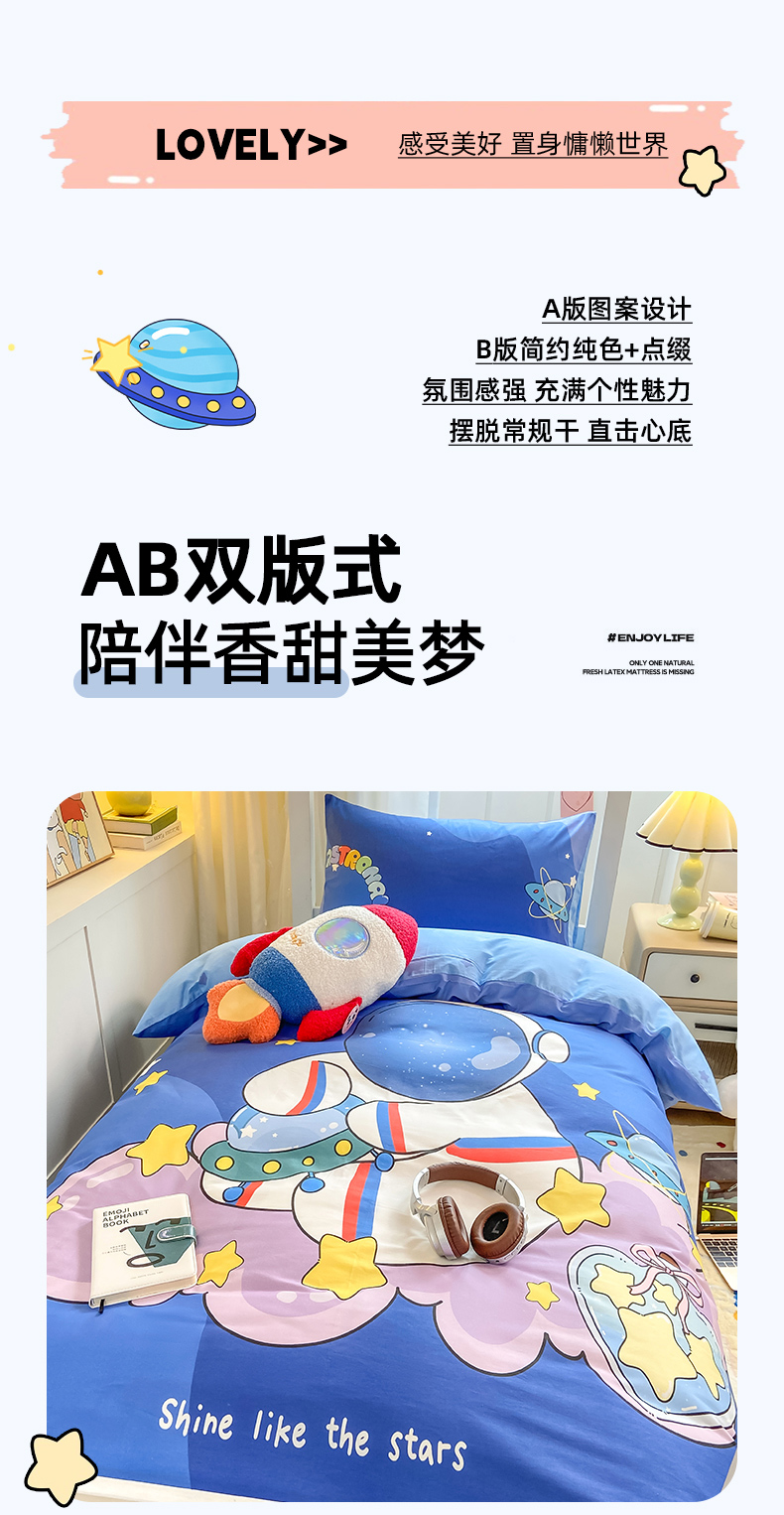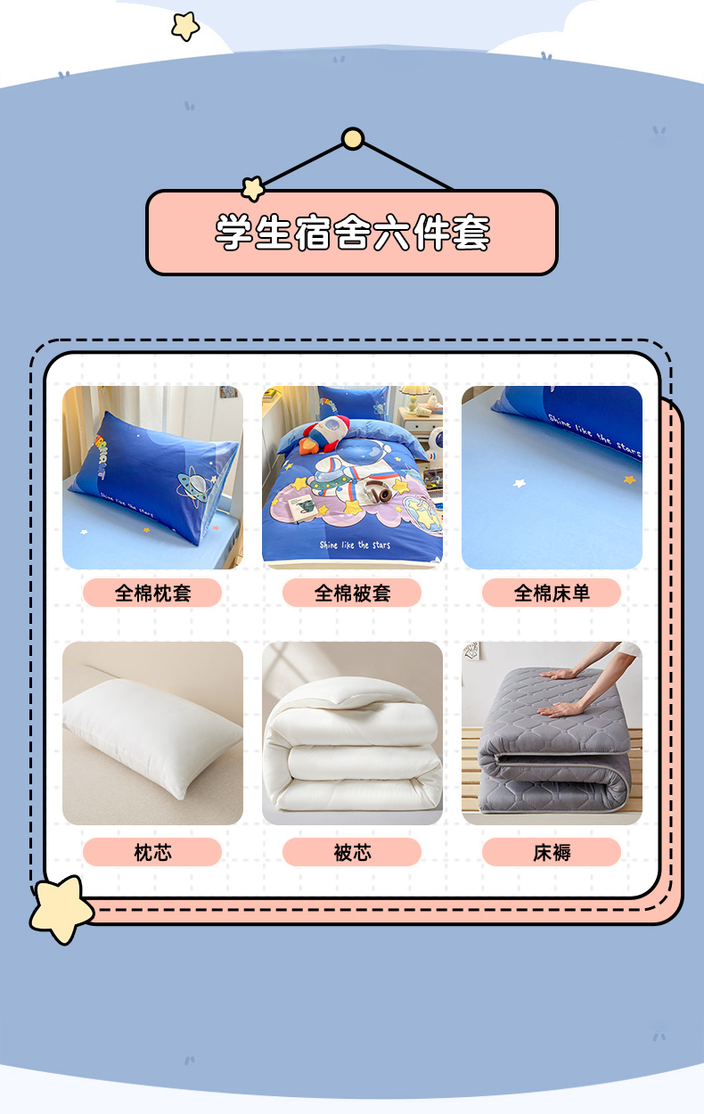 当前位置: 91家纺网 > 商品网购 > 床品套件 > 四件套 > 全棉普通四件套 > 博雅 2025新款全棉纯棉学生宿舍上下铺六件套-宇航员系列 星际宇航员