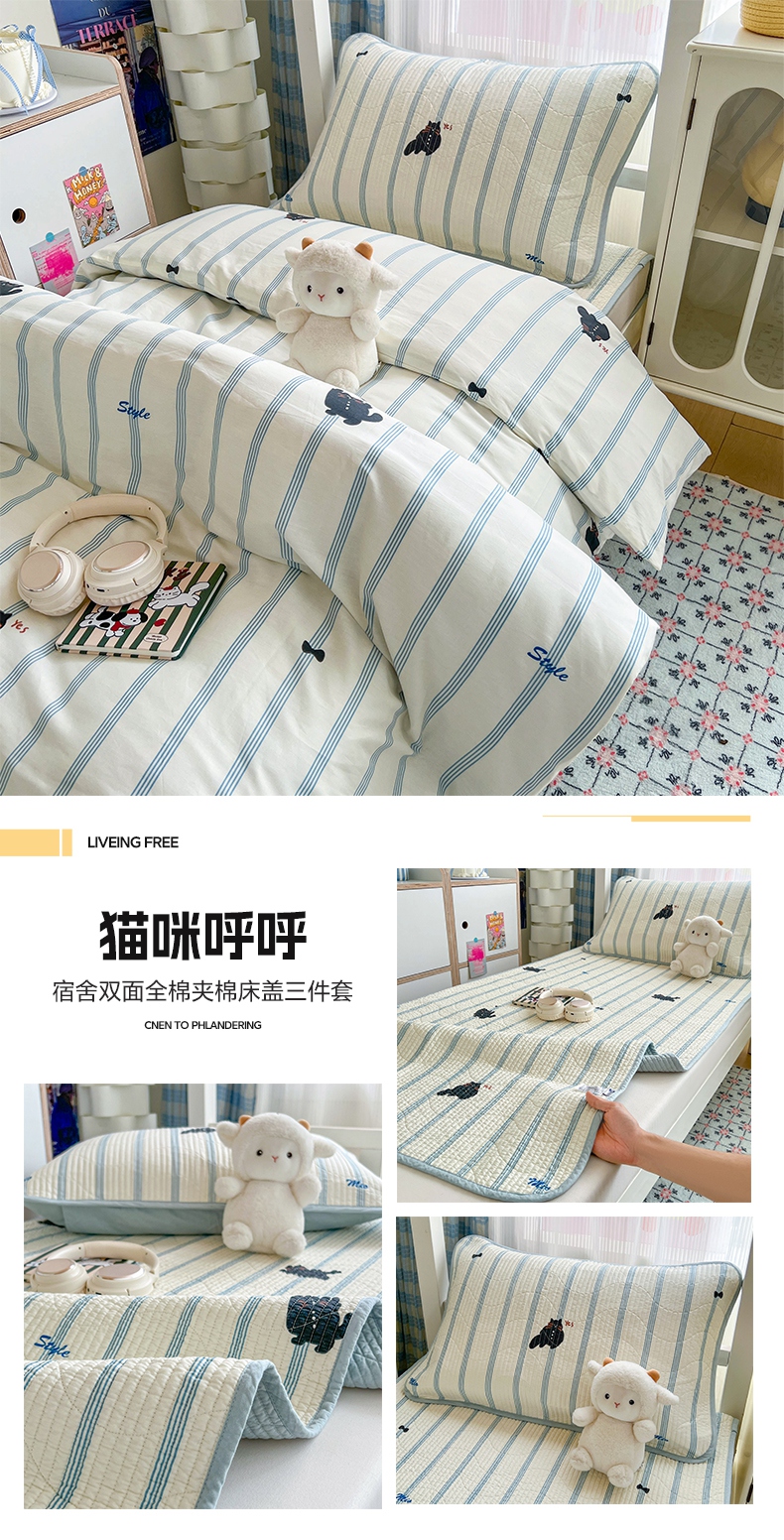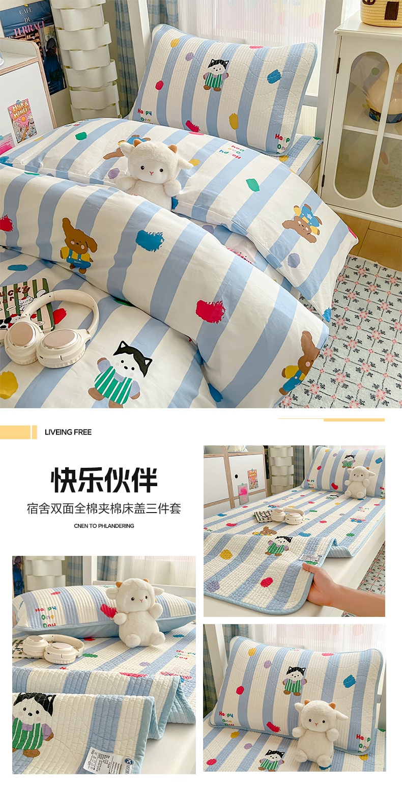 商品名称:沐纯家居 2025新款学生款双面纯棉棉花床盖三件套 南瓜派