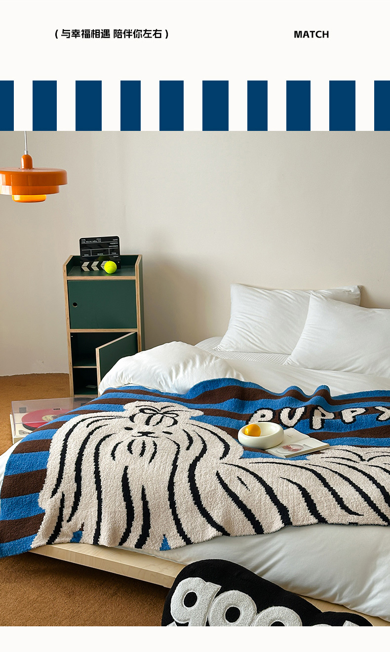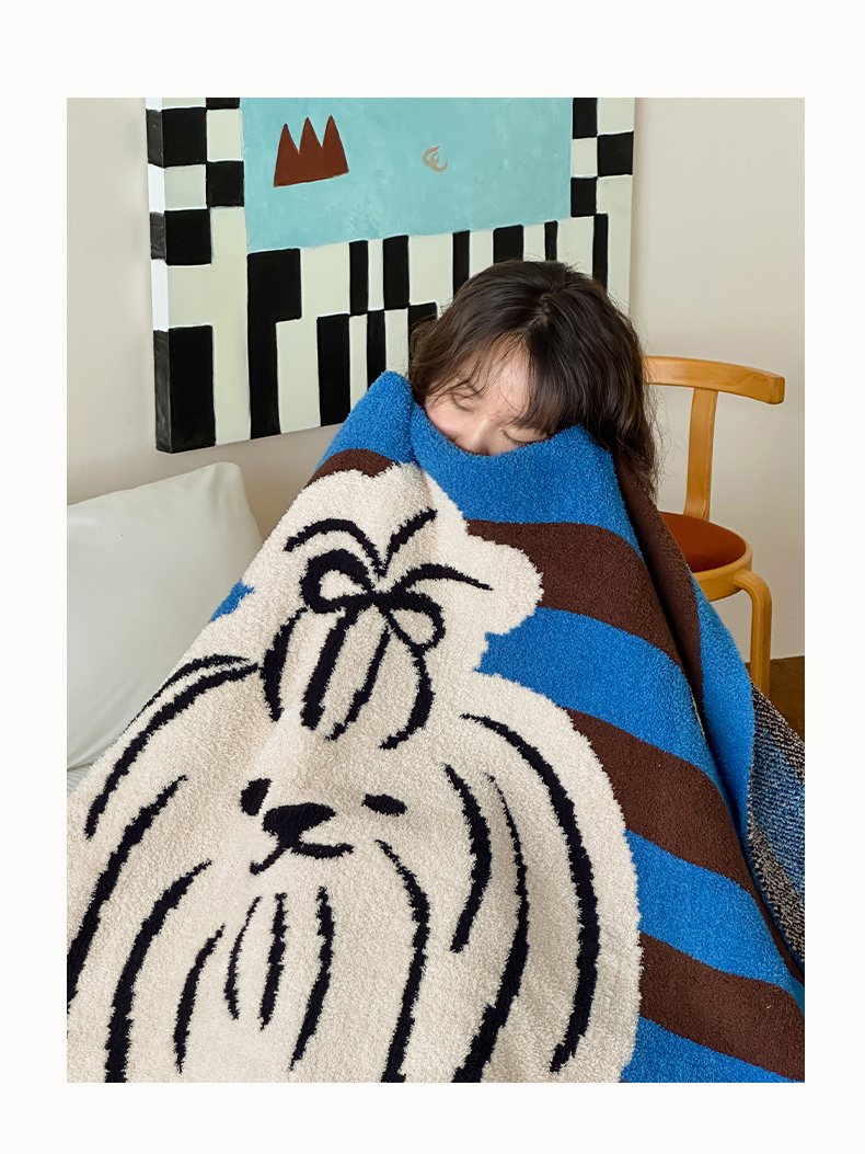 (总)RYB红黄兰 2025新款设计师原创抽条280g兔兔绒羊羔绒加厚毛毯,组合图,奶油西高地,波点黑猫,咖色潦草狗,蓝色兔兔,星星蝴蝶结