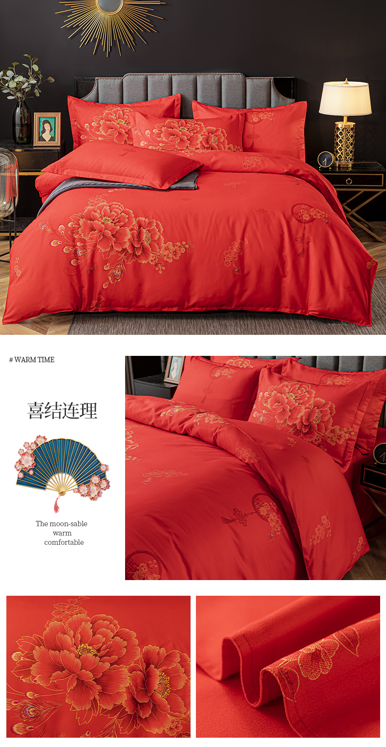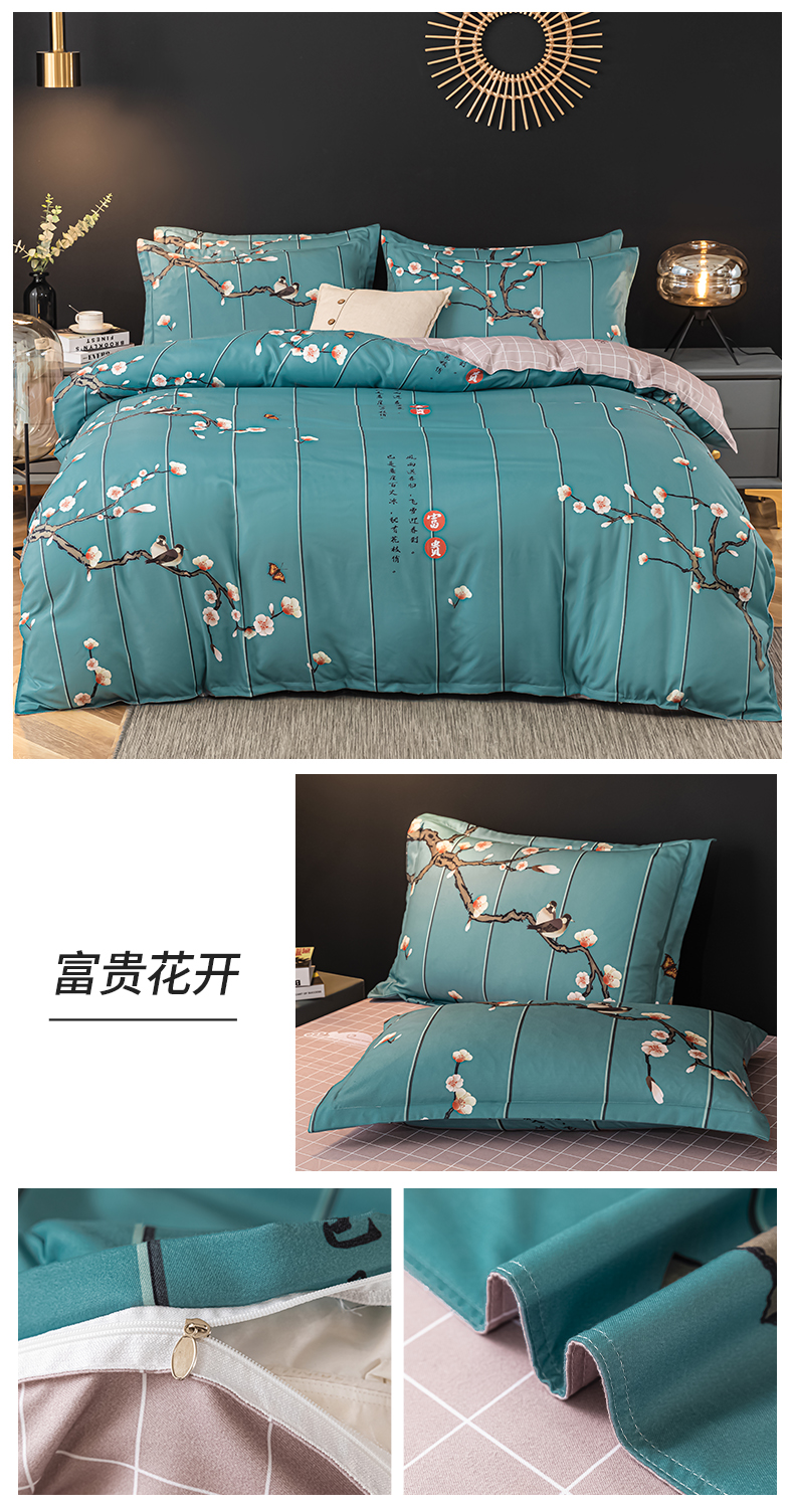 商品名称:文黛家居 2025新款-植物羊绒大版花四件套 百鸟朝凤