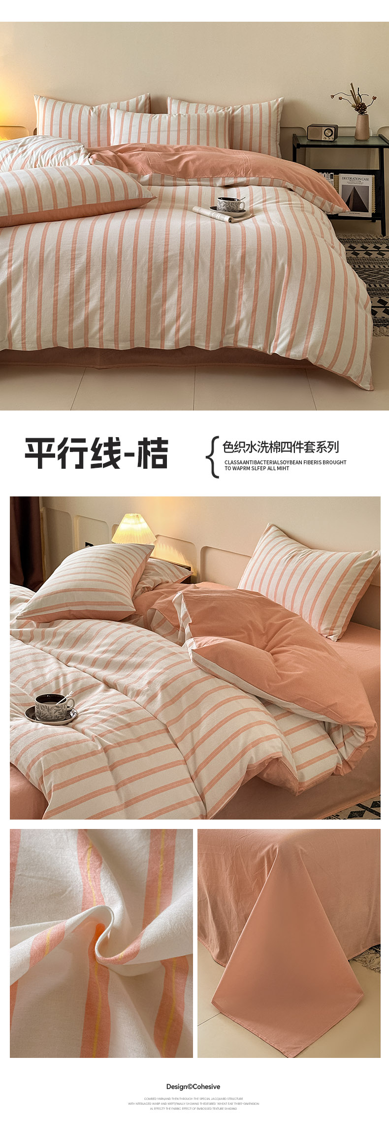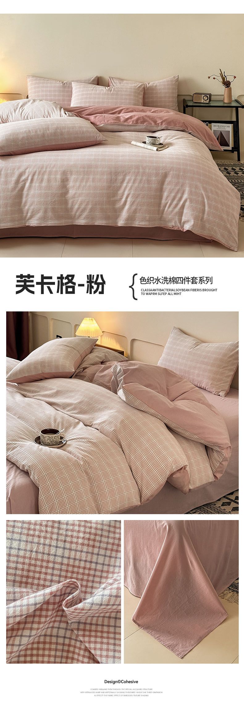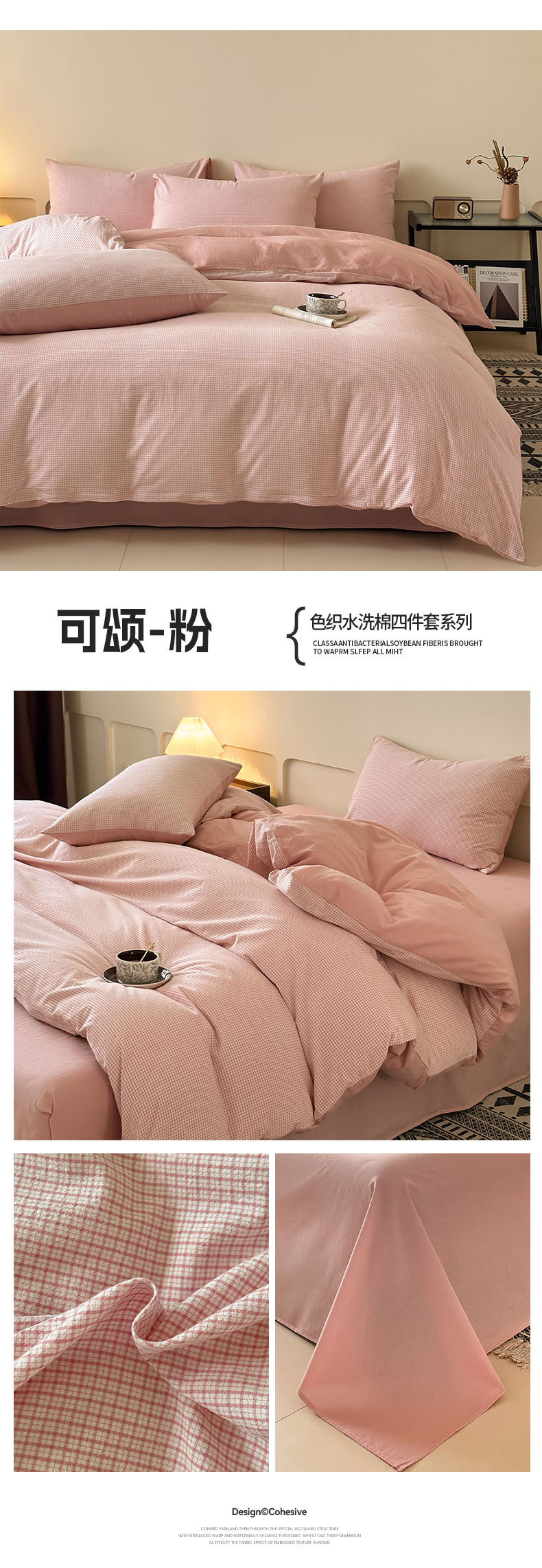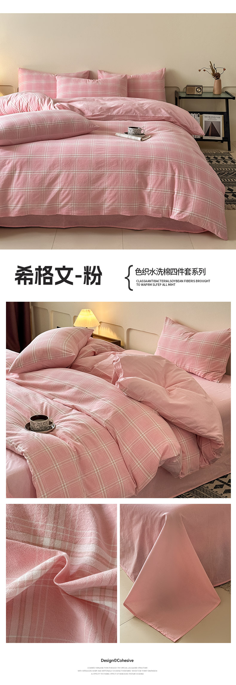 当前位置: 91家纺网 > 商品网购 > 床品套件 > 四件套 > 色织四件套 > 木子家纺 2025新款40支色织A类全棉水洗棉四件套 芙卡格-粉