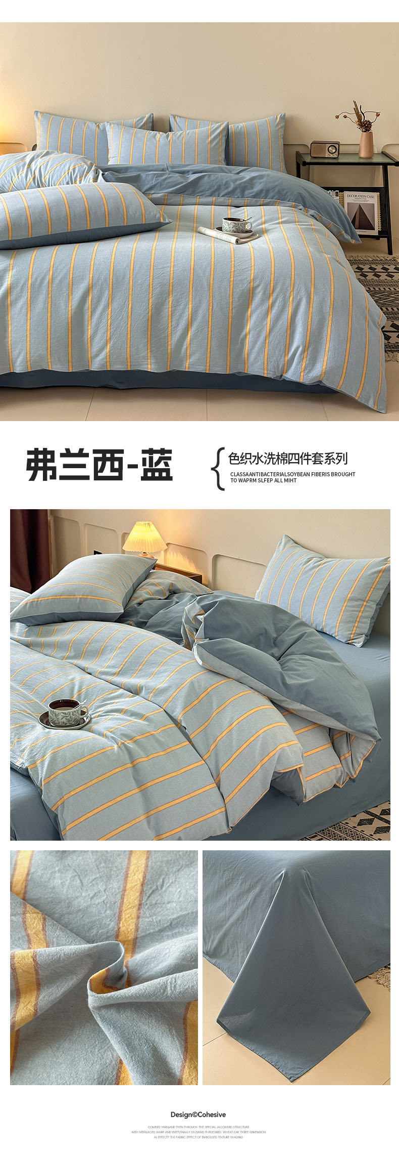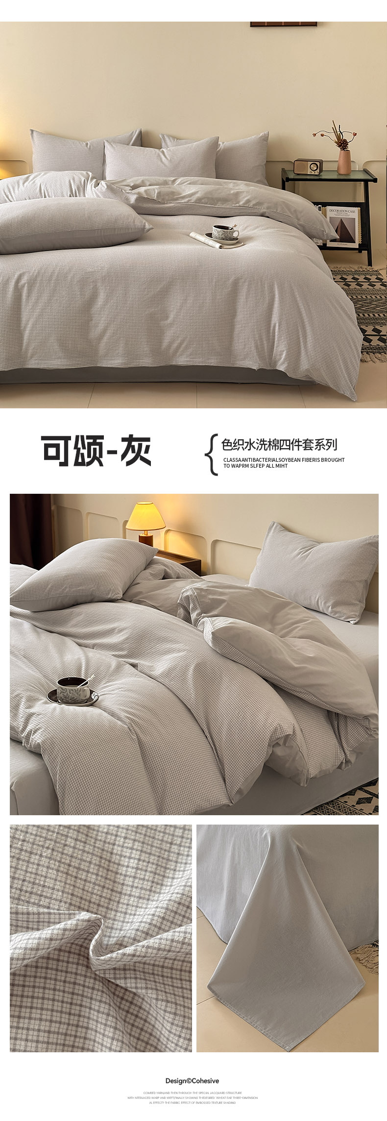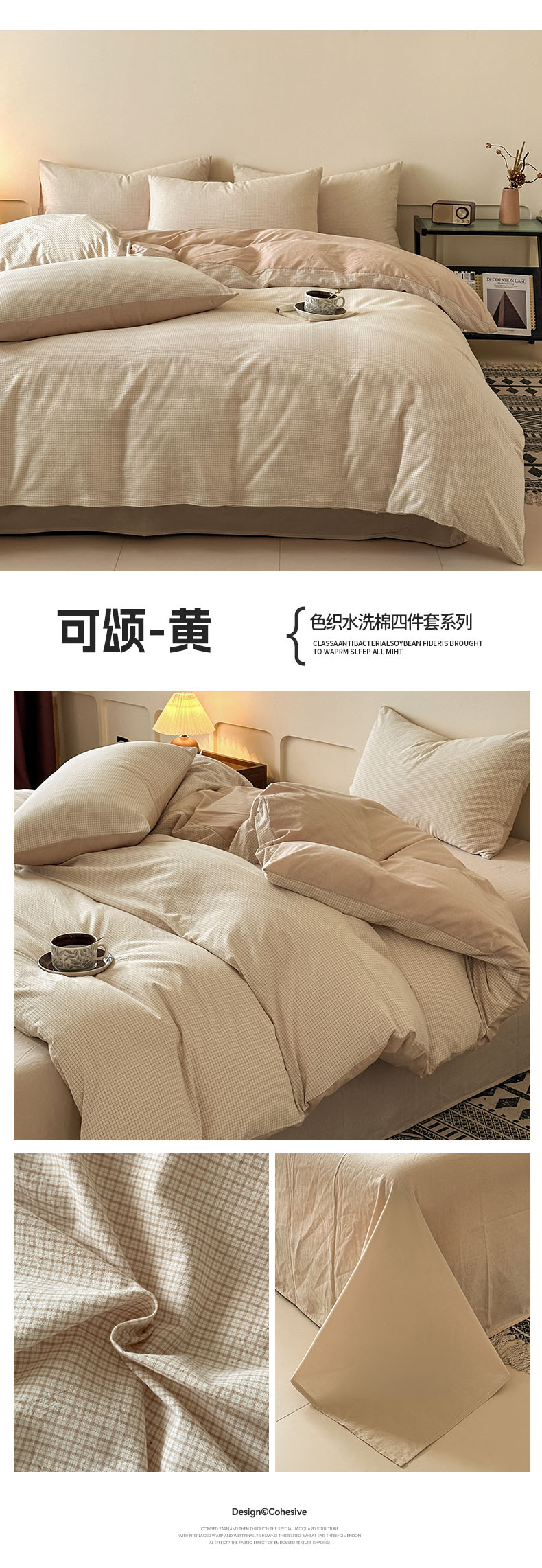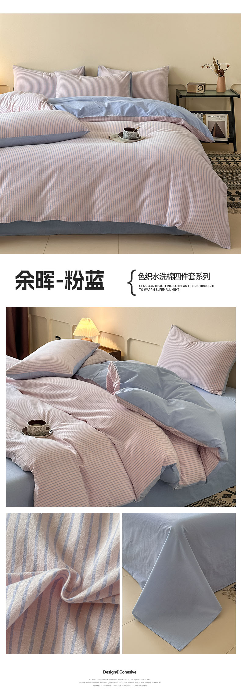 当前位置: 91家纺网 > 商品网购 > 床品套件 > 四件套 > 色织四件套 > 木子家纺 2025新款40支色织A类全棉水洗棉四件套 芙卡格-粉