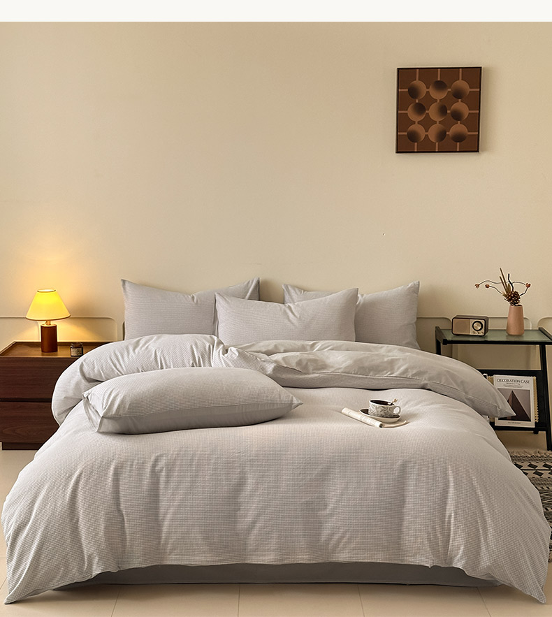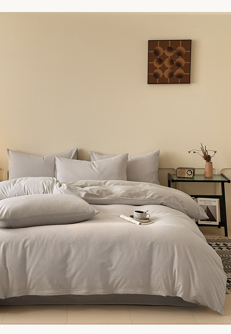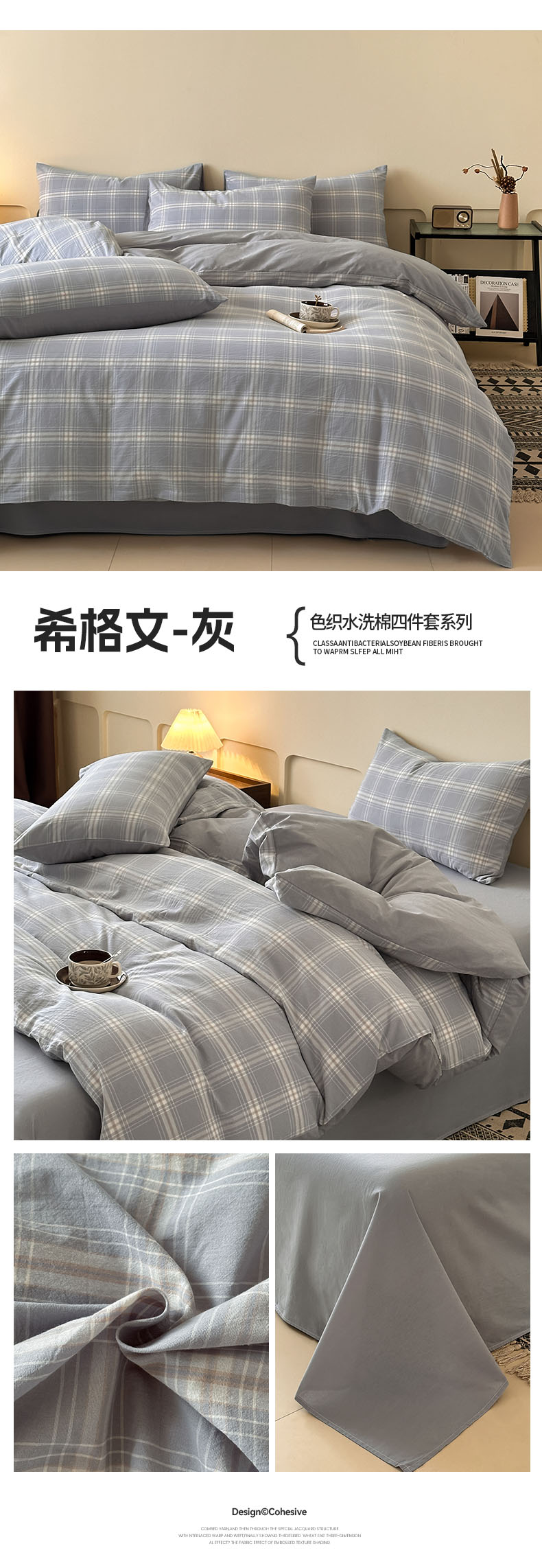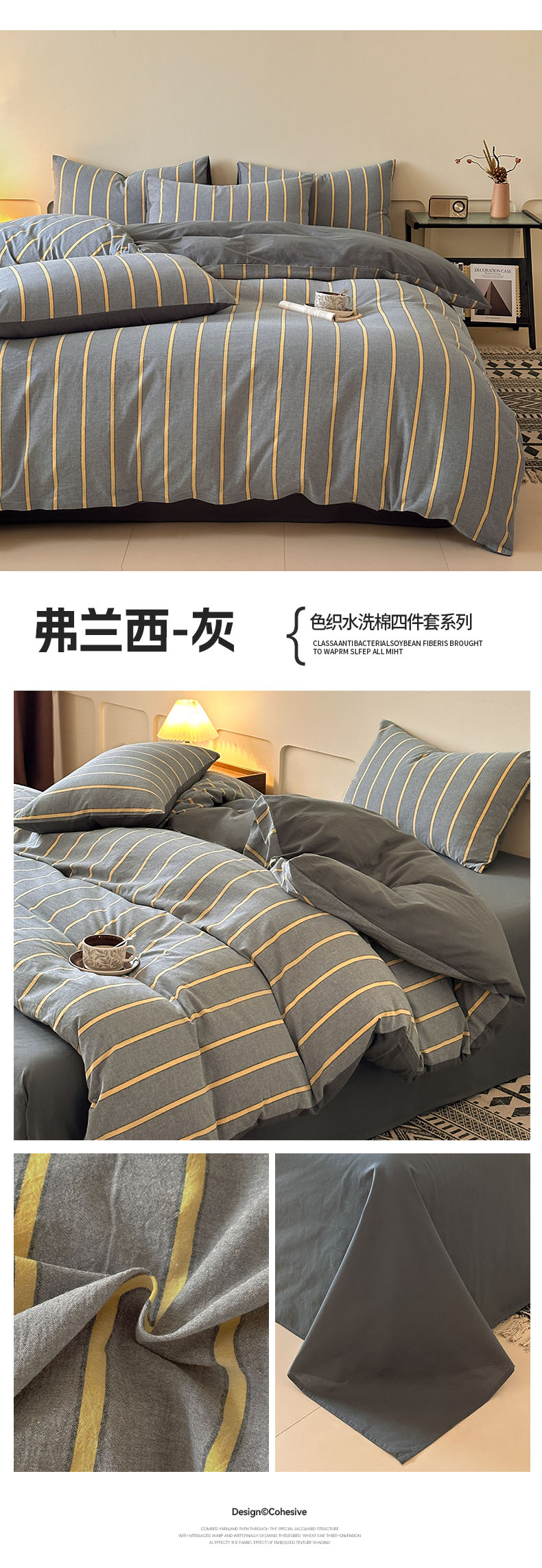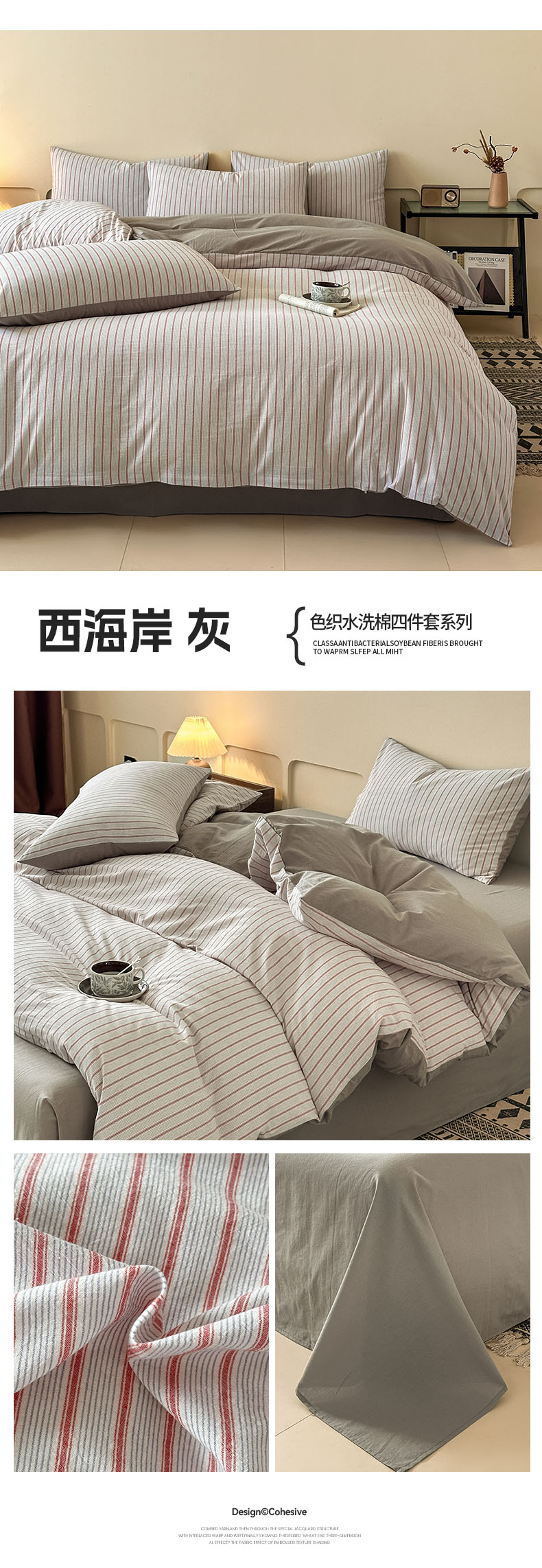 当前位置: 91家纺网 > 商品网购 > 床品套件 > 四件套 > 色织四件套 > 木子家纺 2025新款40支色织A类全棉水洗棉四件套 芙卡格-粉