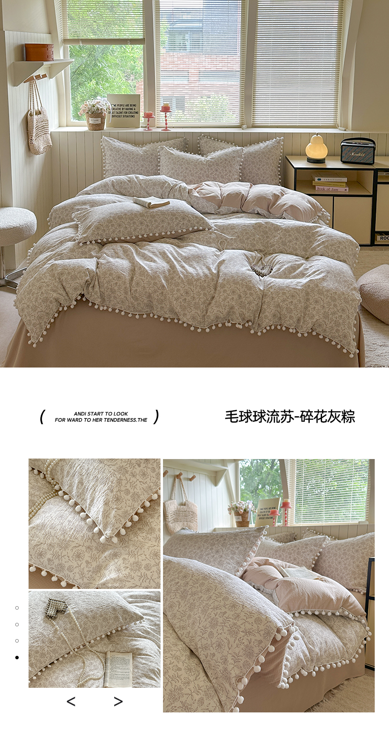 当前位置: 91家纺网 > 商品网购 > 床品套件 > 四件套 > 其它四件套 > 缘生活 2025新款皱皱纱毛球球流苏四件套 皱皱纱球球流苏-碎花灰棕
