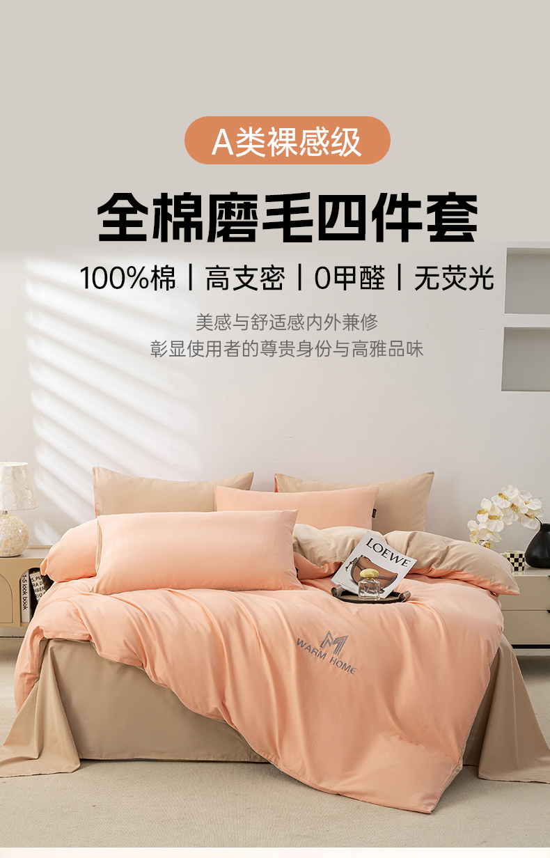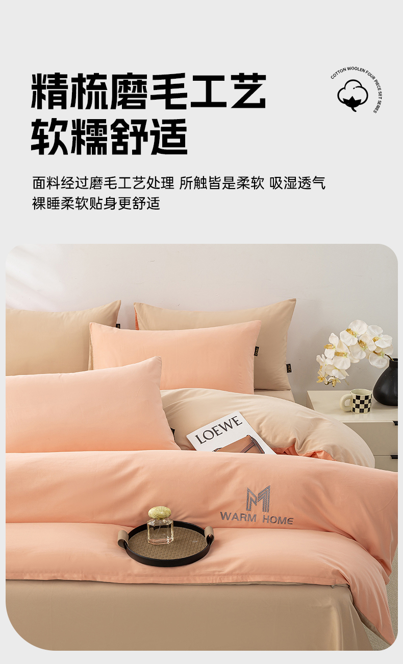当前位置: 91家纺网 > 商品网购 > 床品套件 > 四件套 > 全棉普通四件套 > 沃尔居 2025新款秋冬全棉加厚磨毛四件套纯棉床单被套床笠纯色三件套(提供买家秀) 梦境--杏子蔷薇