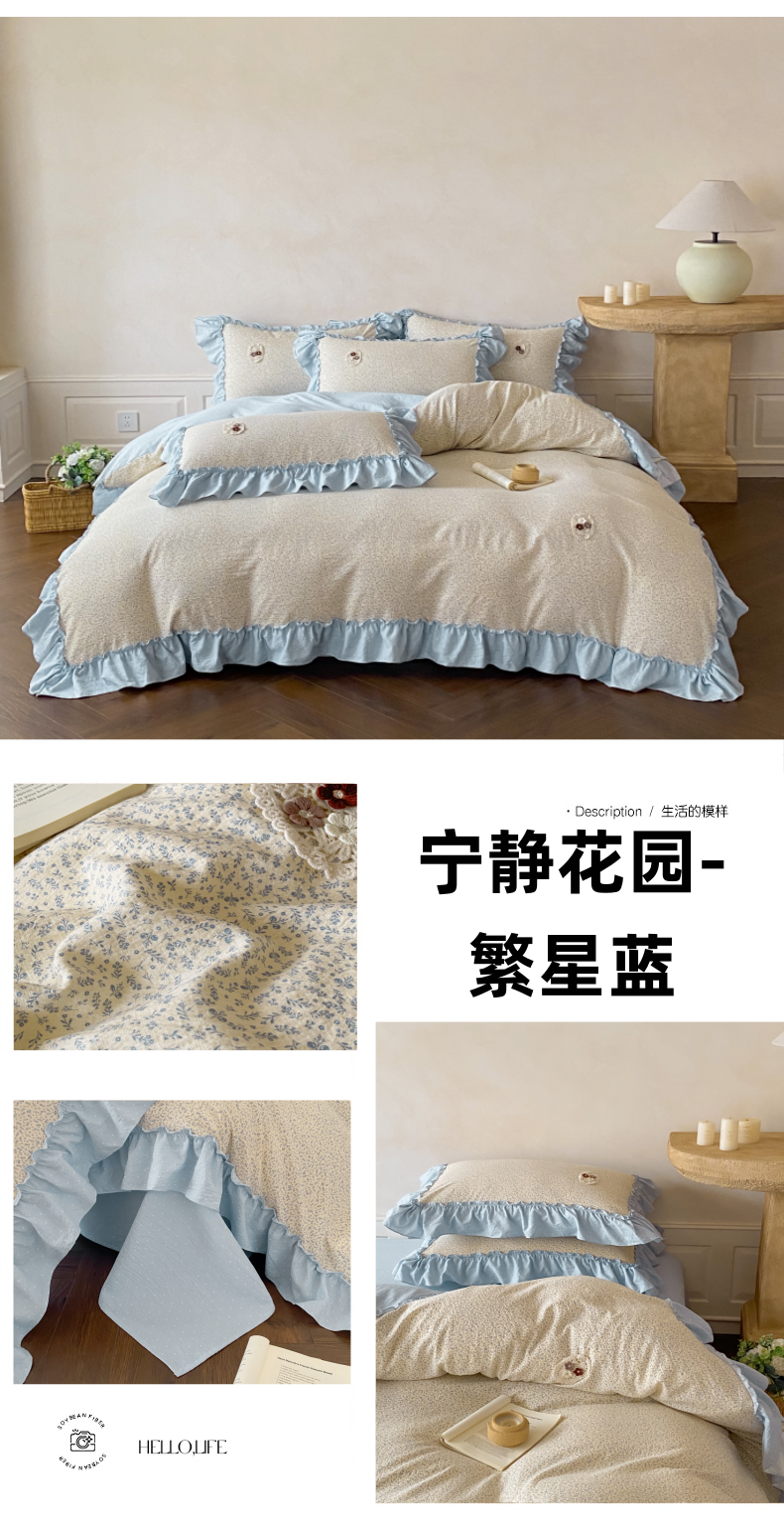 当前位置: 91家纺网 > 商品网购 > 床品套件 > 四件套 > 梦舒羽2025新款波点花边四件套-宁静花园 宁静花园-繁星蓝