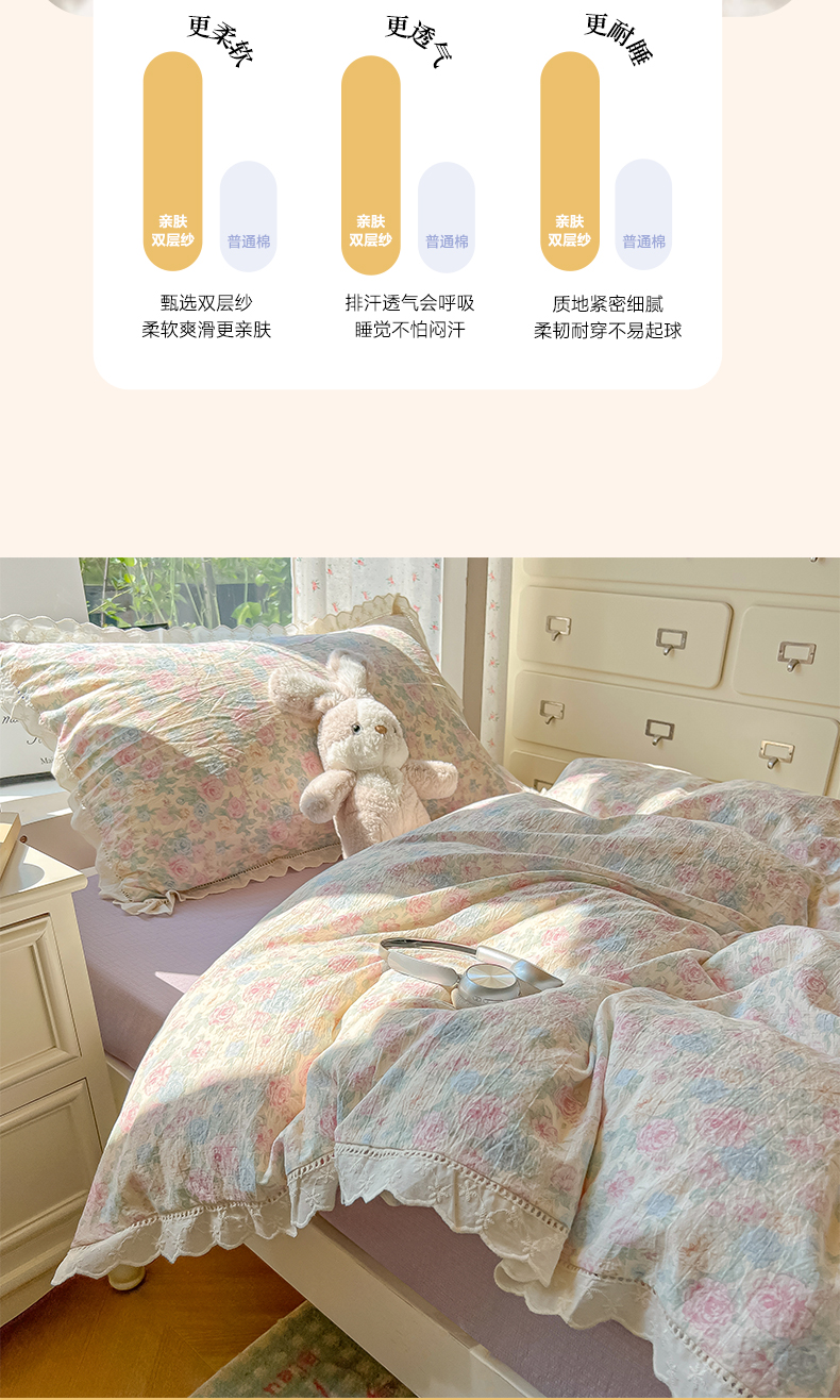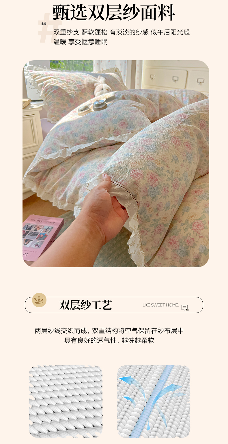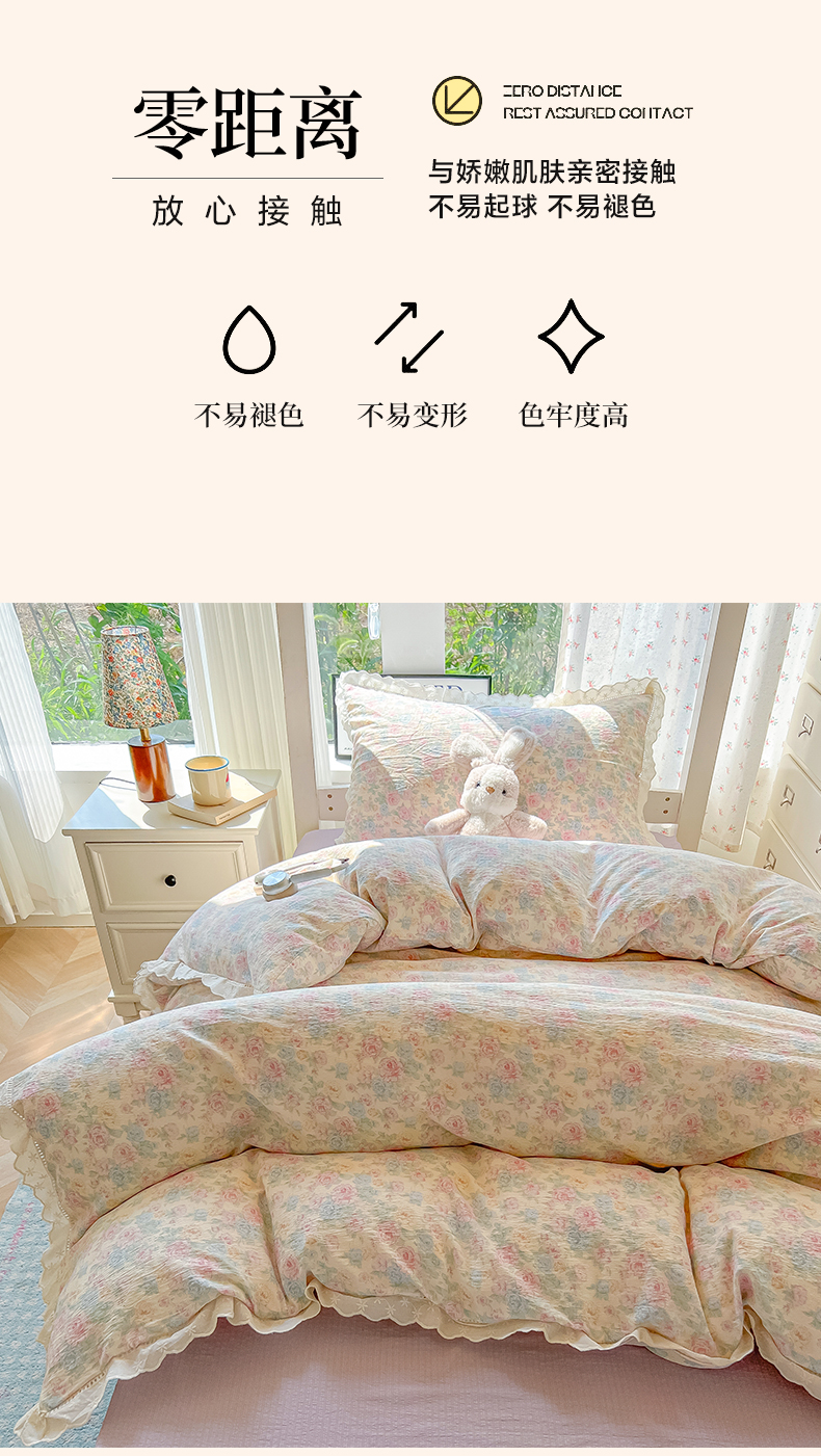 当前位置: 91家纺网 > 商品网购 > 床品套件 > 三件套 > 韩巢家纺 2025新款学生宿舍三件套上下铺学生季开学季床品 镂空花边款-童话花岛
