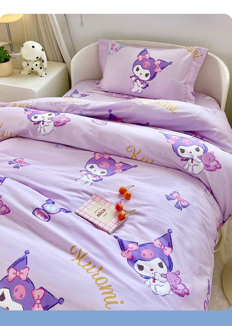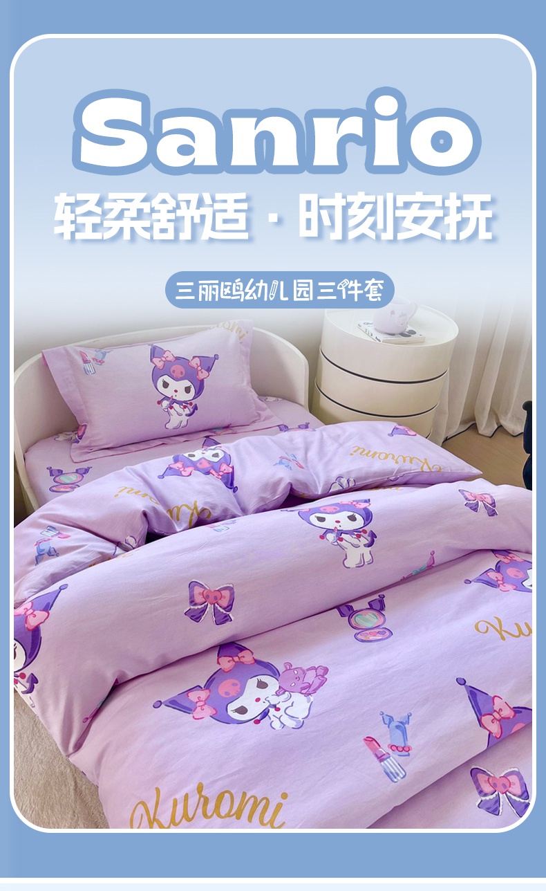 蘭菲家纺 2025新款学生季全棉幼儿园三丽鸥三件套小版系列 小甜酱.紫