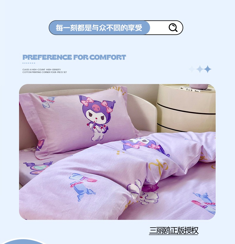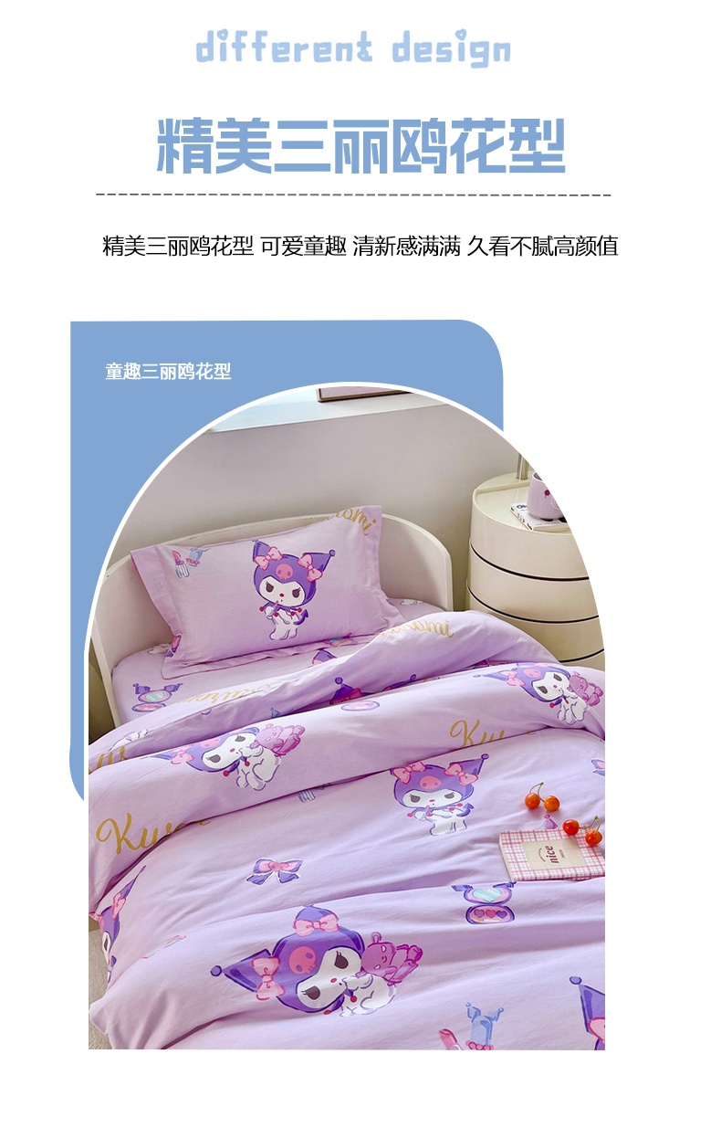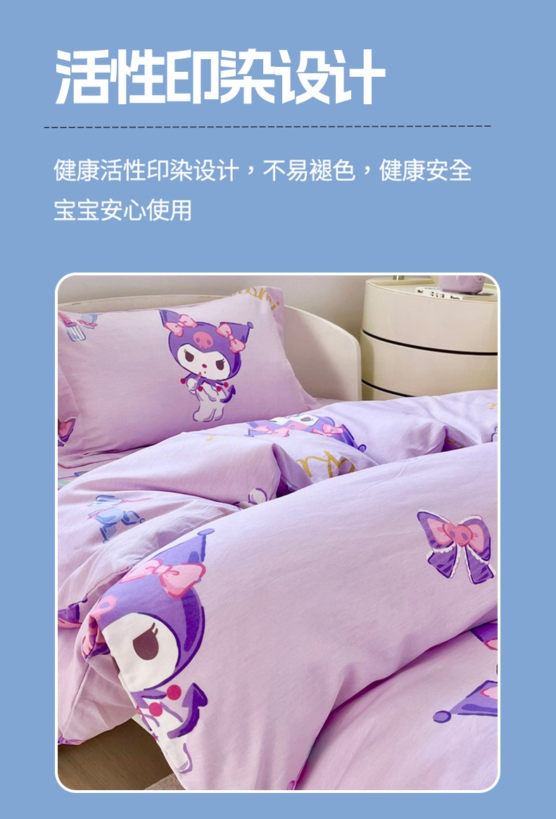 商品名称:蘭菲家纺 2025新款学生季全棉幼儿园三丽鸥三件套小版系列 小甜酱.紫