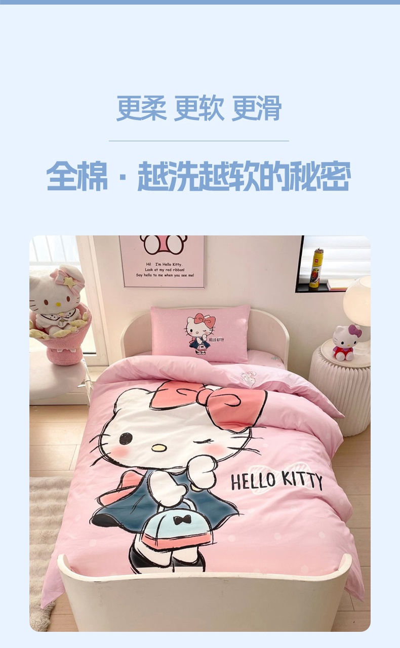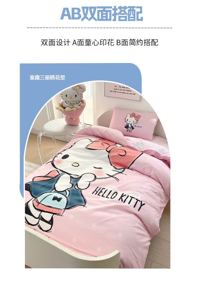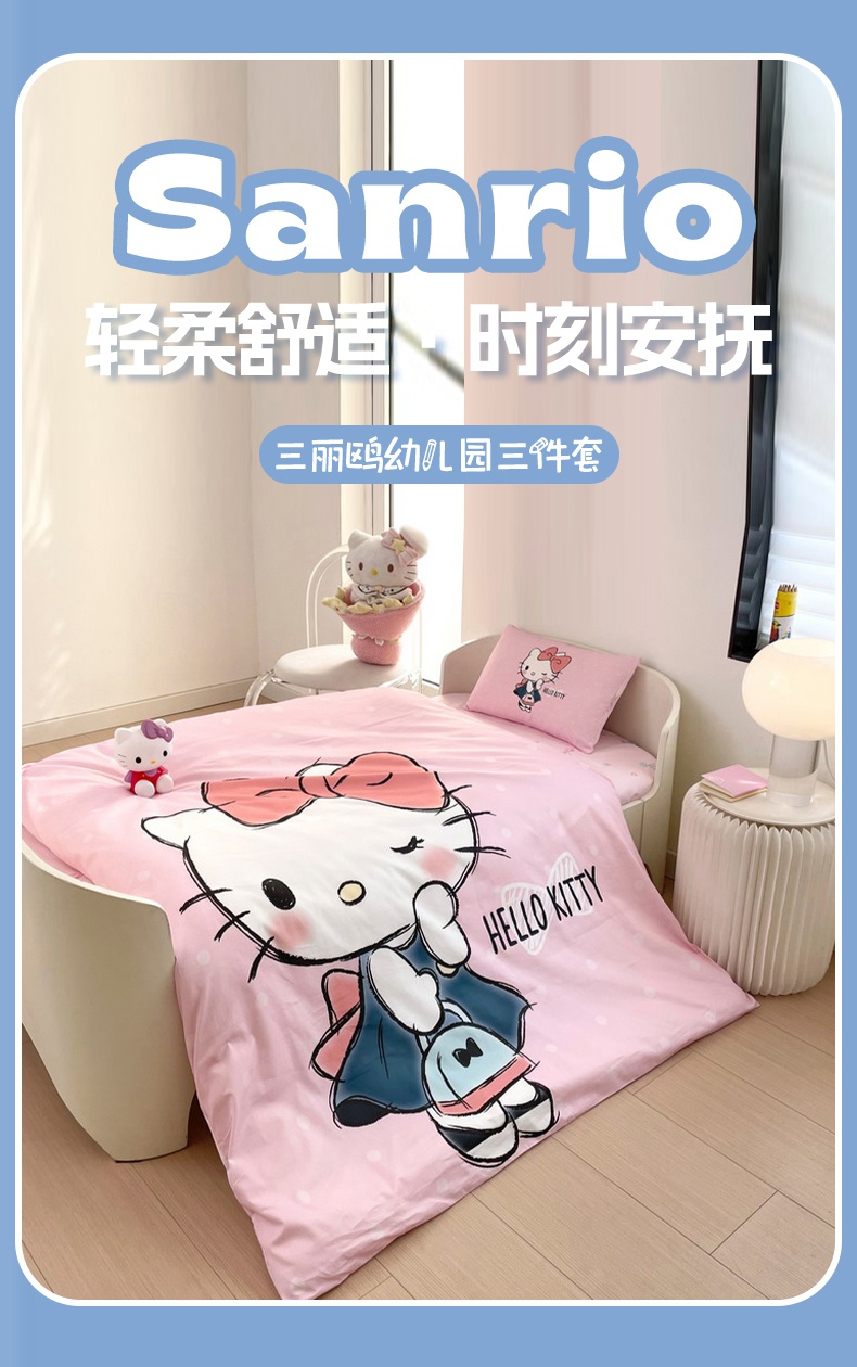 商品名称:蘭菲家纺 2025新款学生季全棉幼儿园三丽鸥三件套大版系列 摩卡.粉