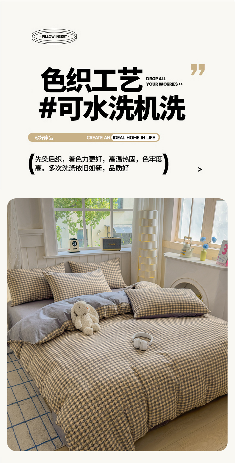 • 91家纺网 家纺一手货源 找家纺 晚依家纺 2025新款A类全棉色织水洗棉被套单件纯棉格子纯色学生宿舍被罩定制定做 组合图仅做展示