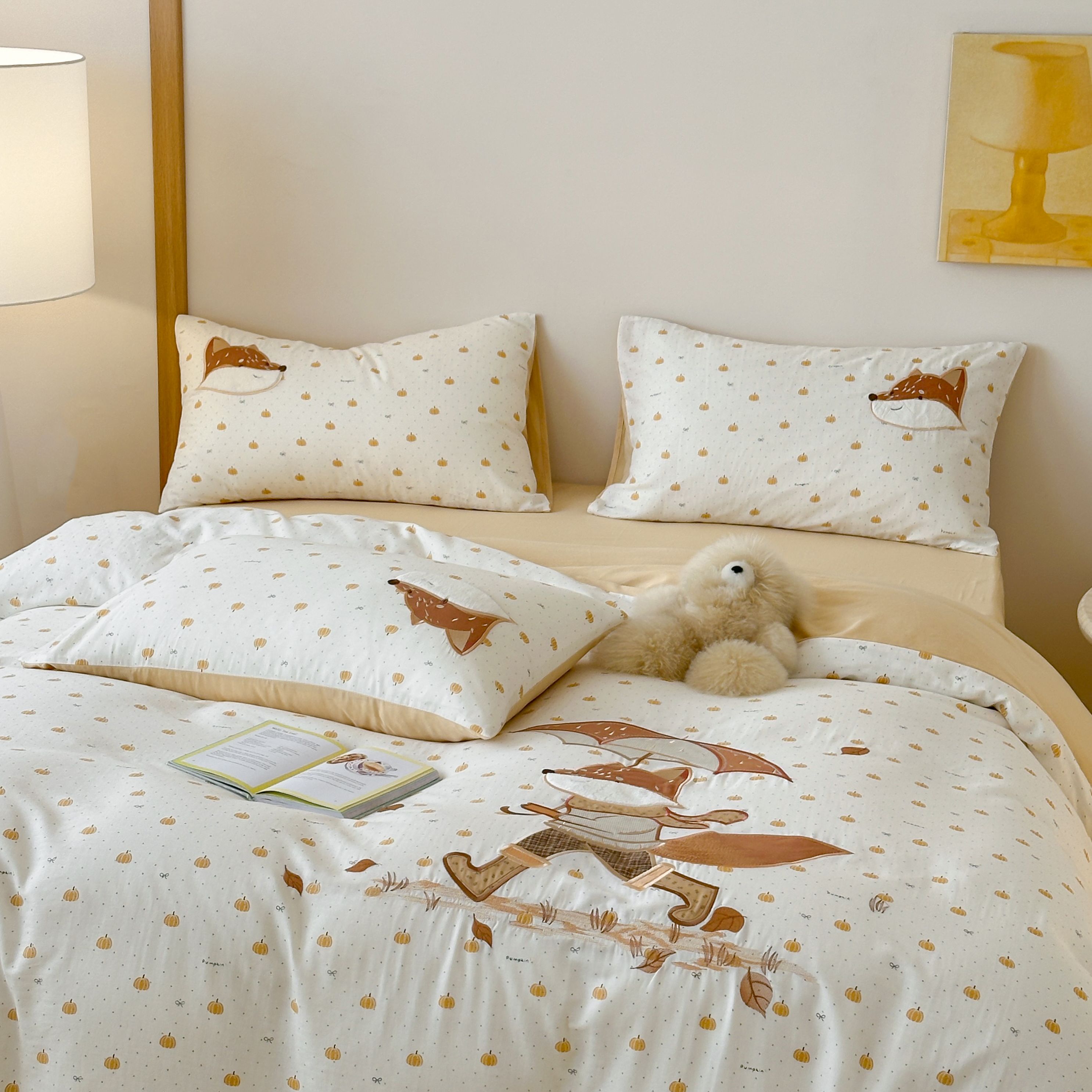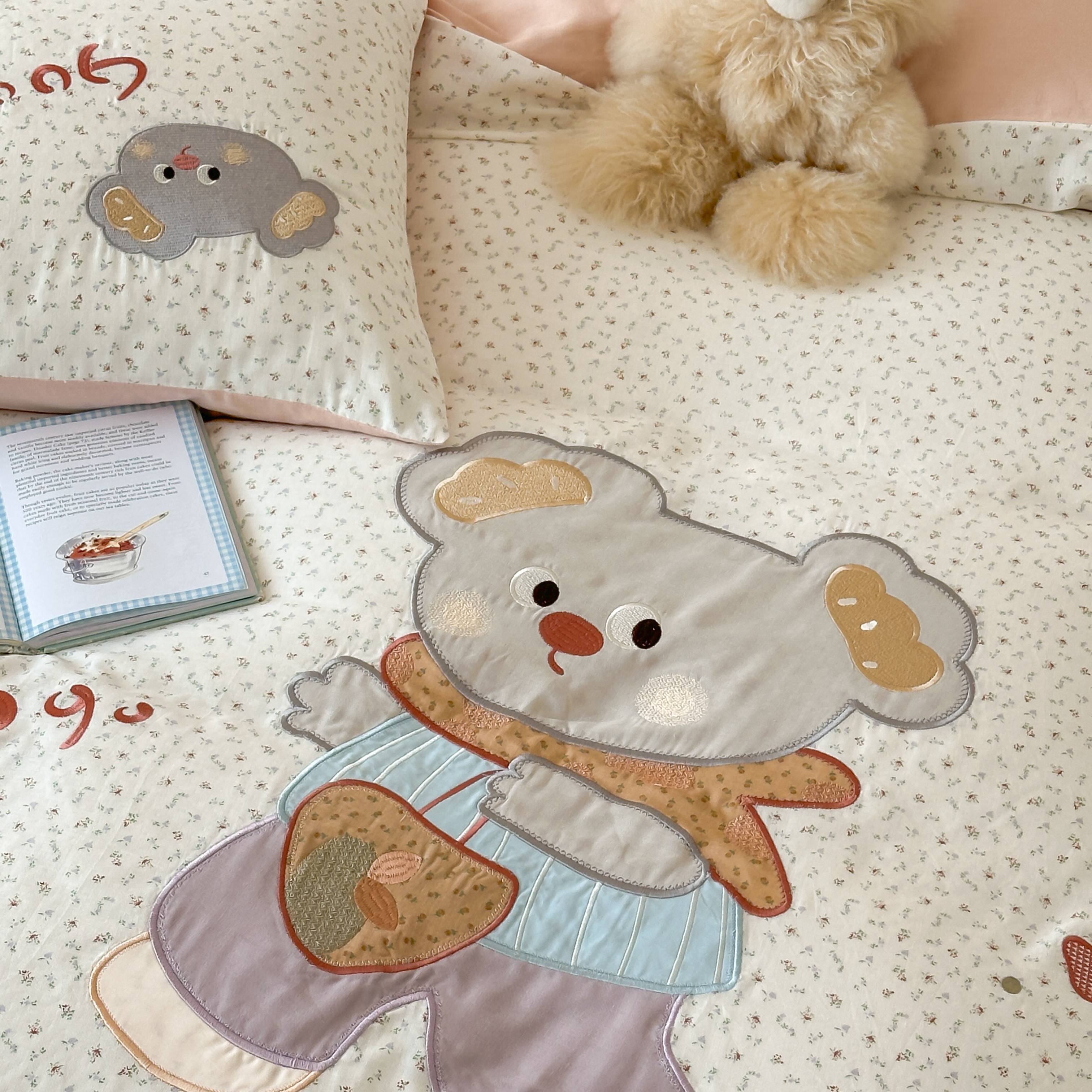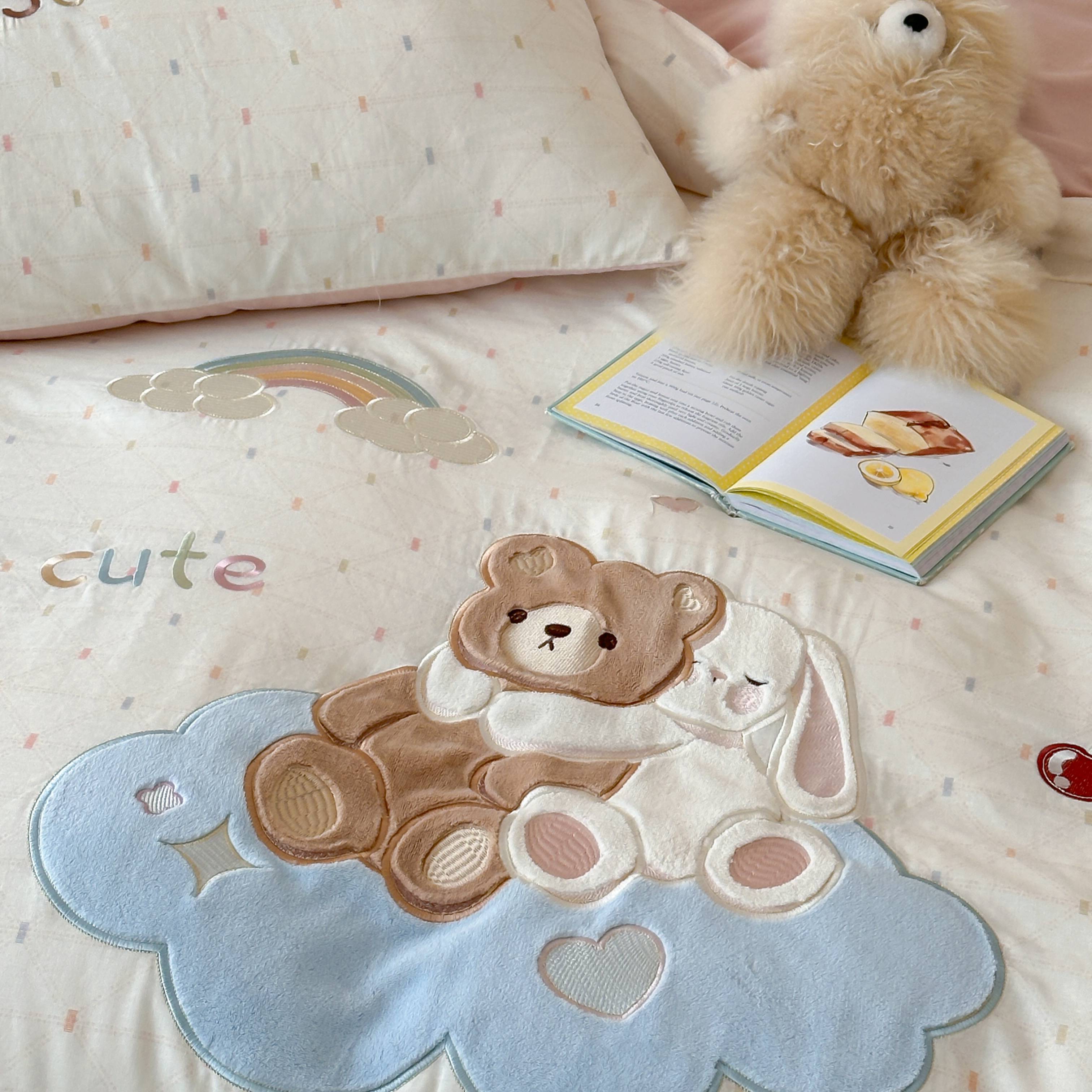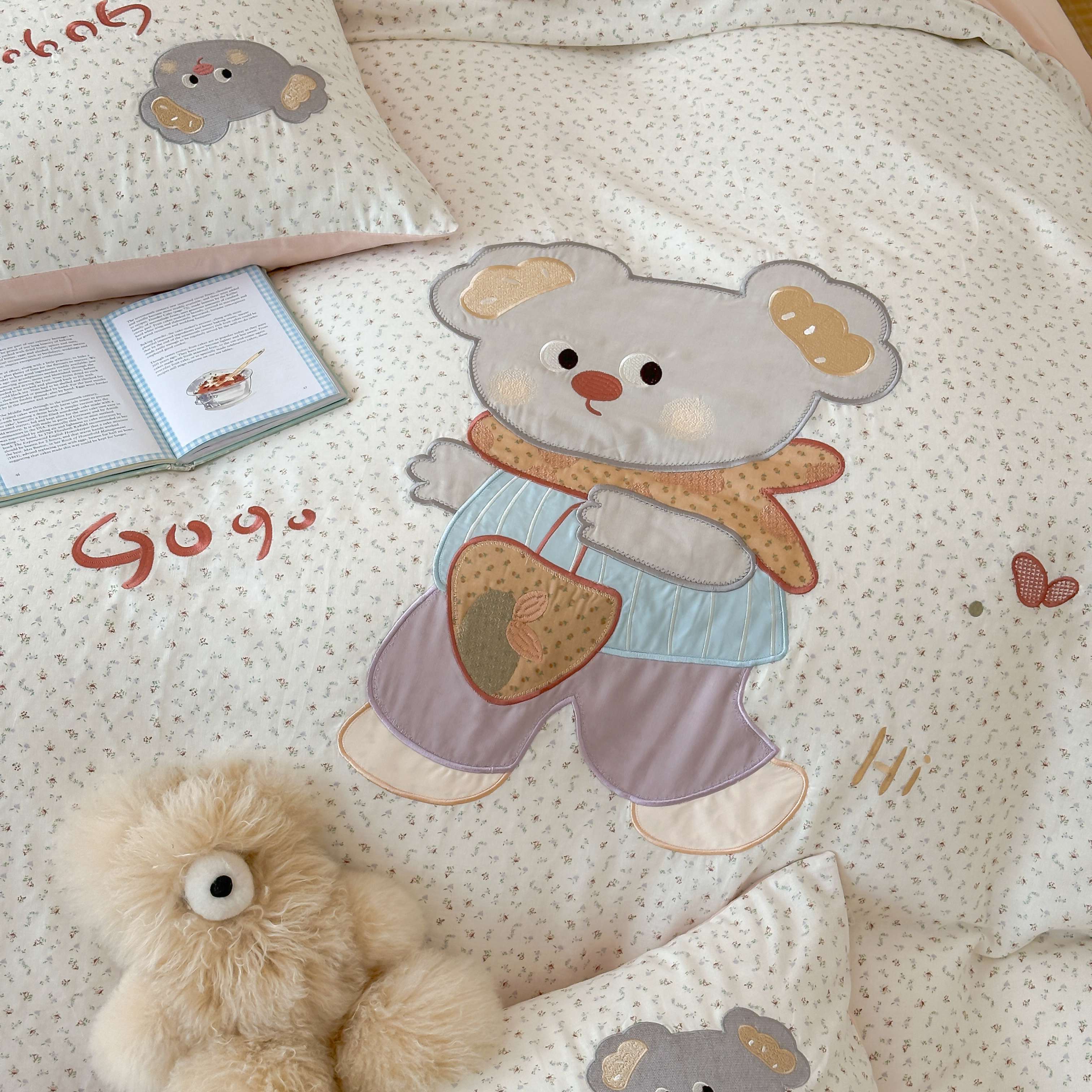 (总)紫桐2025新款长绒棉贴布绣四件套,黄油小熊 海盐蓝,黄油小熊 奶油黄,黄油小熊 芝芝粉