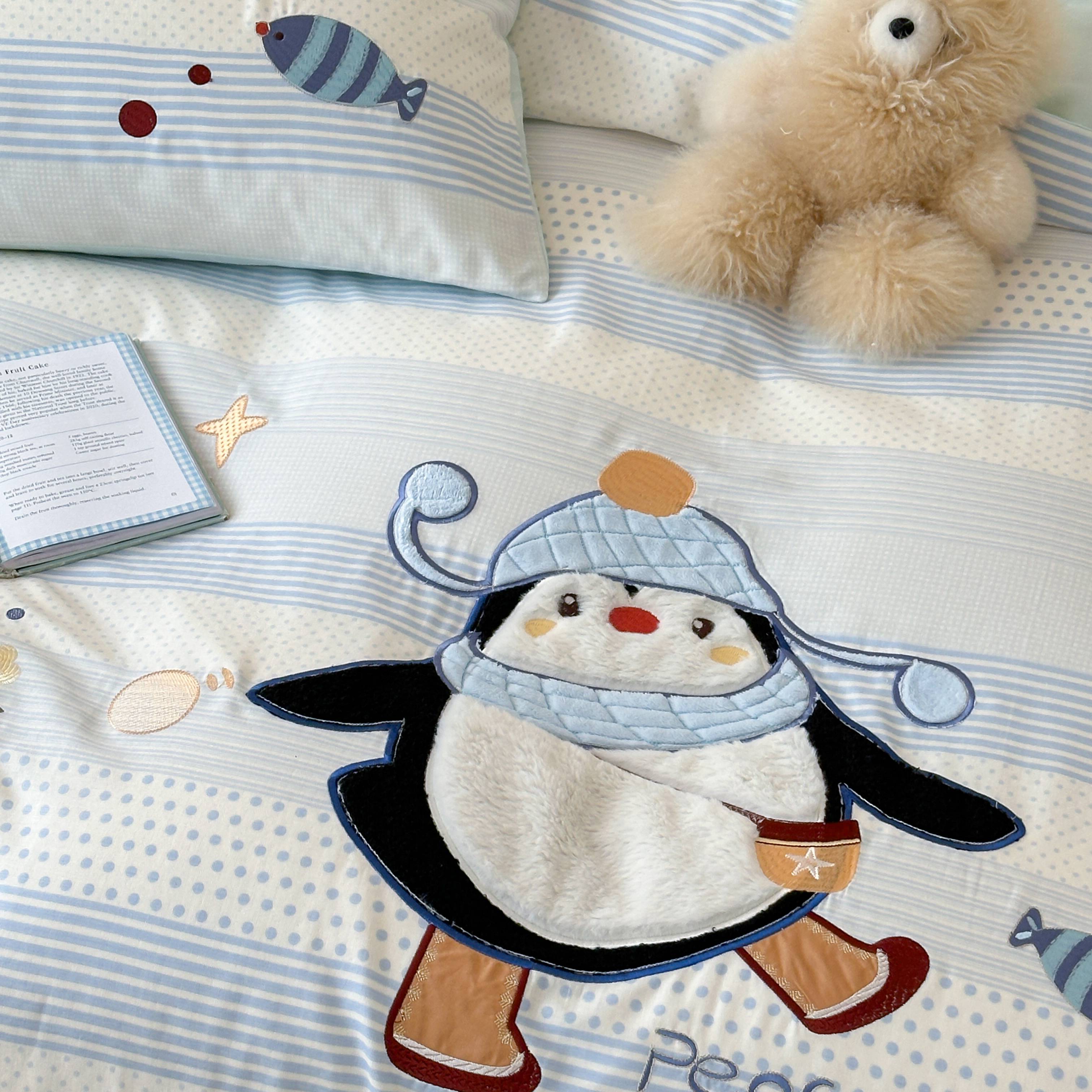 (总)紫桐 Lila lndus 2025新款双层纱贴布绣四件套,小考拉,小雪人,小熊,小企鹅,小鳄鱼,小狐狸
