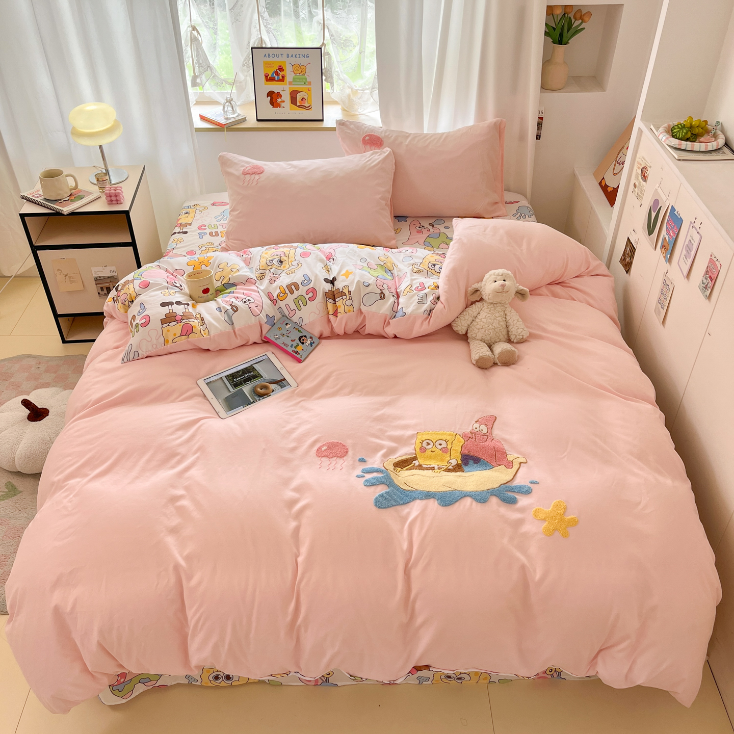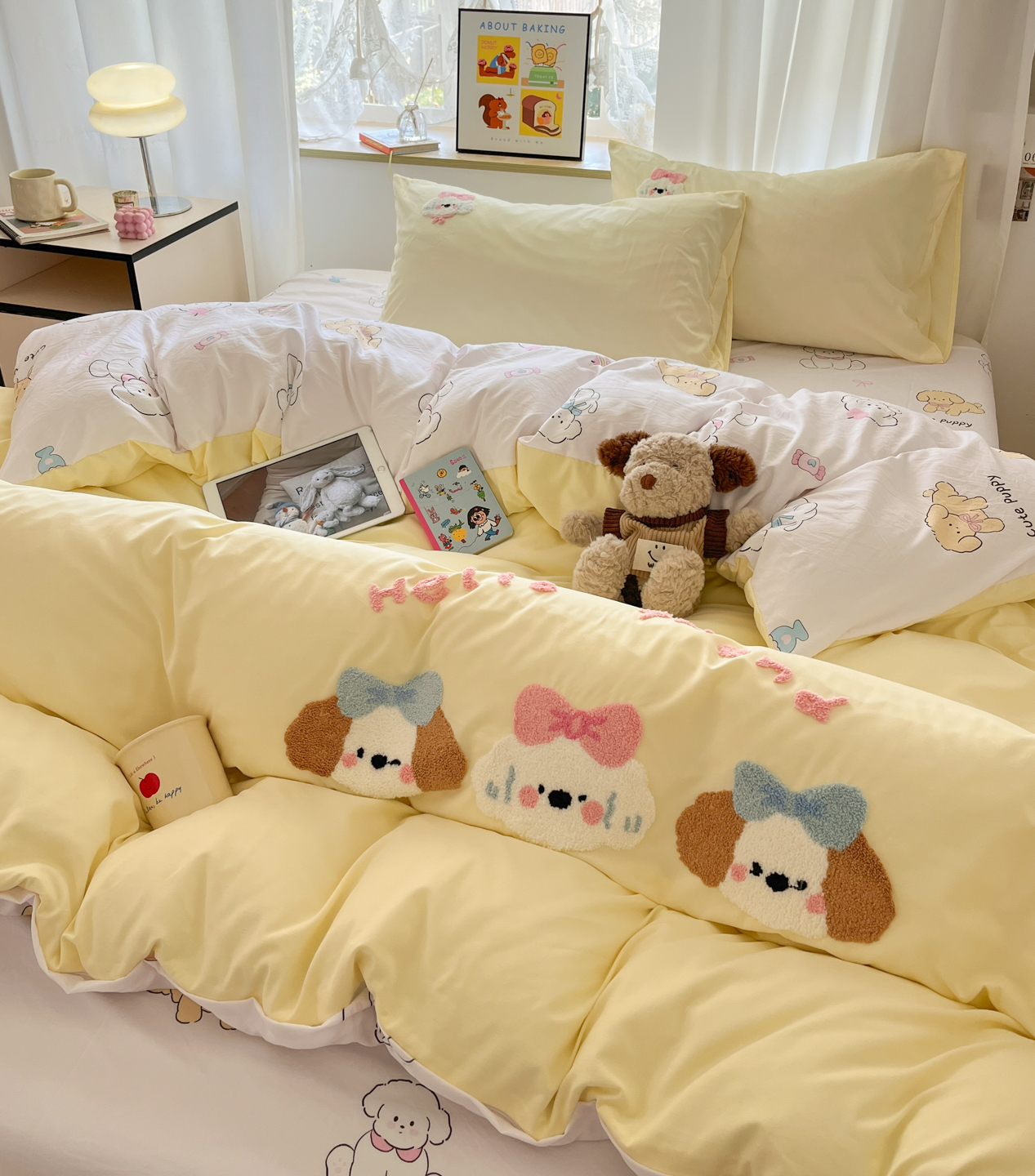 (总)茉礼 2025新款高克重ins风超柔软软糯糯小清新卡通印花水洗棉四件套,格子小狗,海盐波点,卡皮豹豹,洛丽小熊,猫咪日记,奶油小熊,甜心KT,西高地,小爱心,小狗麻薯,小卡皮,小兔花园