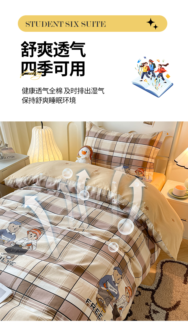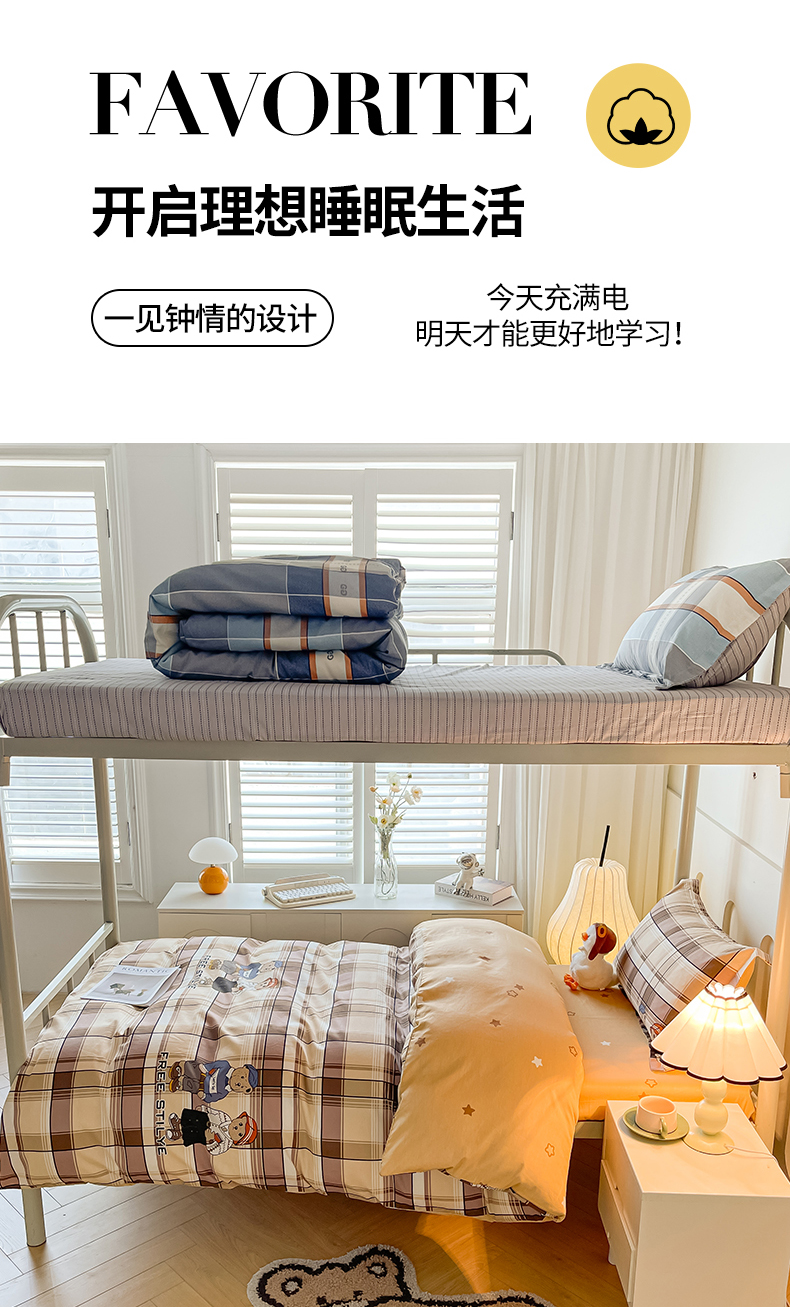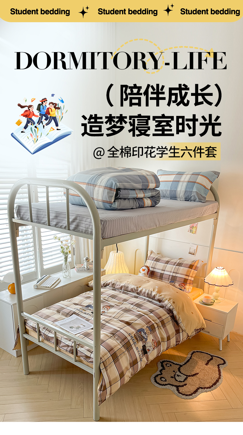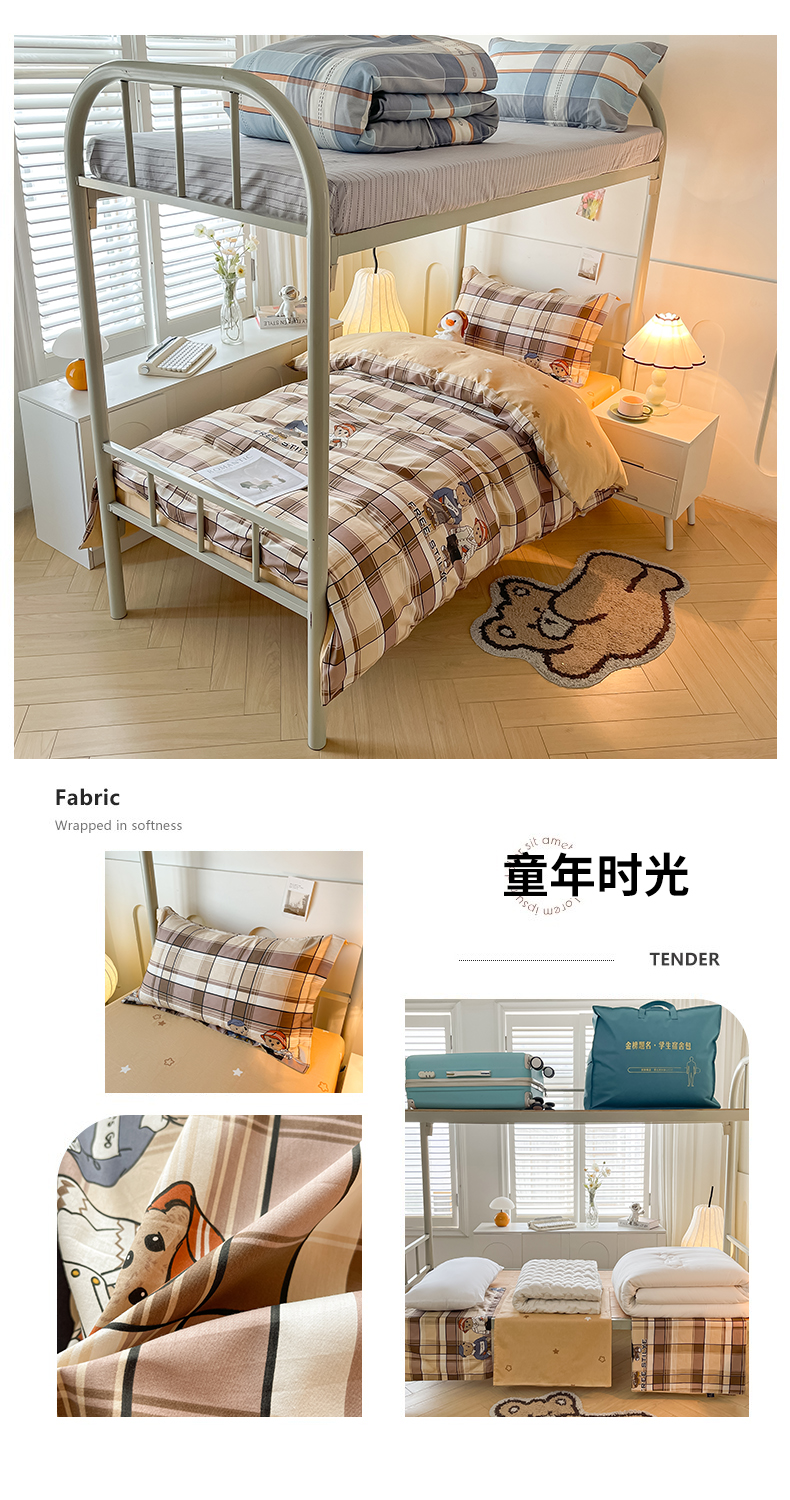 当前位置: 91家纺网 > 商品网购 > 床品套件 > 三件套 > 慕木家纺 2025新款12868全棉印花学生上下铺三件套大礼包系列 童年时光
