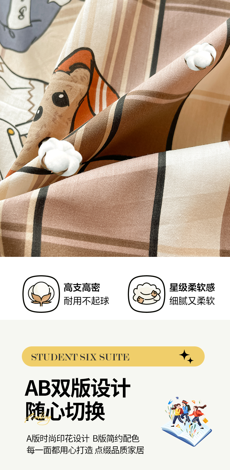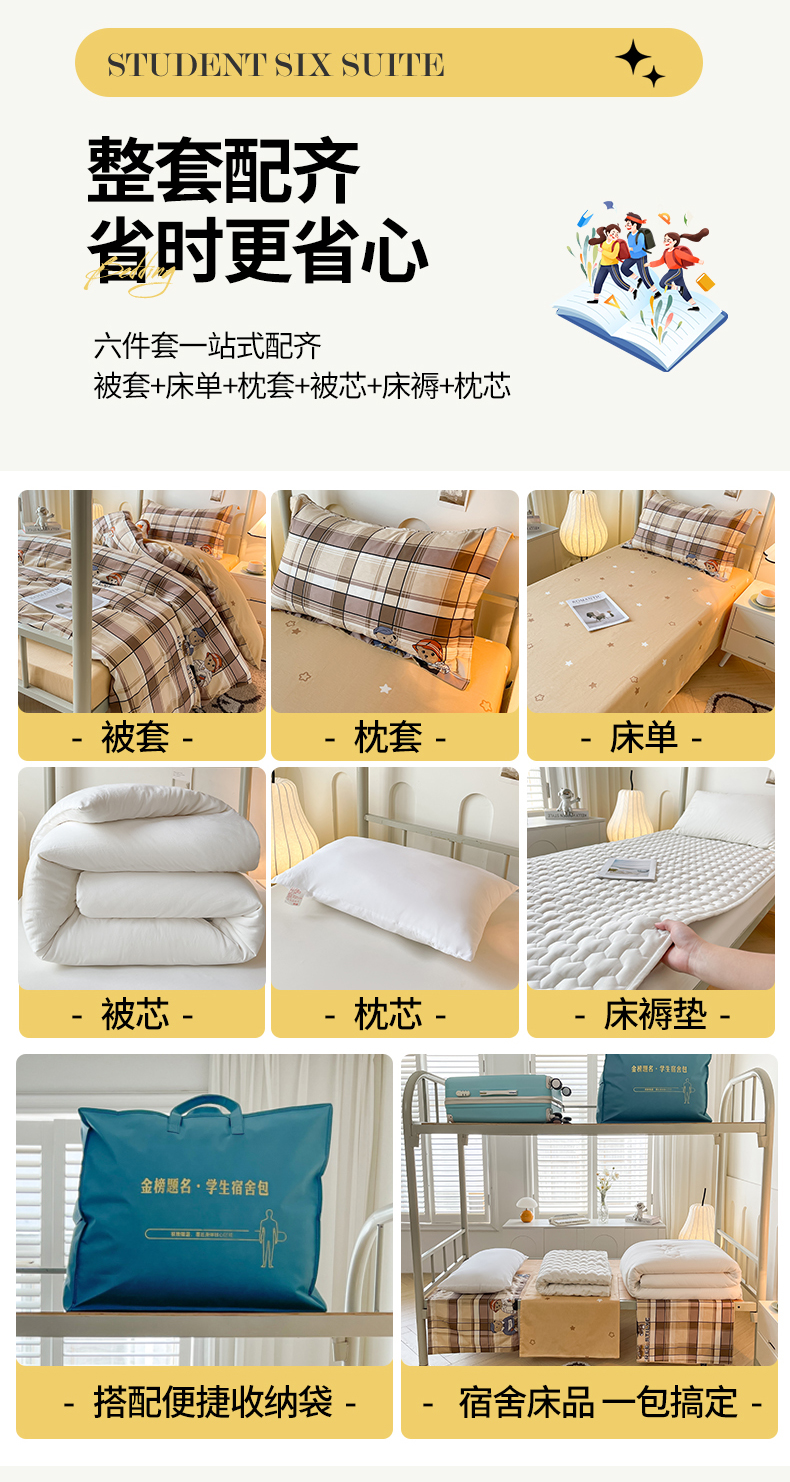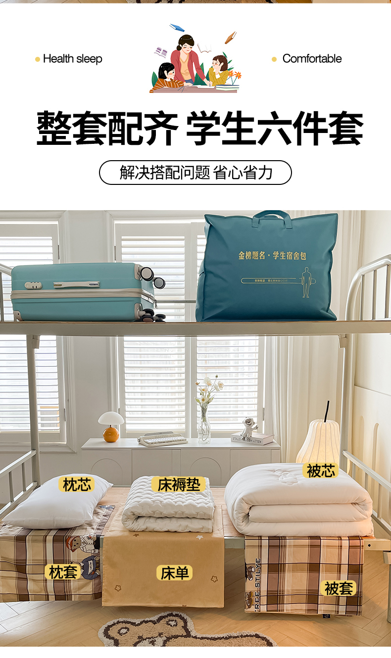 当前位置: 91家纺网 > 商品网购 > 床品套件 > 三件套 > 慕木家纺 2025新款12868全棉印花学生上下铺三件套大礼包系列 童年时光
