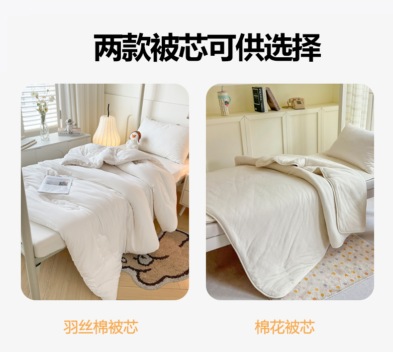 0.9米床(三件套+5斤羽丝棉被芯+床垫+枕芯) | ¥170.00 |