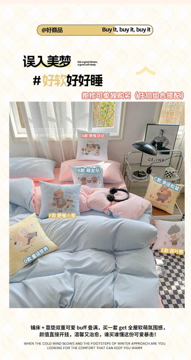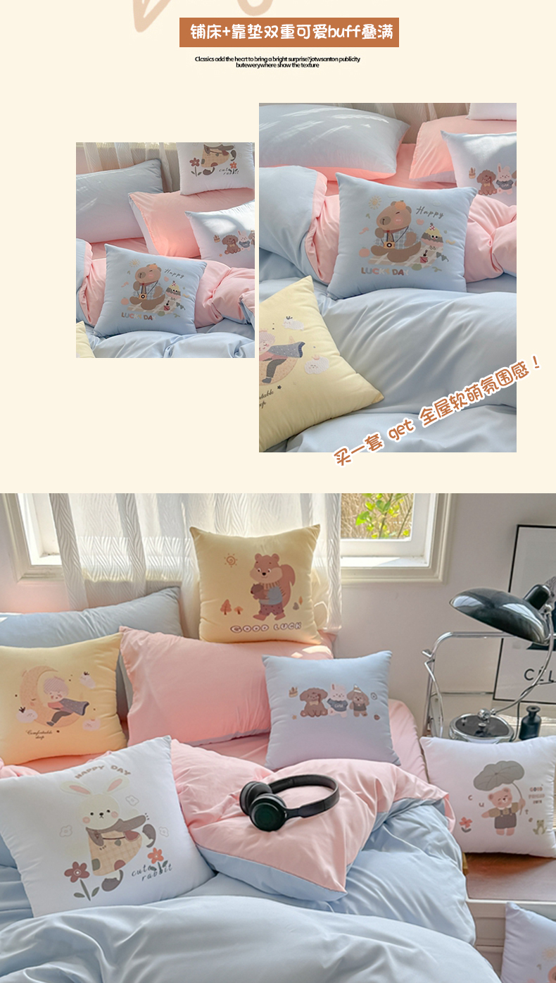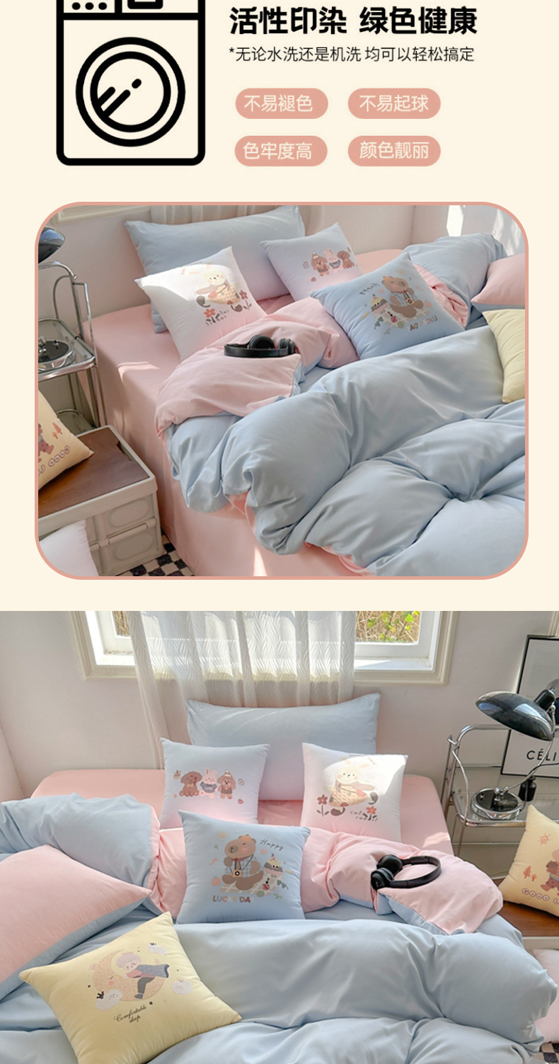 2024新款学生季卡通水洗棉四件套夏天宿舍学生三件套,早安兔,熊猫派对,字母小熊,m乐园,爱心草莓兔,遨游兔,草莓格格,草莓甜心,花园萌兔,可爱小熊,萌宠世界,牛油熊果果,青春印记,森林伙伴,盛夏之约,象模像样鸭,快乐小恐龙,英伦熊