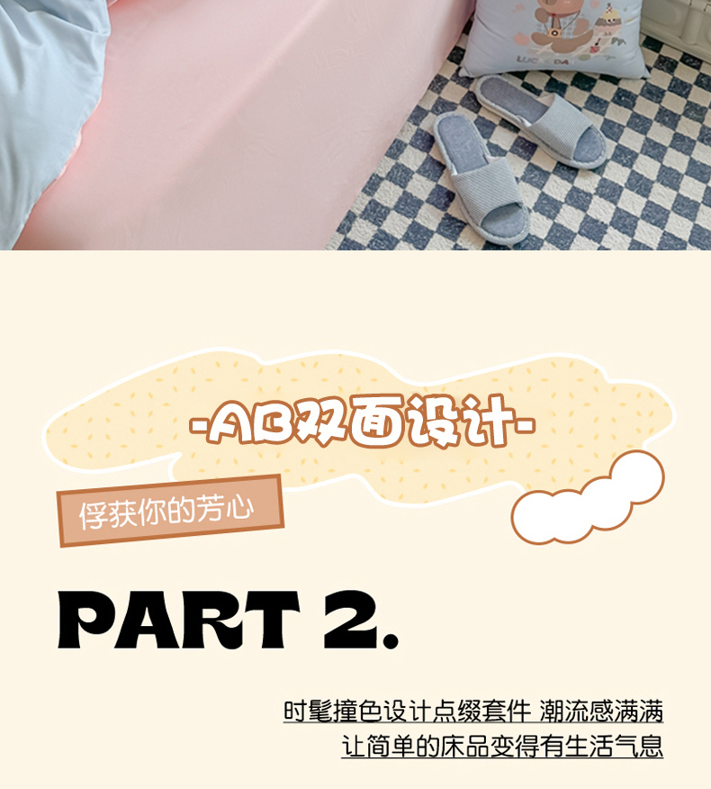 (总)2025新款纯色双拼水洗棉四件套搭配抱枕组合撞色系柔软亲肤裸睡床单被套抱枕床上用品