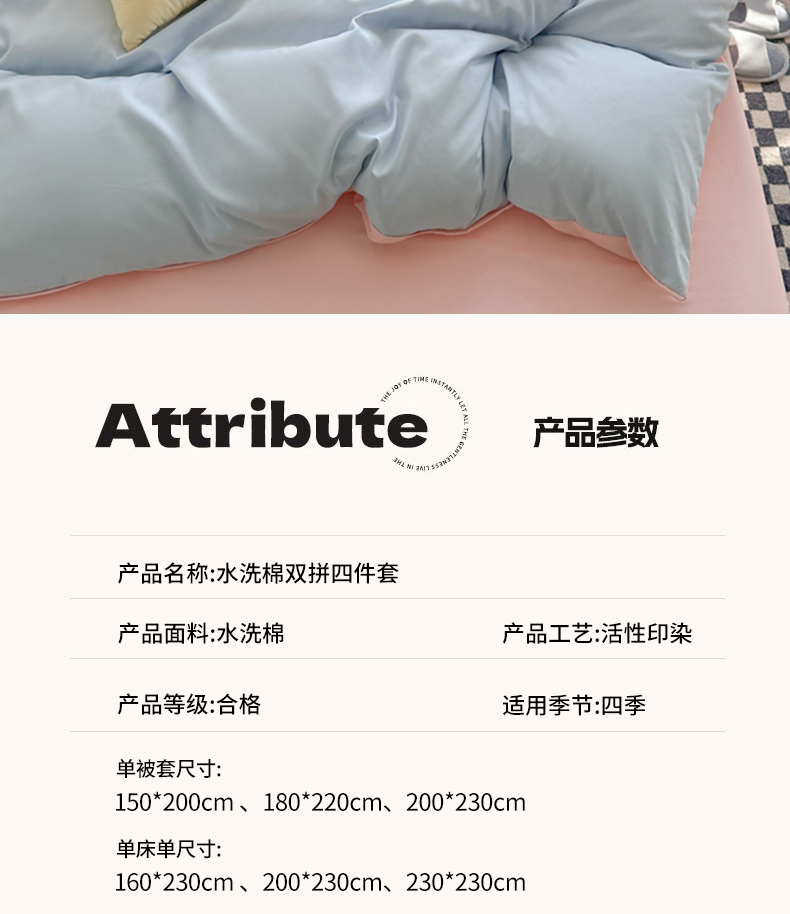 商品名称:(总)2025新款纯色双拼水洗棉四件套搭配抱枕组合撞色系柔软亲肤裸睡床单被套抱枕床上用品
