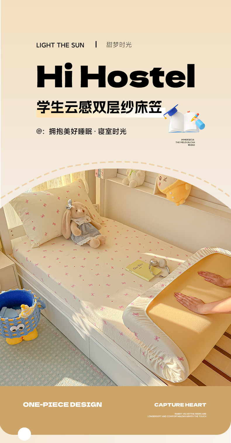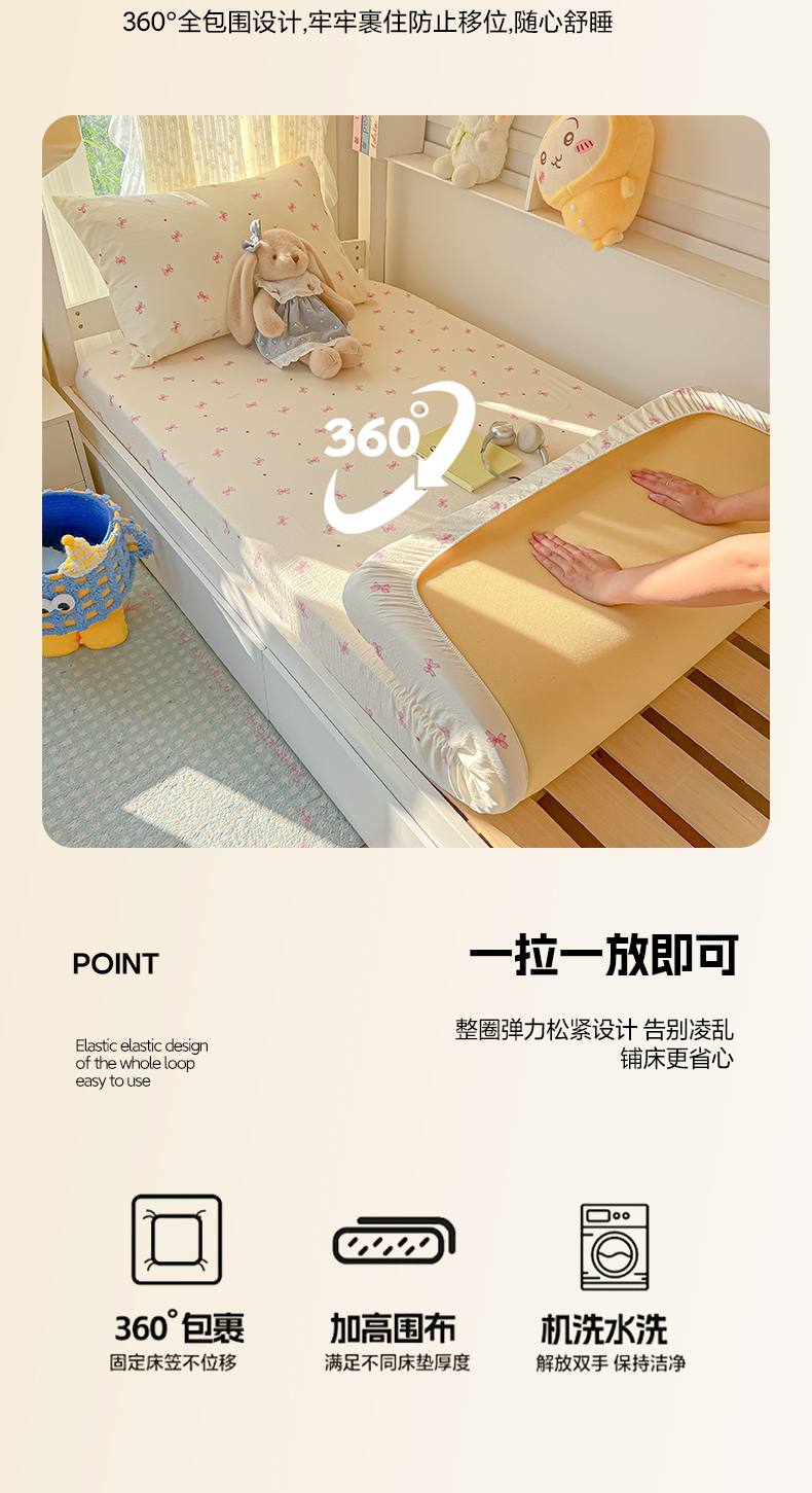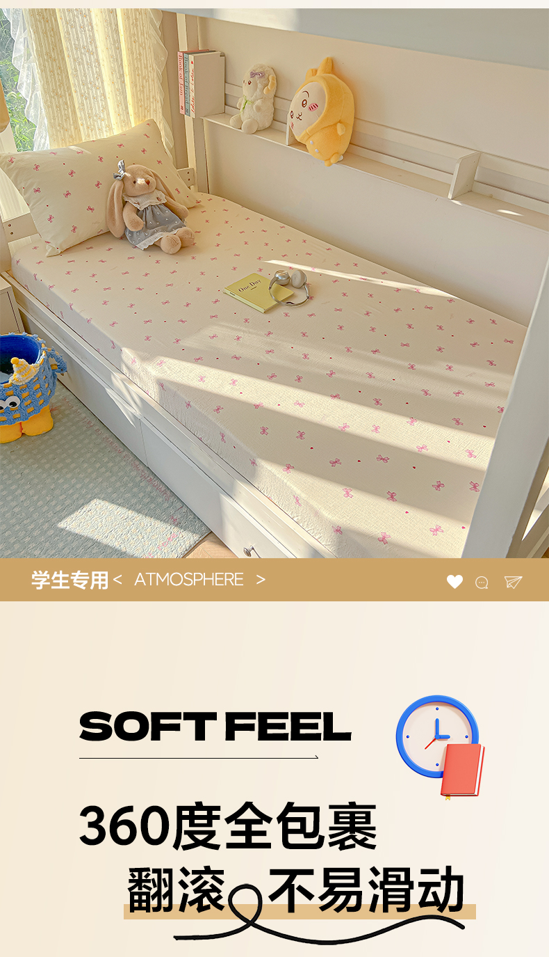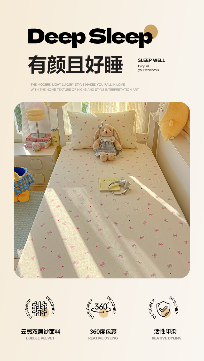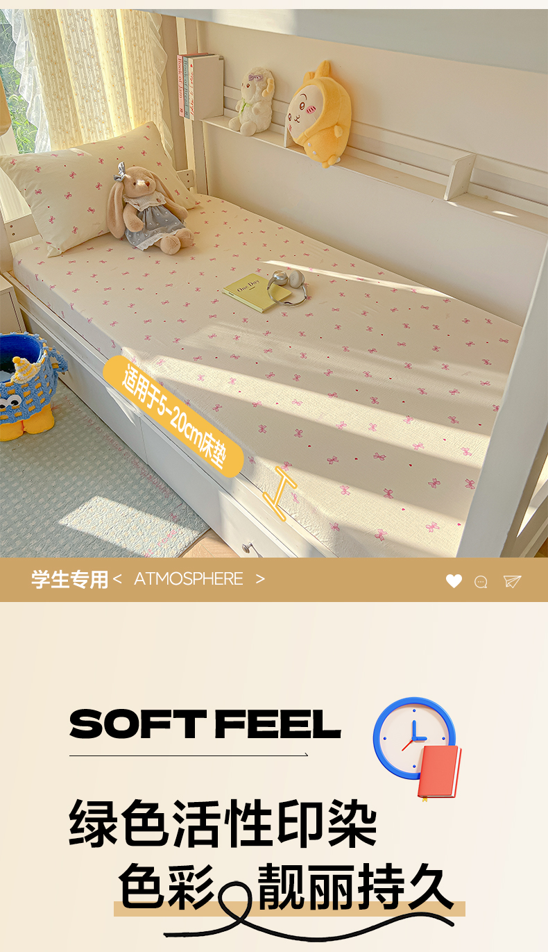 • 91家纺网 家纺一手货源 找家纺 韩巢家纺 2025新款双层纱学生宿舍寝室床笠单件单床笠上下铺防滑床单床垫套 粉相思