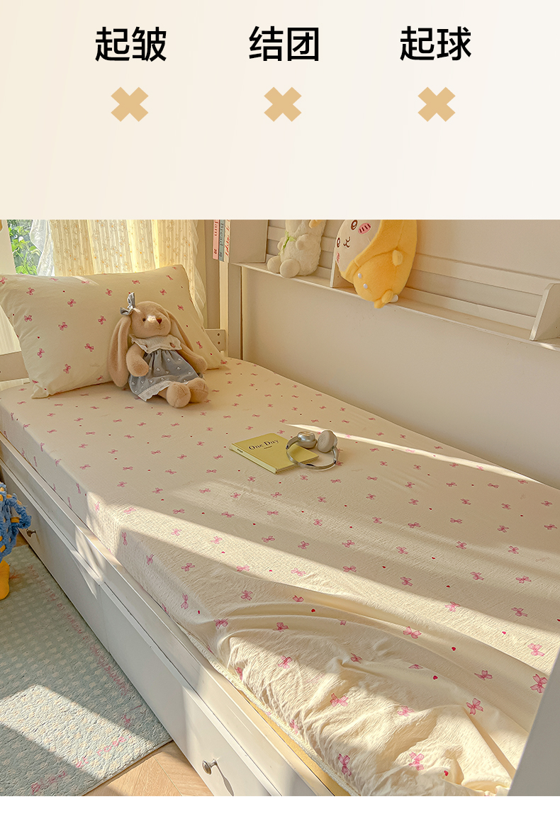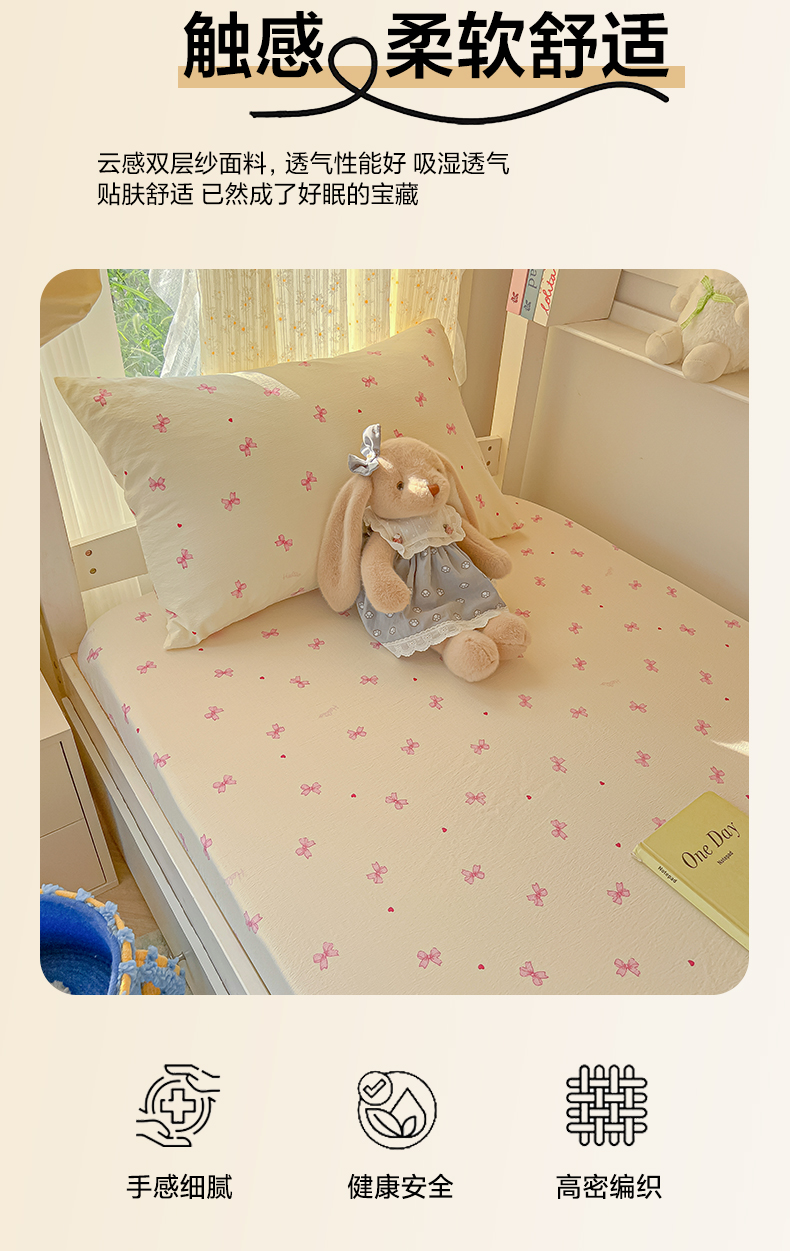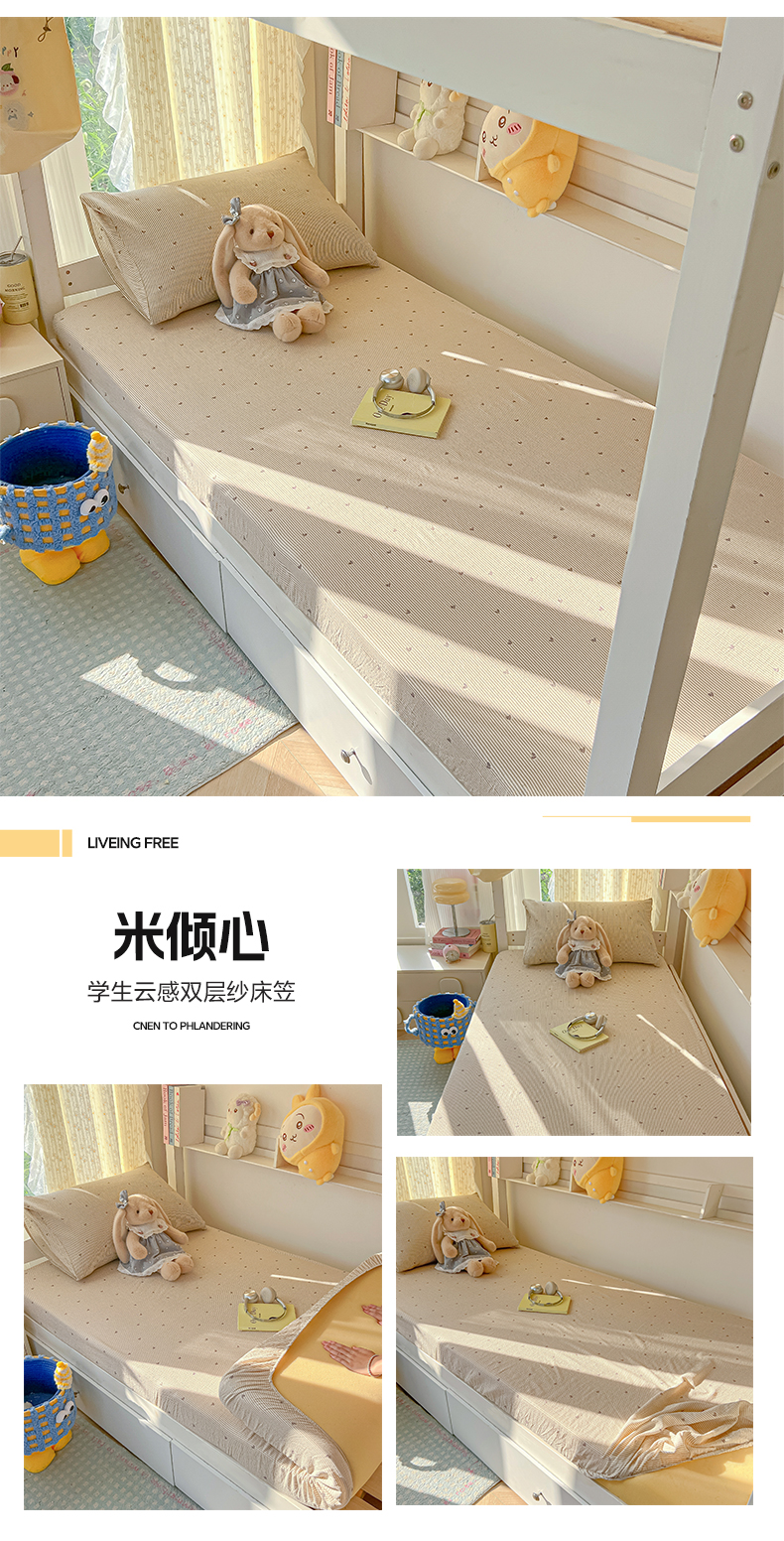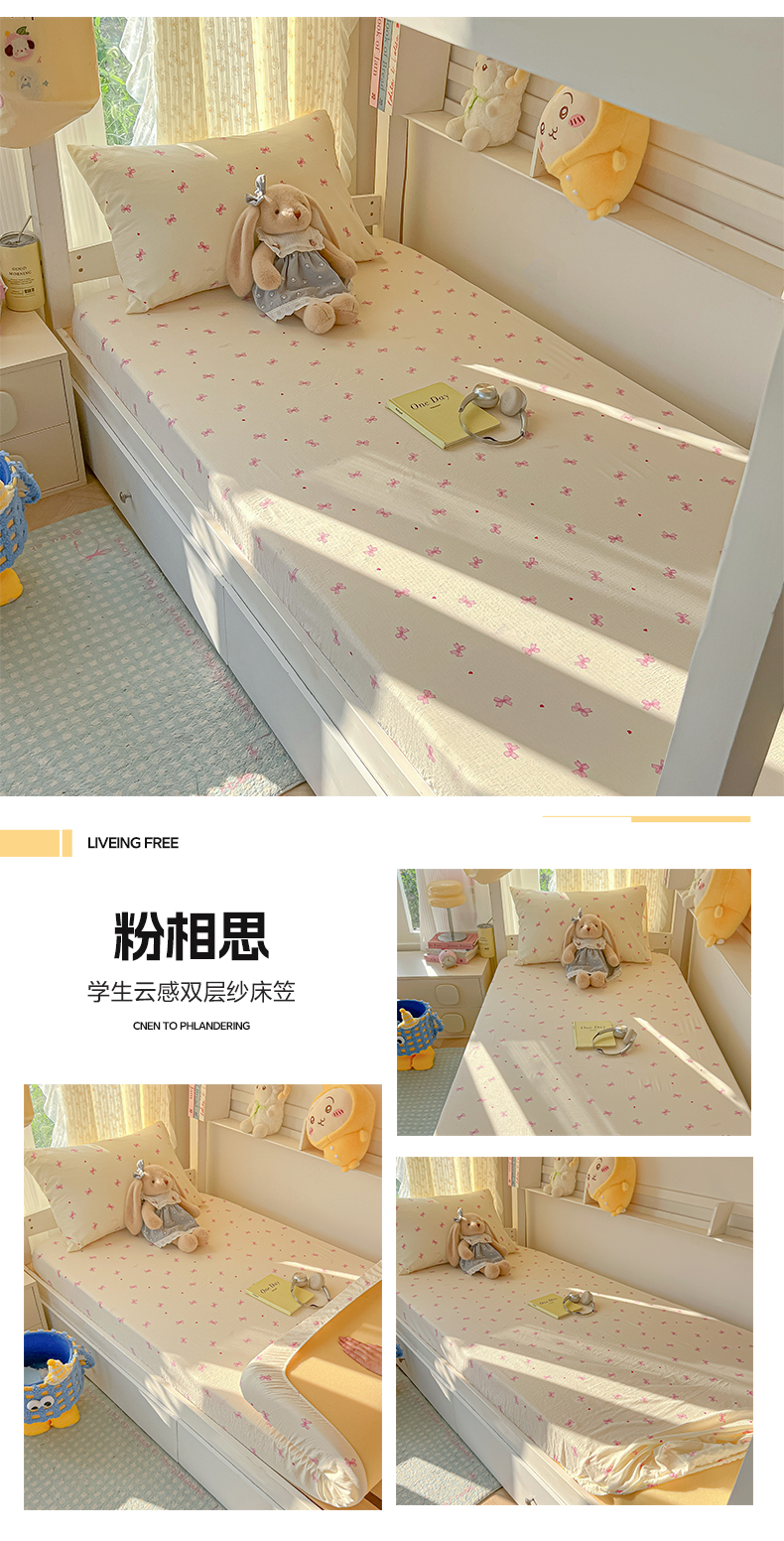 韩巢家纺 2025新款双层纱学生宿舍寝室床笠单件单床笠上下铺防滑床单床垫套 粉相思