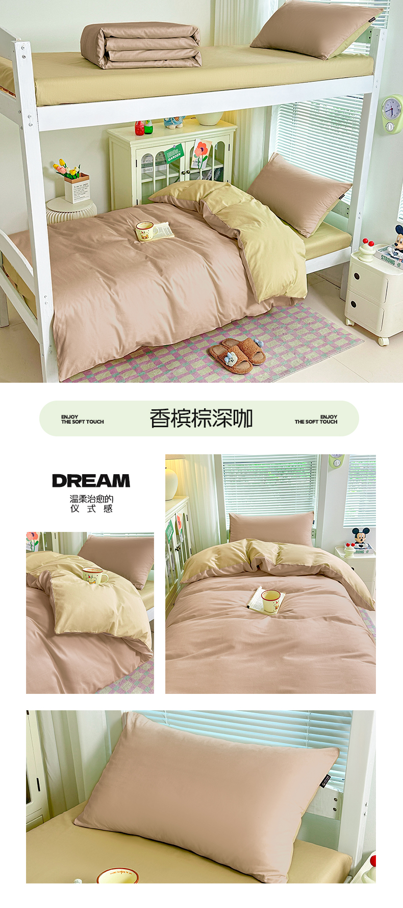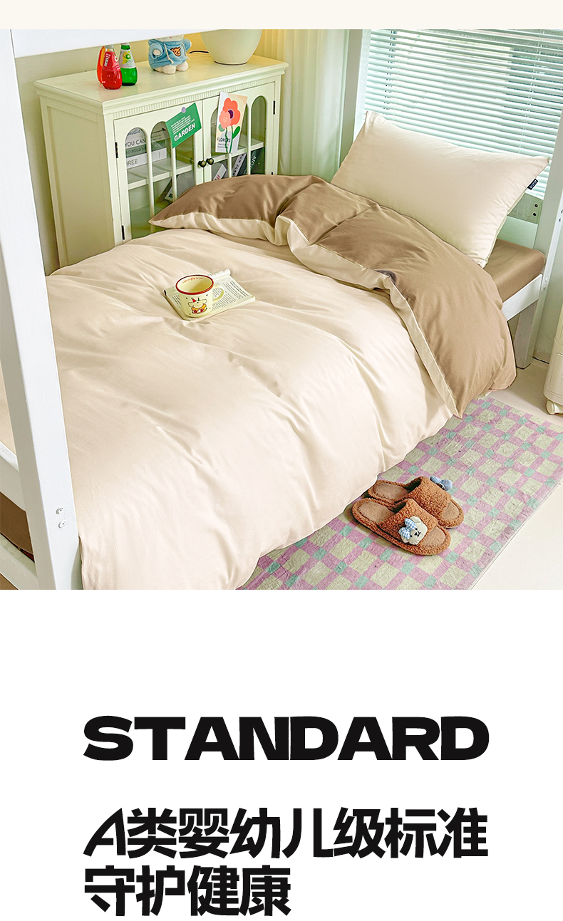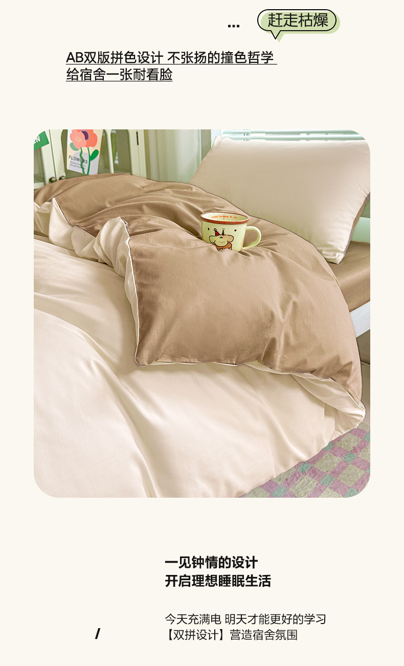 商品名称:麦田家纺 2025新款A类全棉学生宿舍四件套 浅米卡其棕