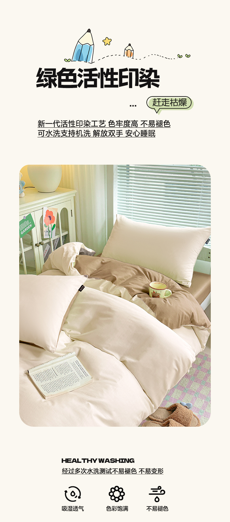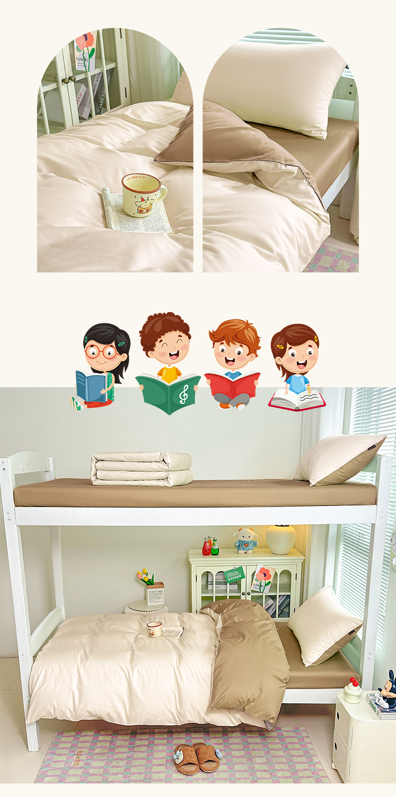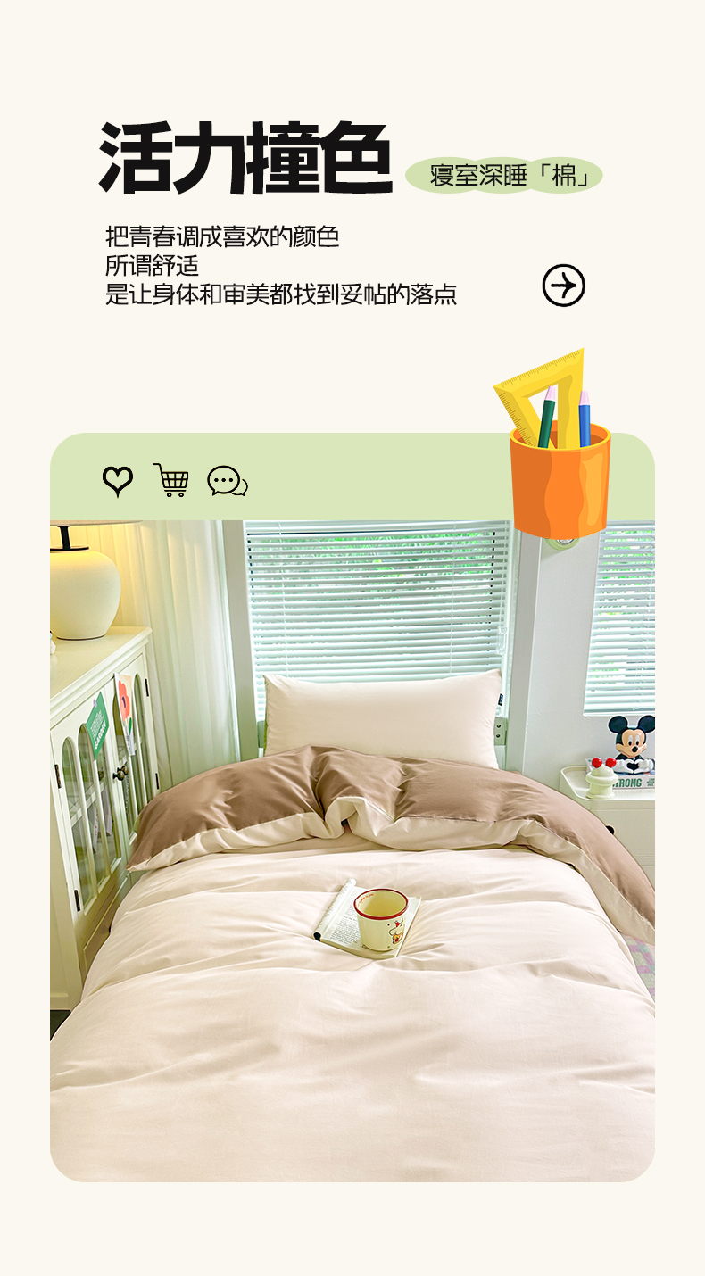 商品名称:麦田家纺 2025新款A类全棉学生宿舍四件套 浅米卡其棕