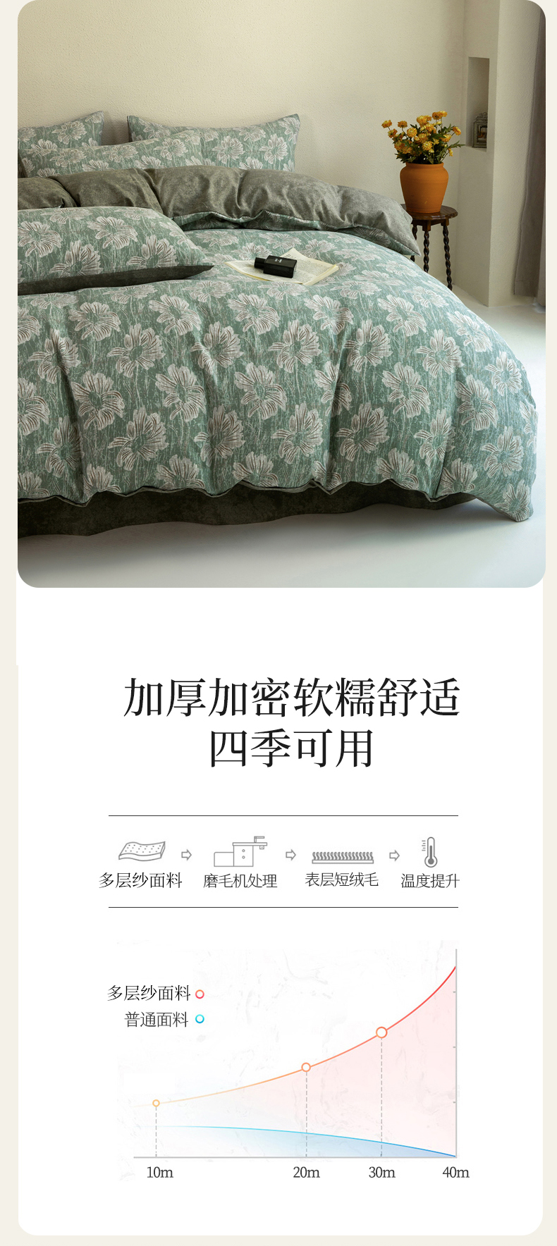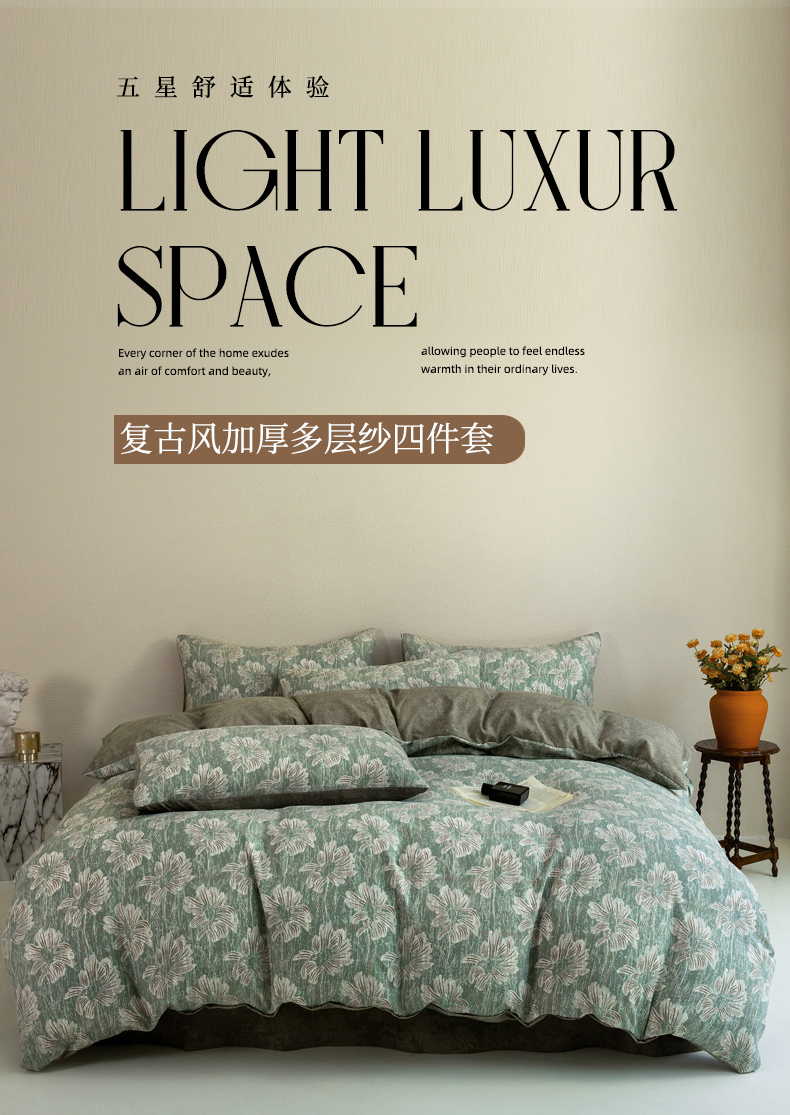 大境 2025秋冬新款加厚复古风多层纱轻磨毛四件套 西西里