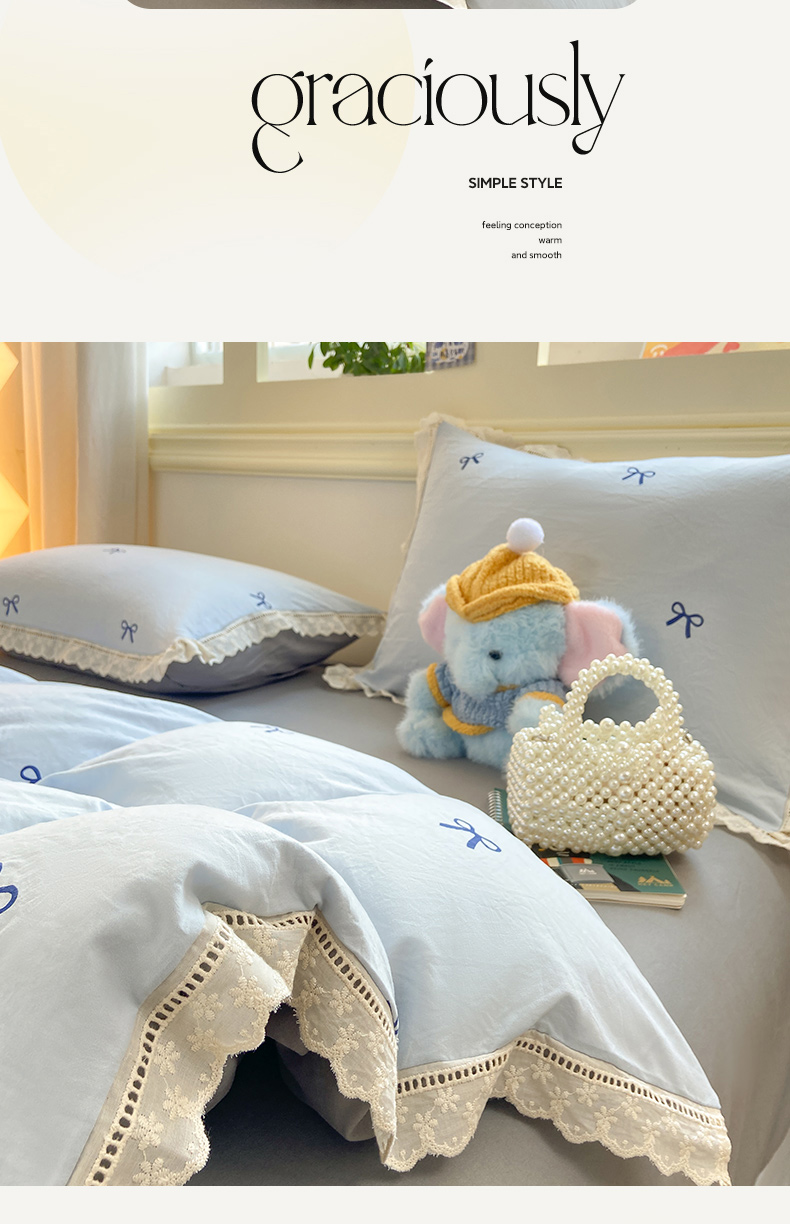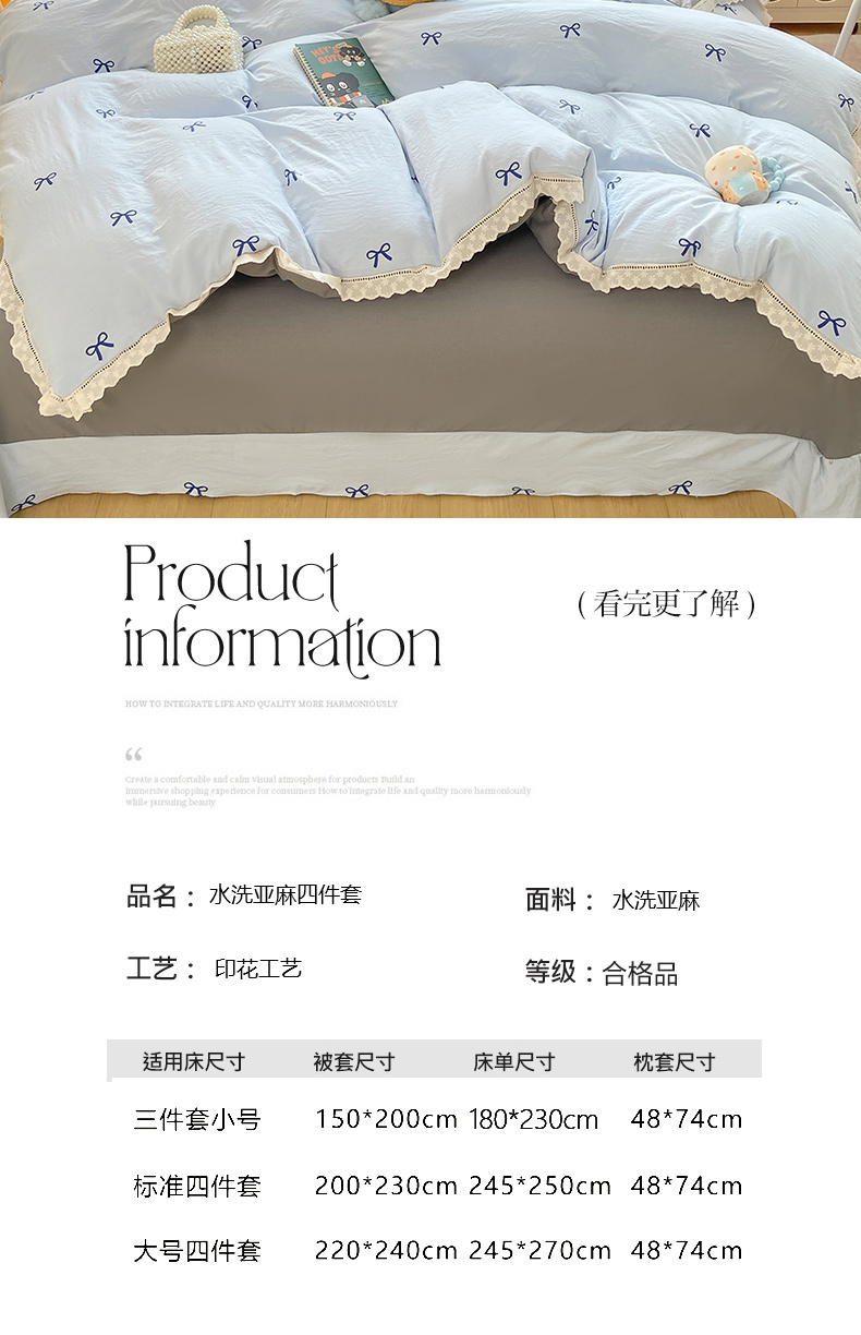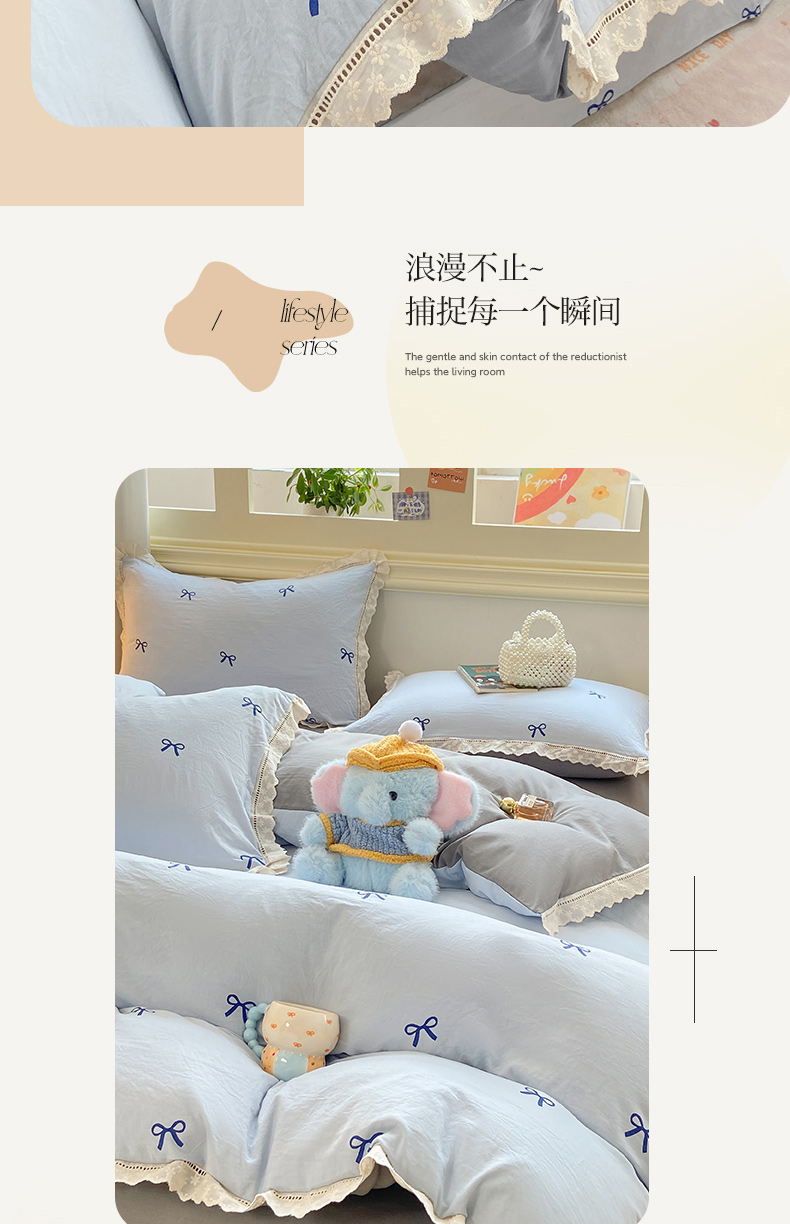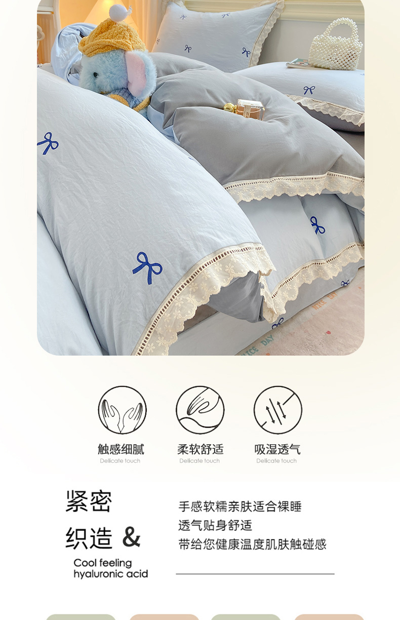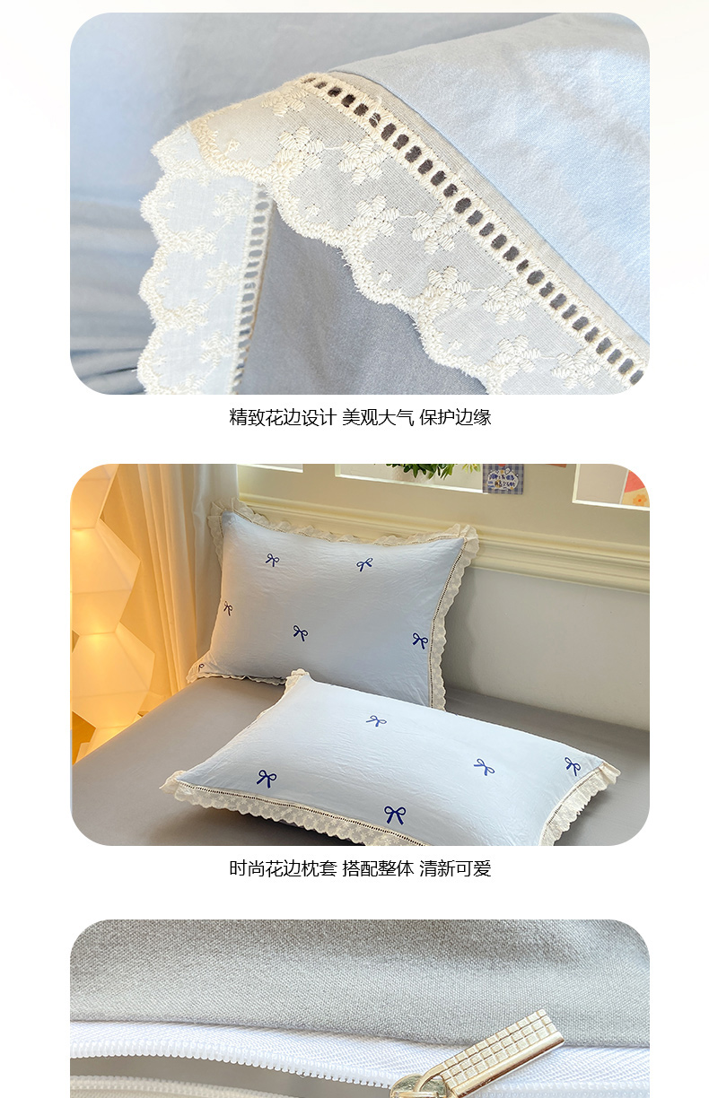 商品名称:大麦家纺 25年新款高克重印花水洗棉花边四件套 蝴蝶结
