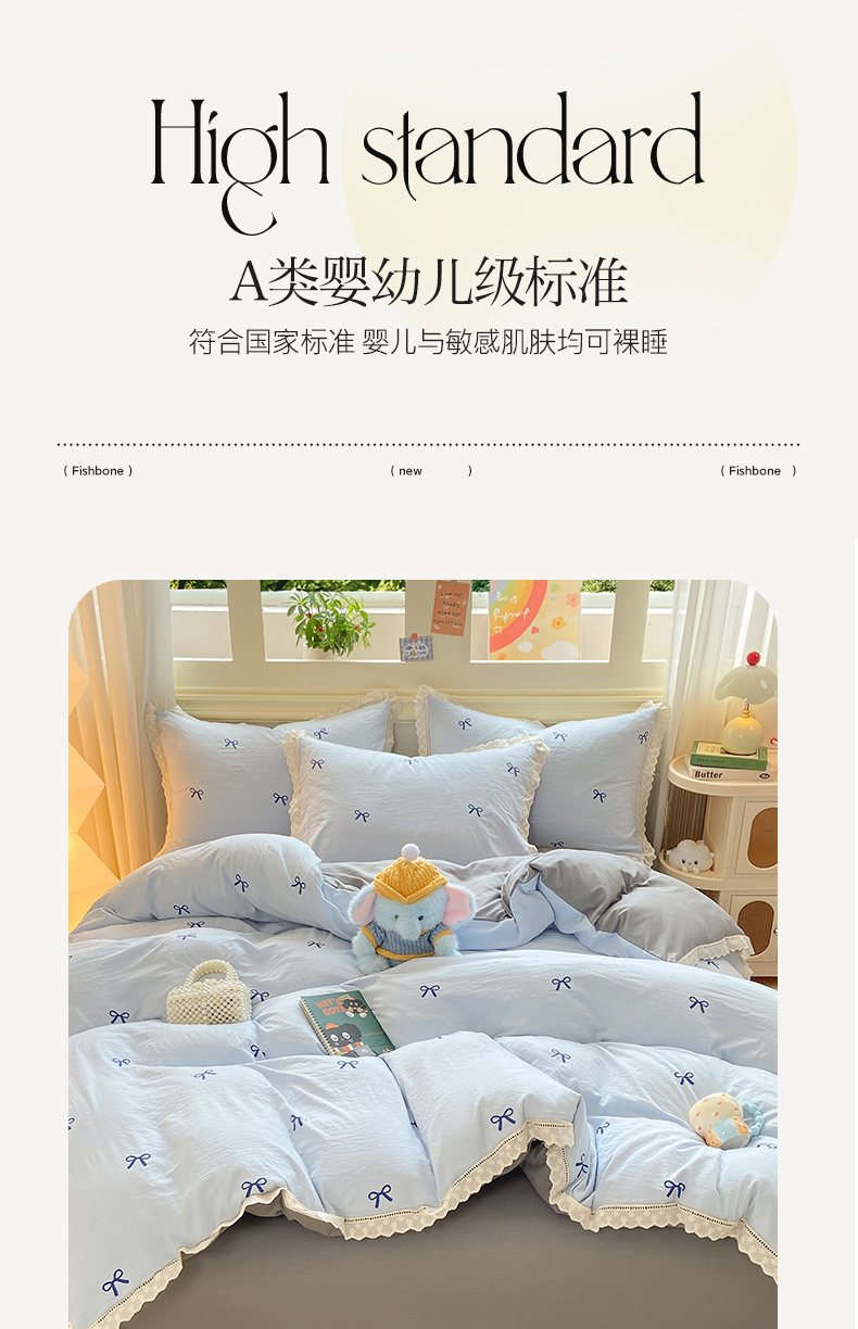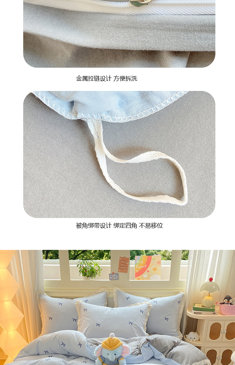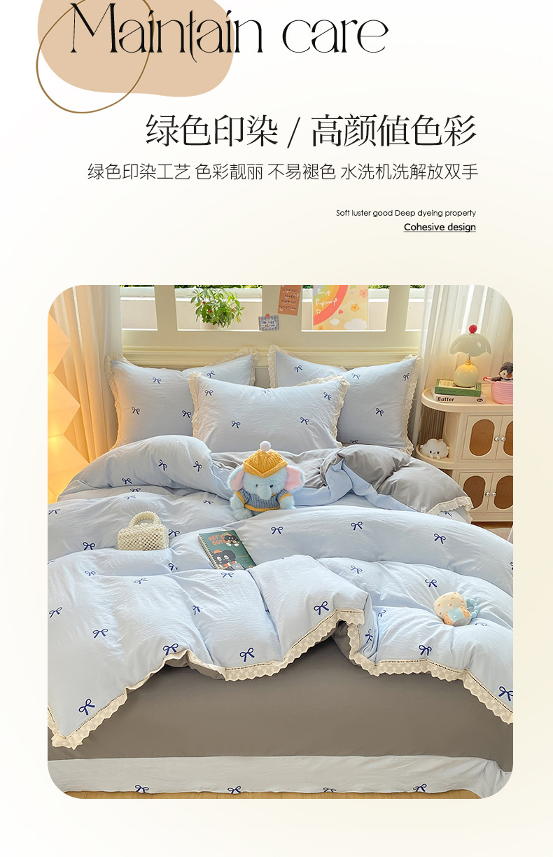 大麦家纺 25年新款高克重印花水洗棉花边四件套 蝴蝶结