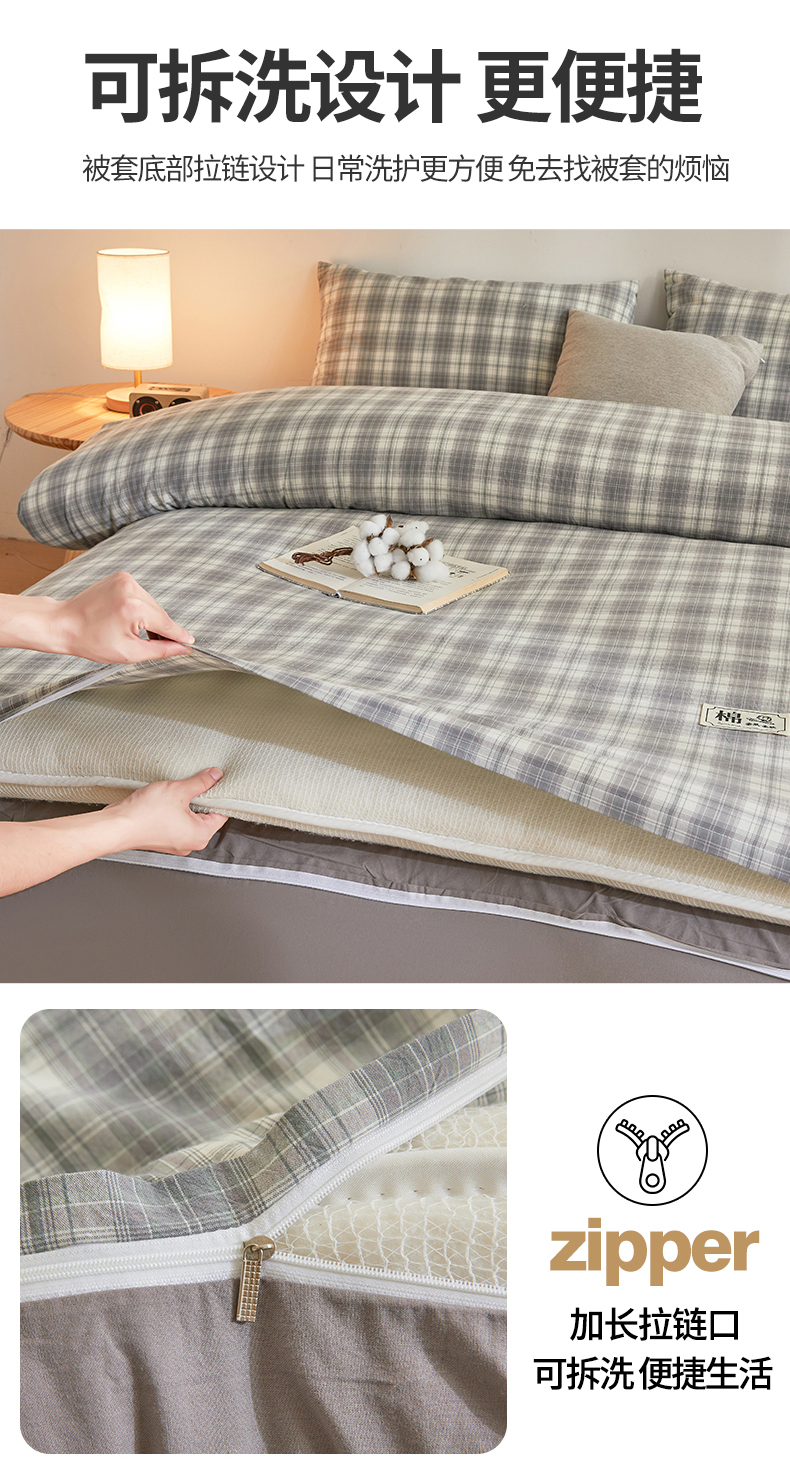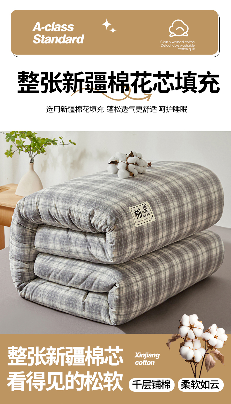 • 91家纺网 家纺一手货源 找家纺 晓时候 2025新款无印风亲肤水洗棉新疆棉花被可拆洗被子被芯冬被春秋被 简兮灰
