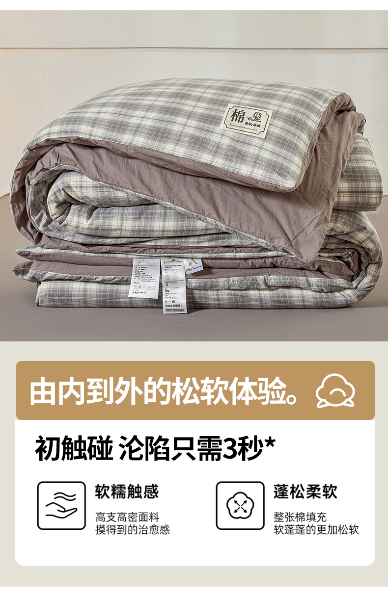 当前位置: 91家纺网 > 商品网购 > 被子 > 冬被 > 晓时候 2025新款无印风亲肤水洗棉新疆棉花被可拆洗被子被芯冬被春秋被 简兮灰
