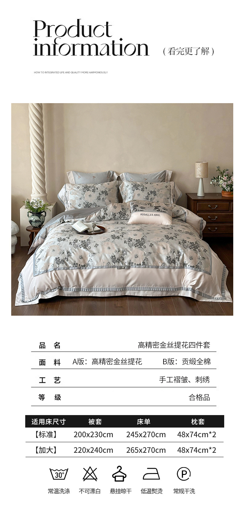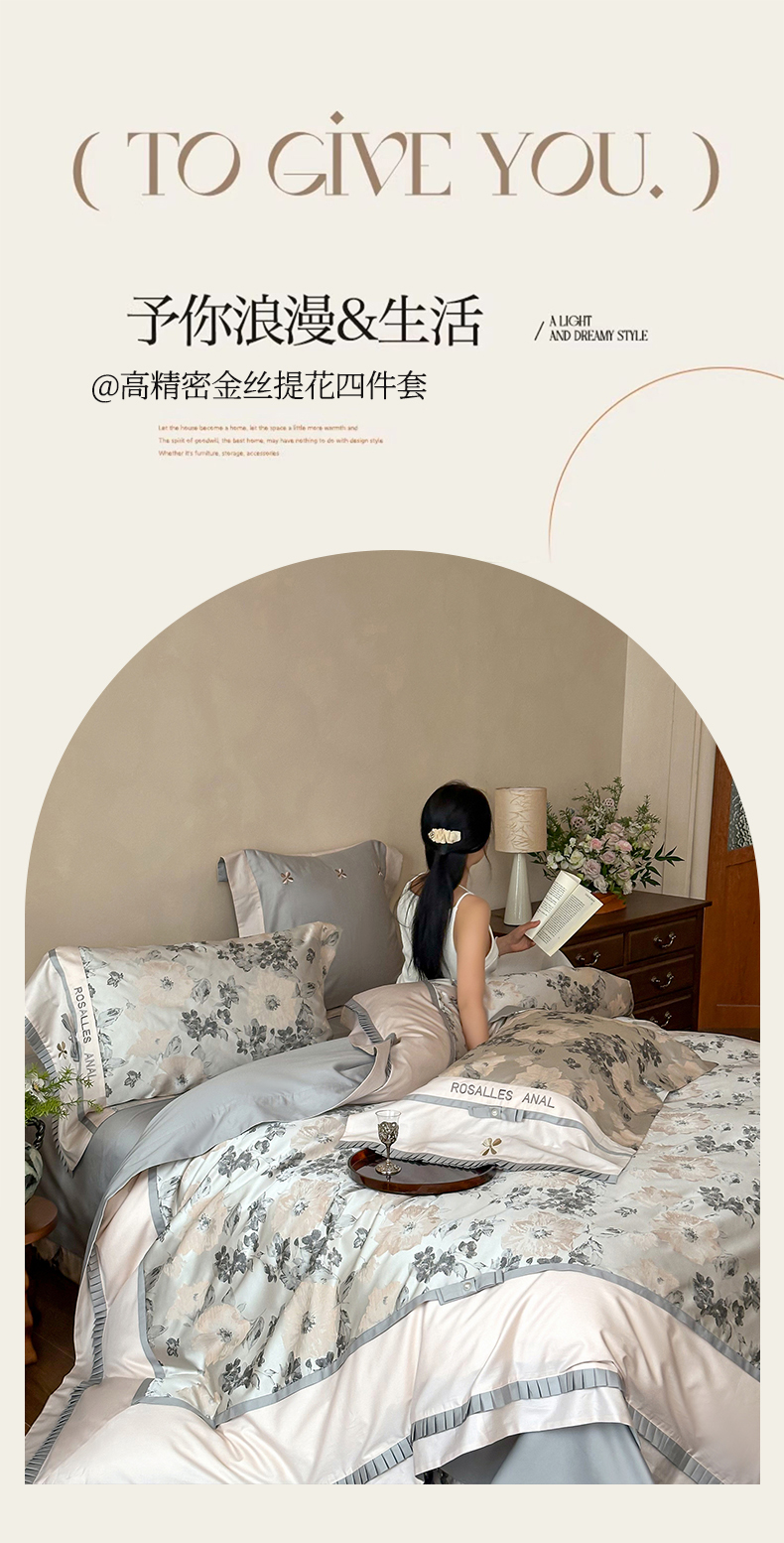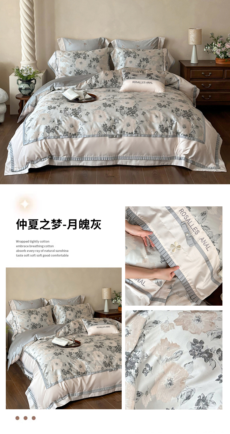 商品名称:红番天家居馆 2025新款高精密金丝提花四件套-仲夏之梦 仲夏之梦-月魄灰