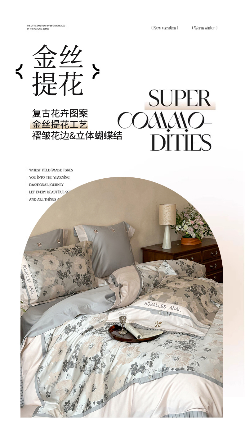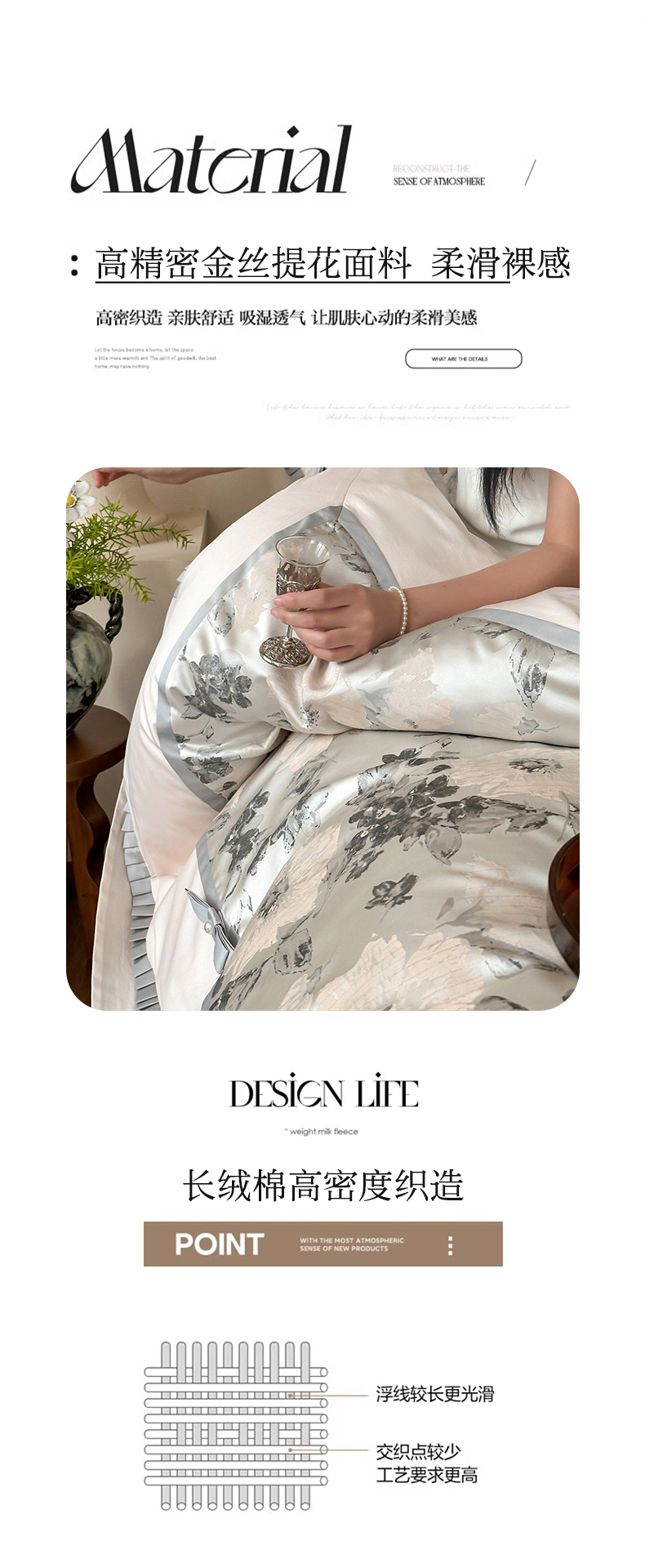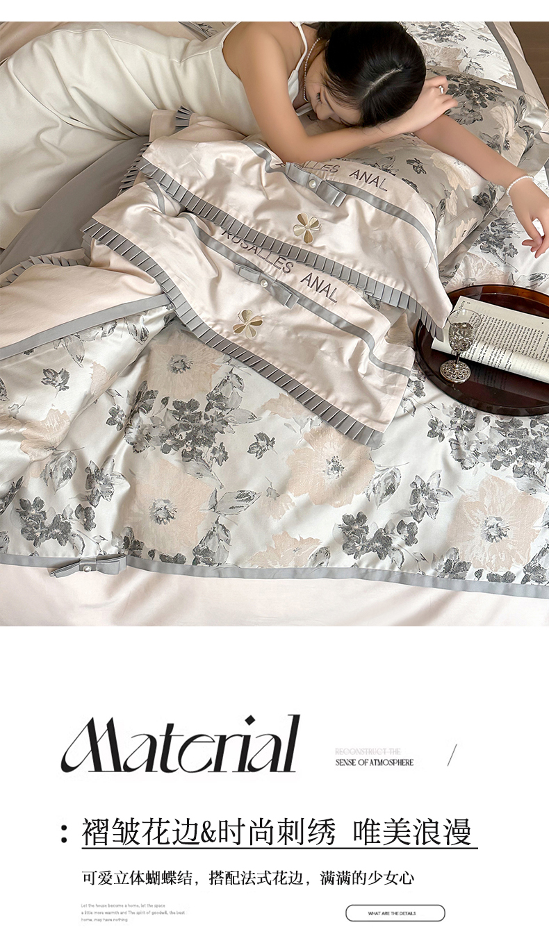 商品名称:红番天家居馆 2025新款高精密金丝提花四件套-仲夏之梦 仲夏之梦-月魄灰