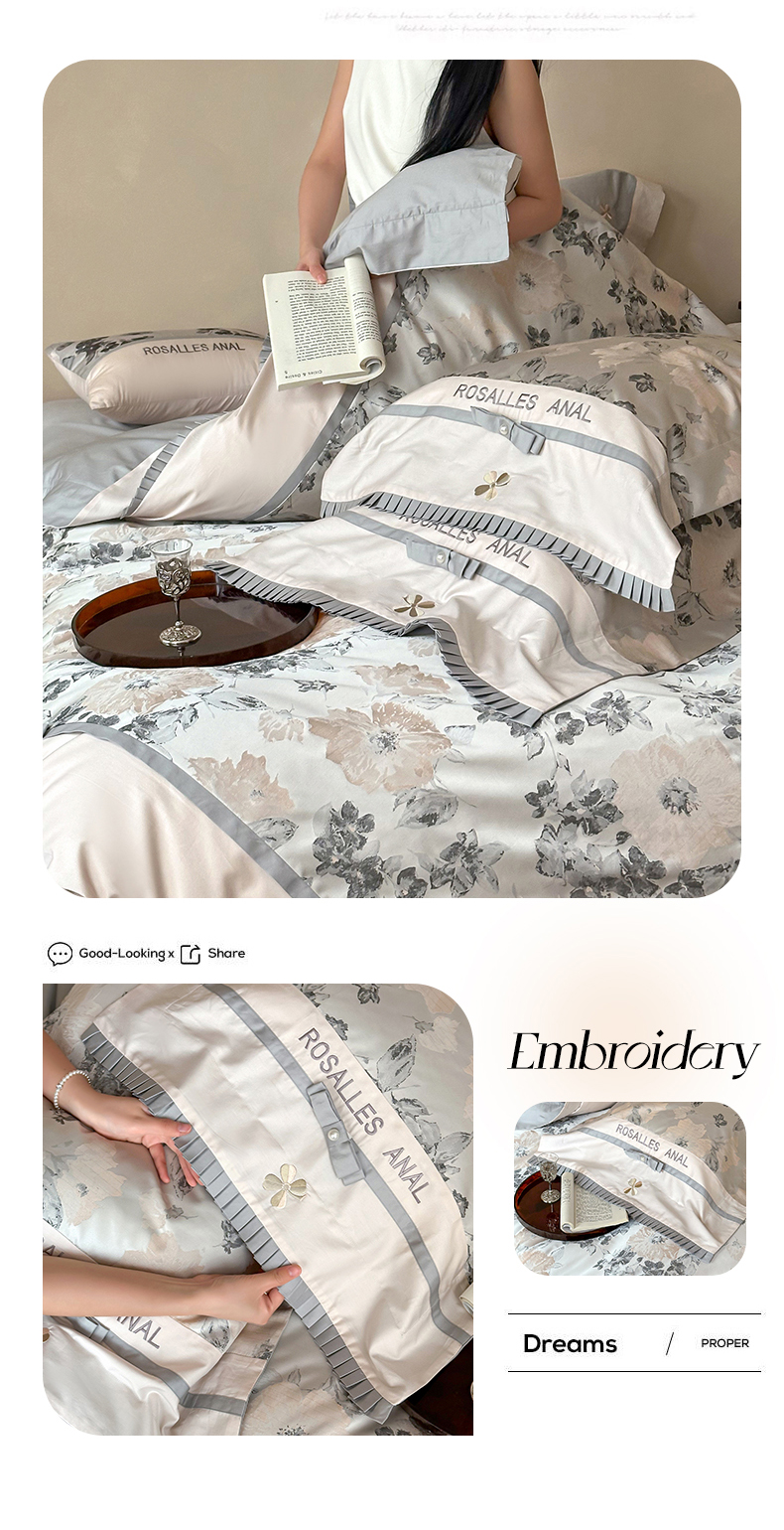 (总)红番天家居馆 2025新款全棉纯棉贡缎长绒棉手工捏折刺绣蕾丝四件套-觅春,觅春-夹心粉,觅春-午后清晨,觅春-云朵吐司