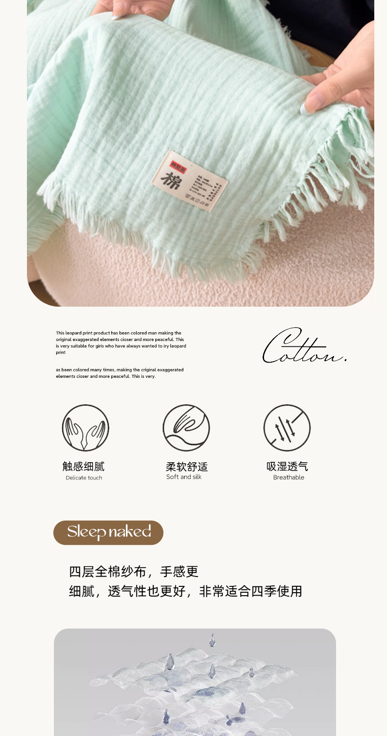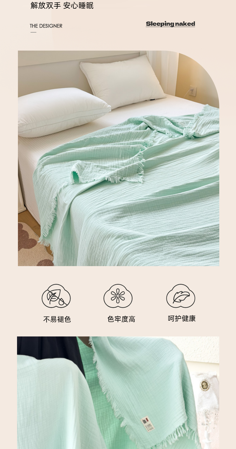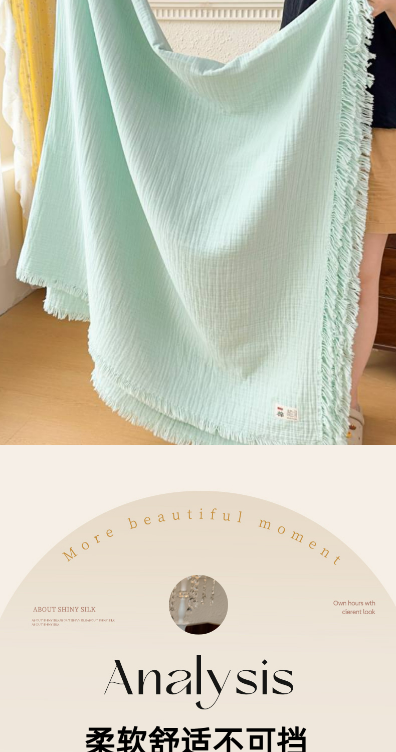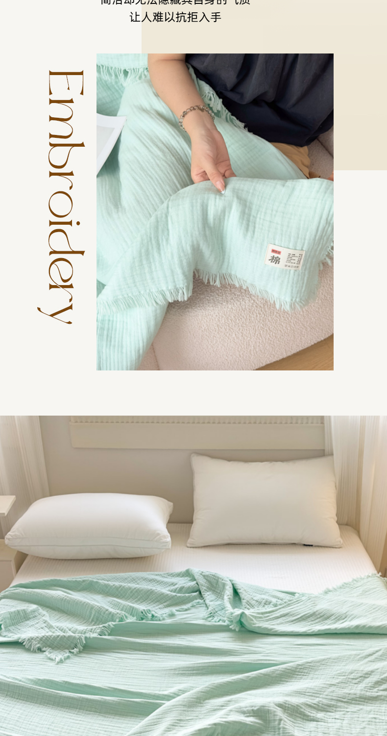 商品名称:悦然毛巾被 2025新款全棉纯棉四层纱布流苏毯毛巾被 意境系列 意境-绿