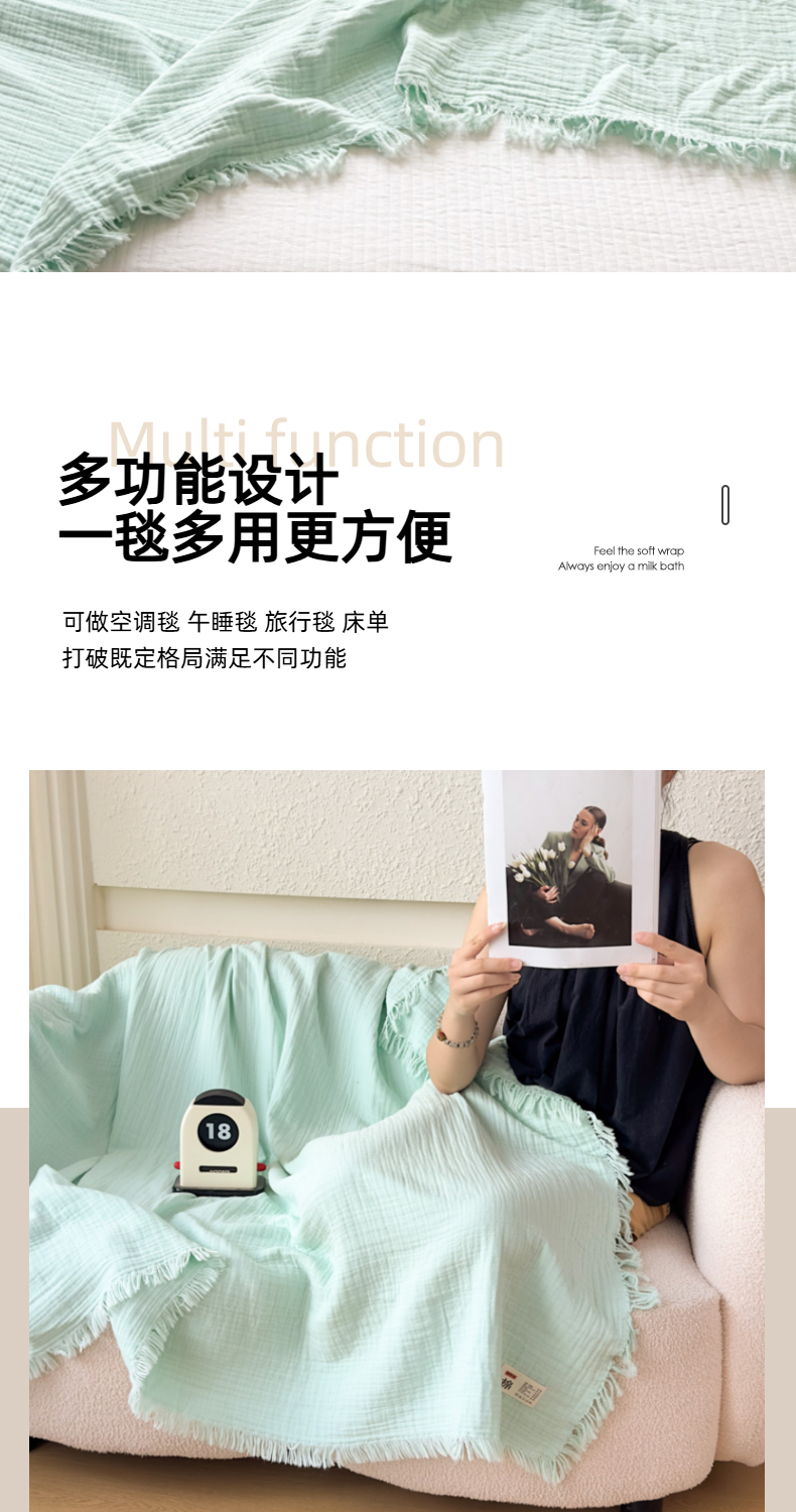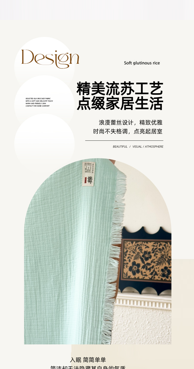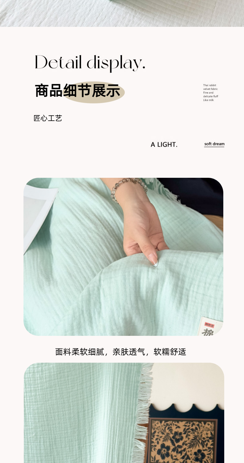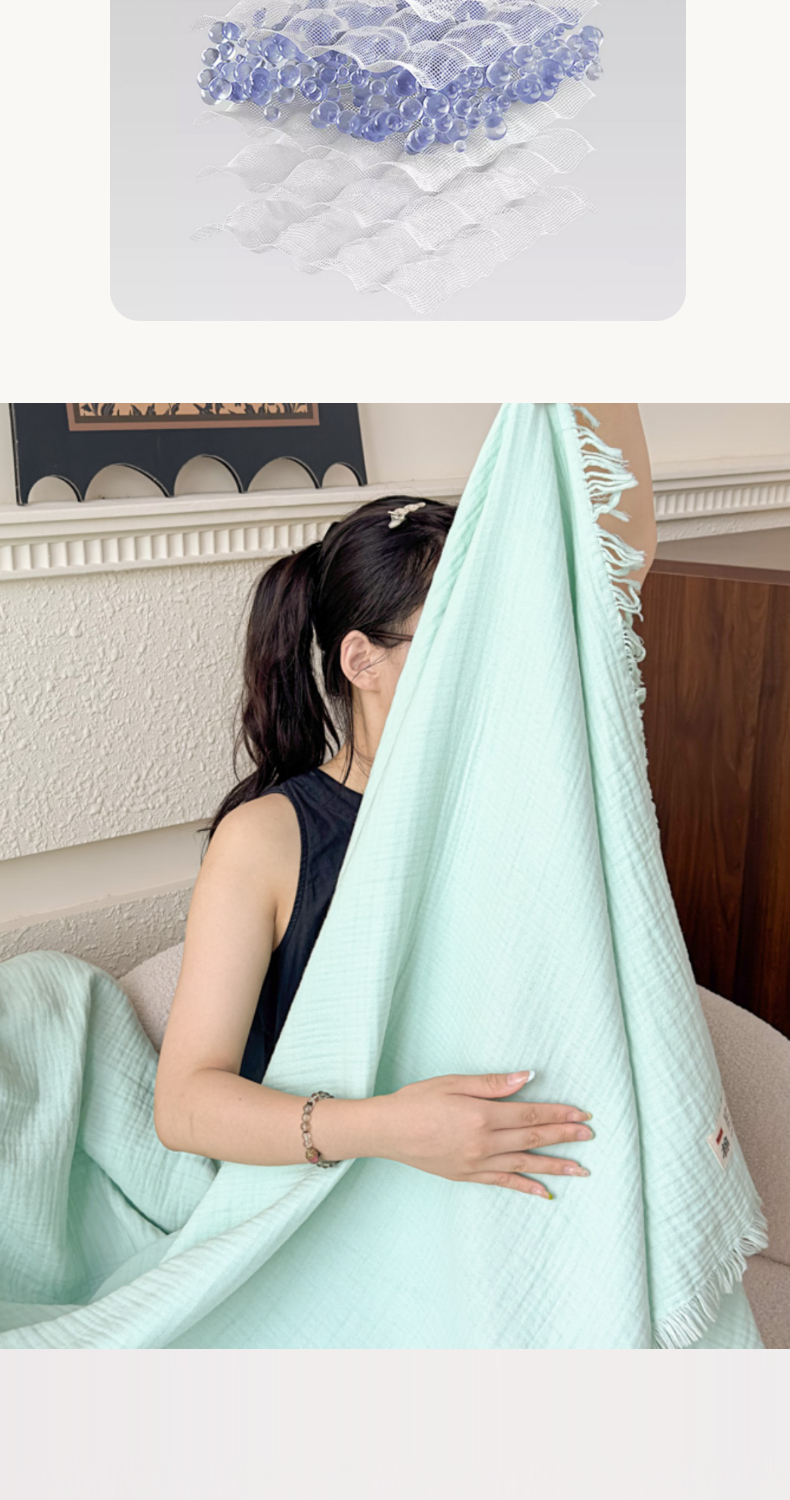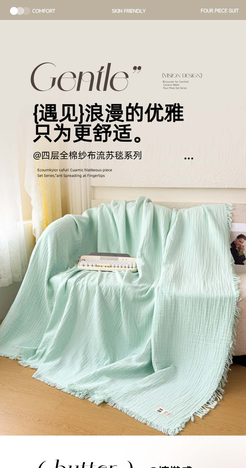 商品名称:悦然毛巾被 2025新款全棉纯棉四层纱布流苏毯毛巾被 意境系列 意境-绿