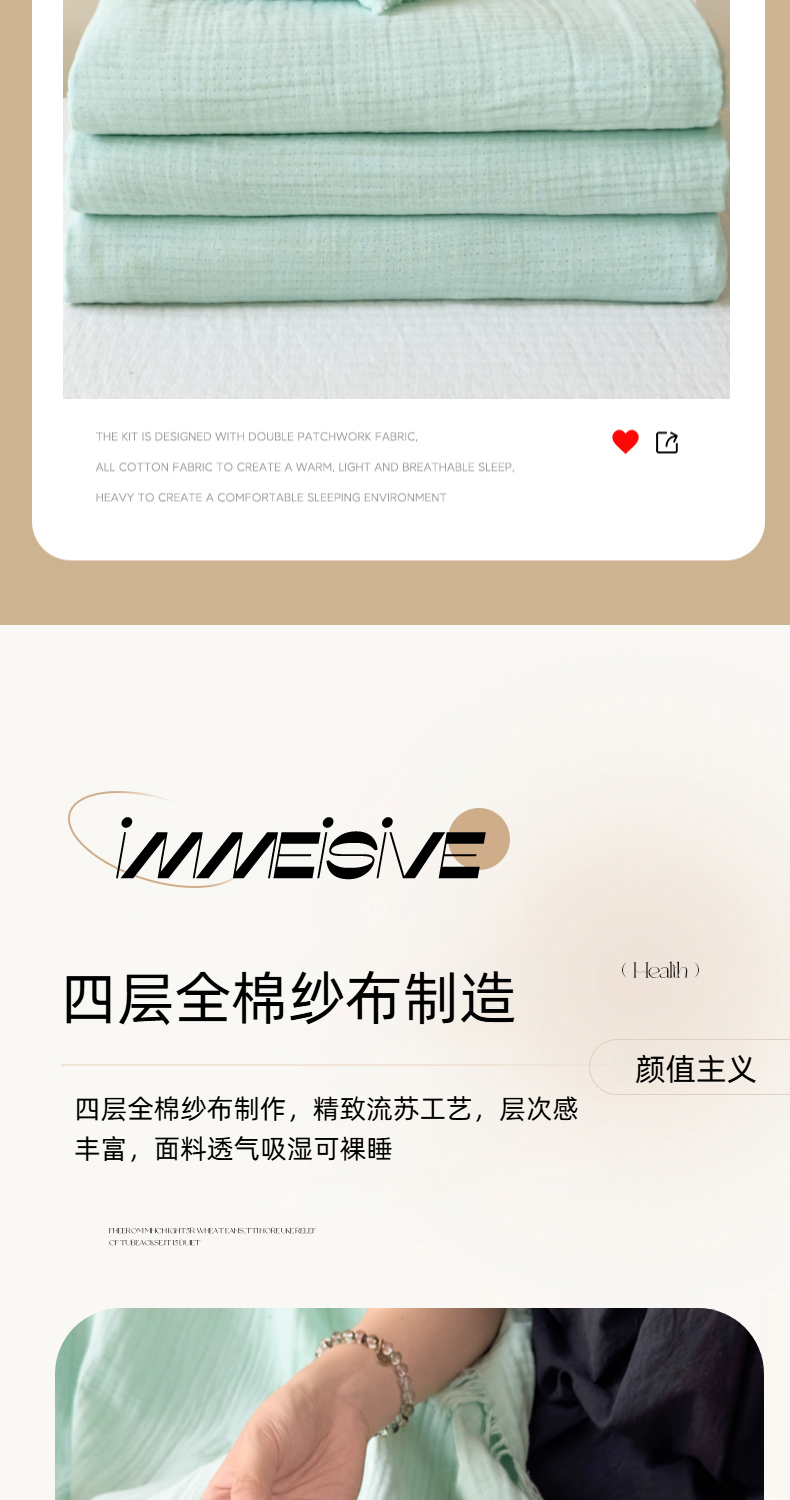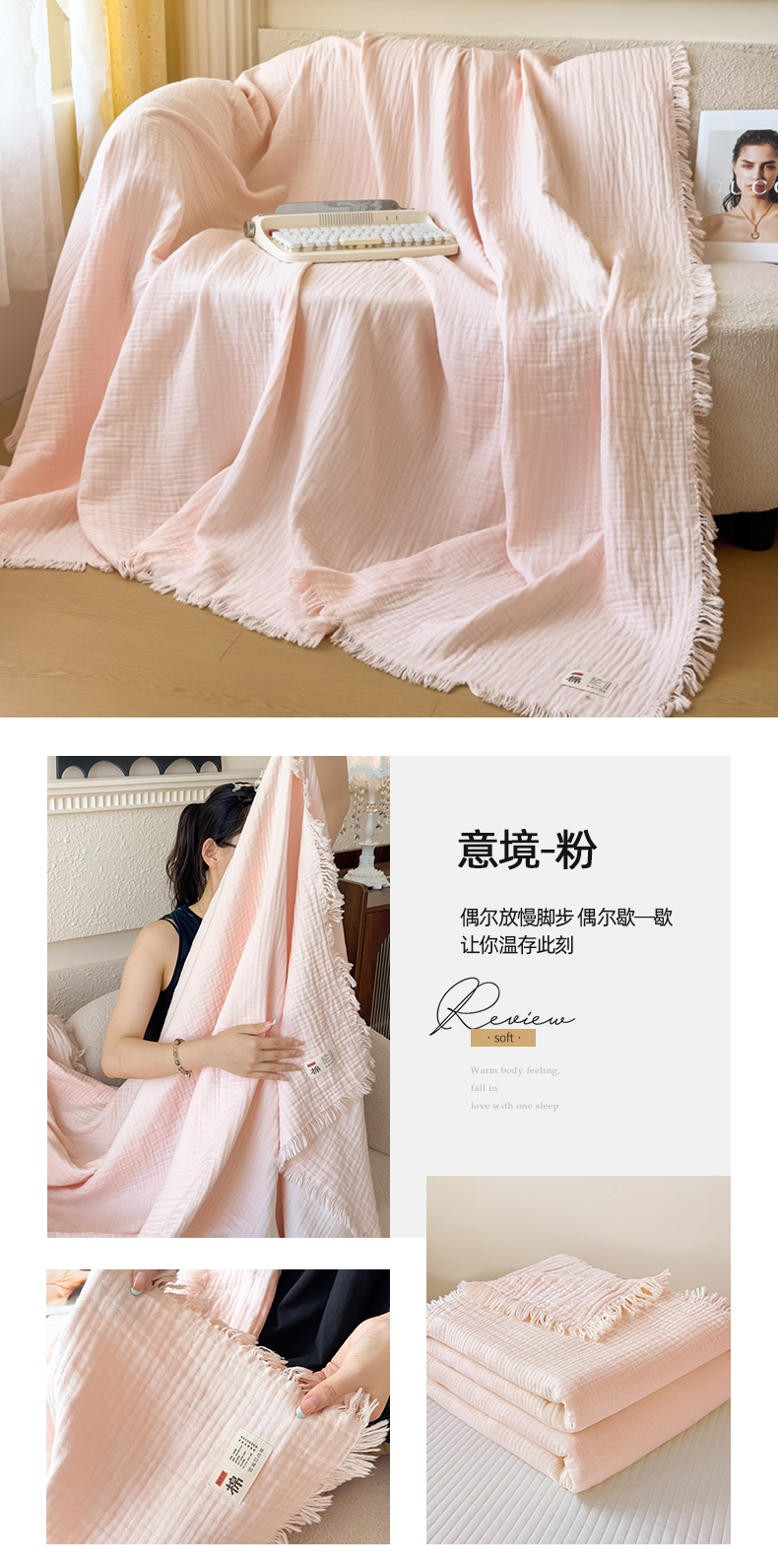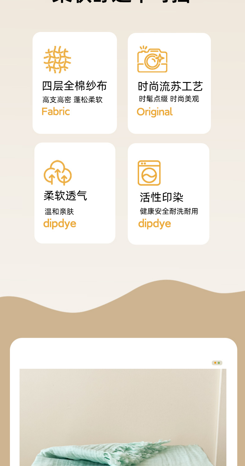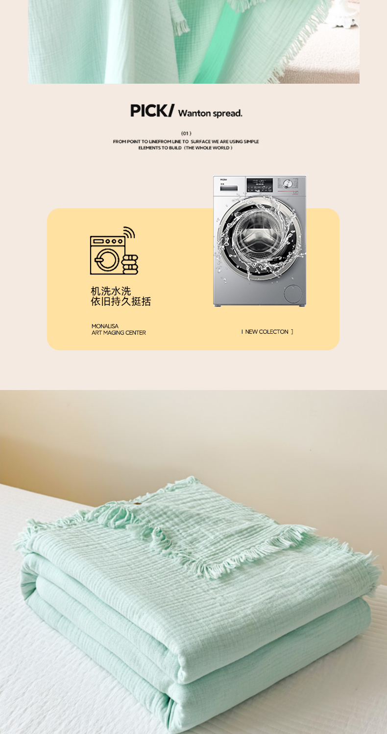 商品名称:悦然毛巾被 2025新款全棉纯棉四层纱布流苏毯毛巾被 意境系列 意境-绿