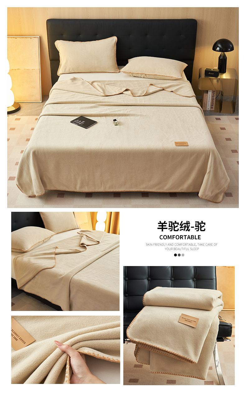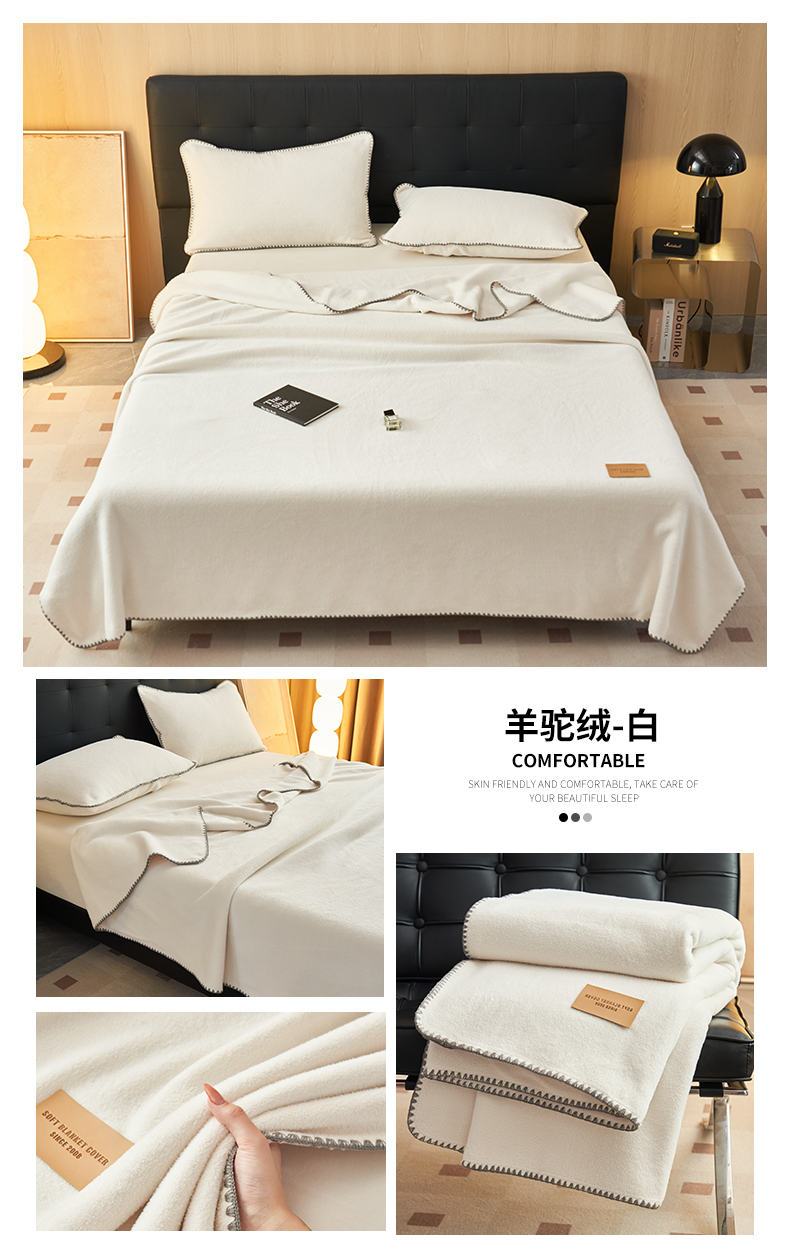 商品名称:莱家富 2026新款四季毯羊驼绒三角针边毛毯午睡沙发盖毯空调毯加厚500克双层毯 羊驼绒-白