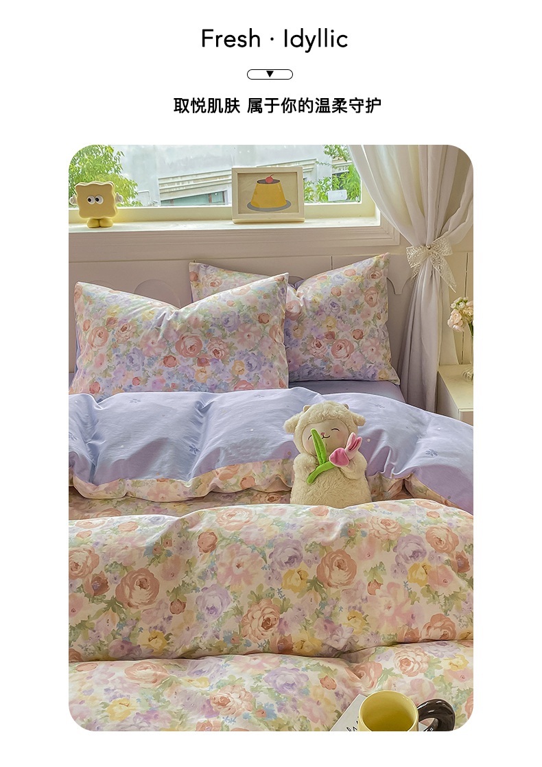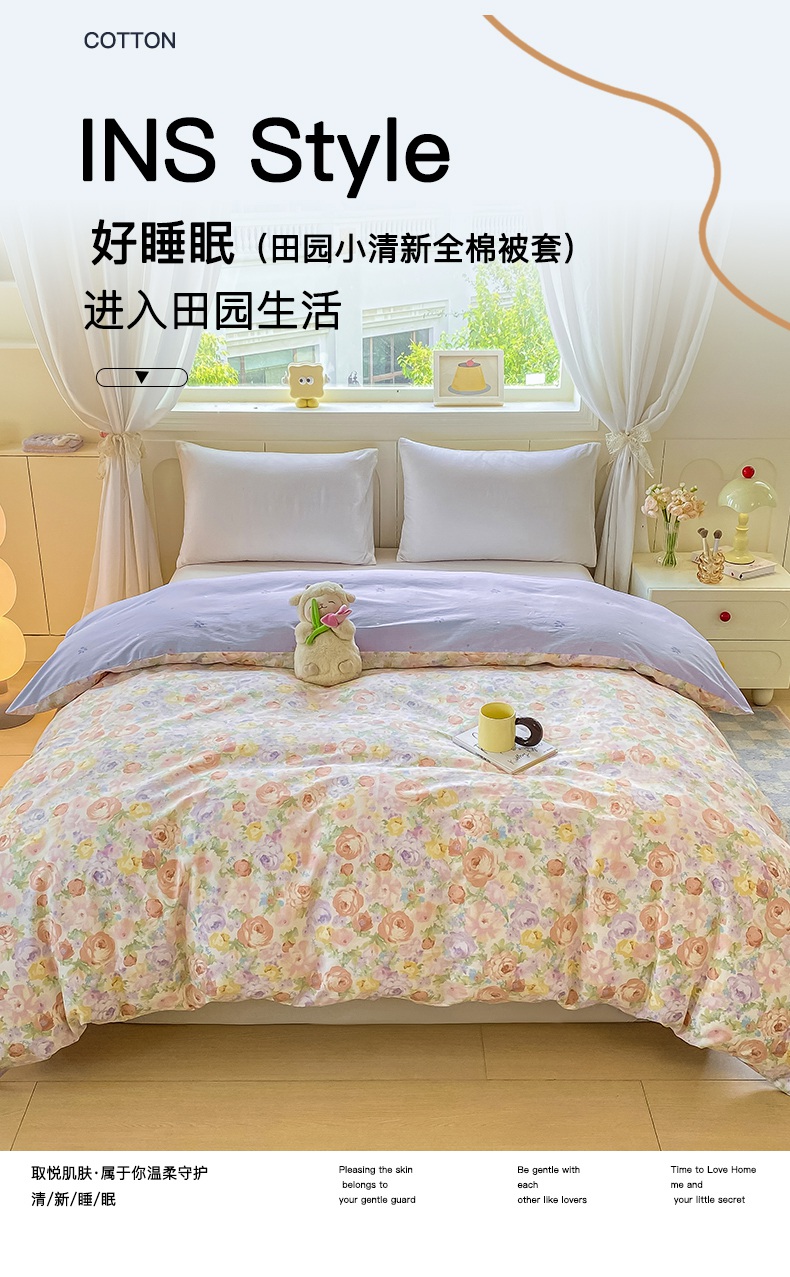 商品名称:黑马家居 2025新款13070全棉田园小清新单品被套系列 花漾