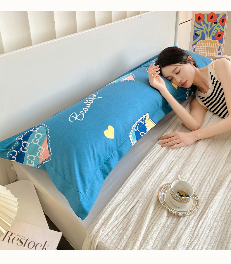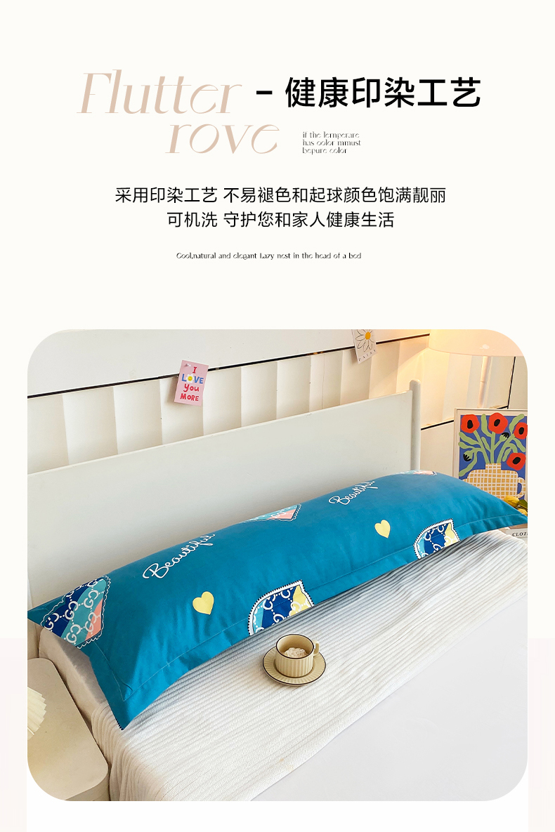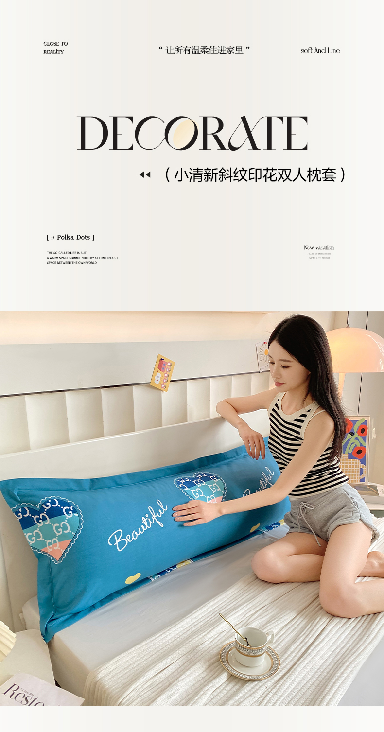 雨彤家纺 2025新款小清新斜纹印花双人枕套 星愿-蓝