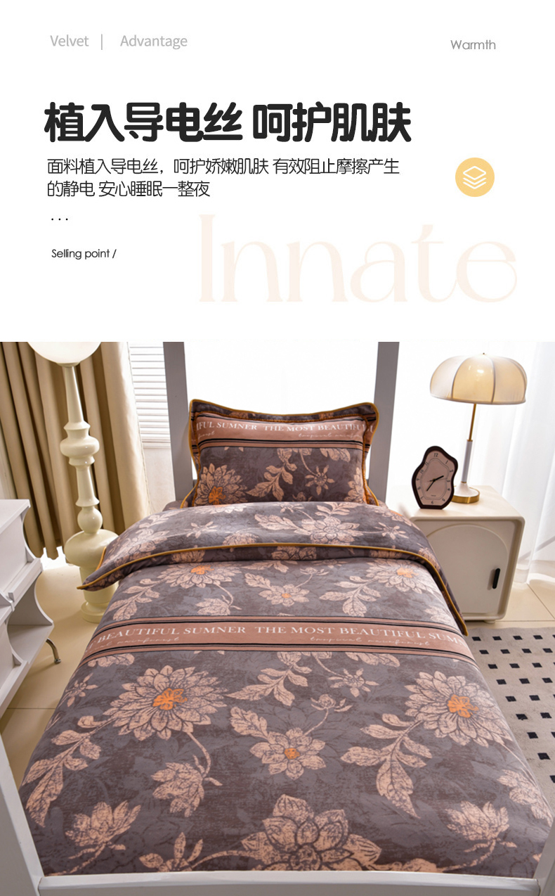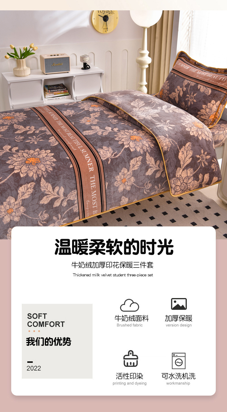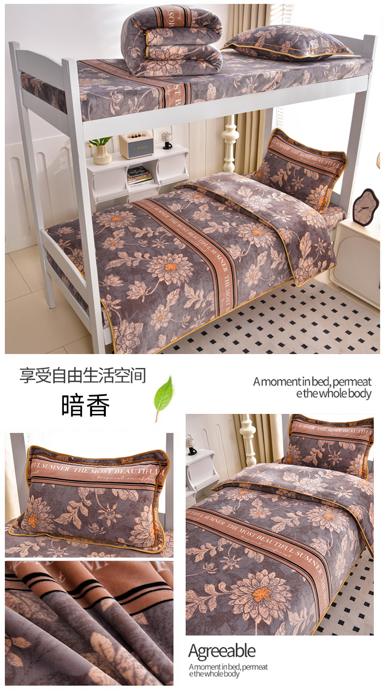 商品名称:芯诗曼家纺 2025新款金貂绒牛奶绒印花三件套 暗香