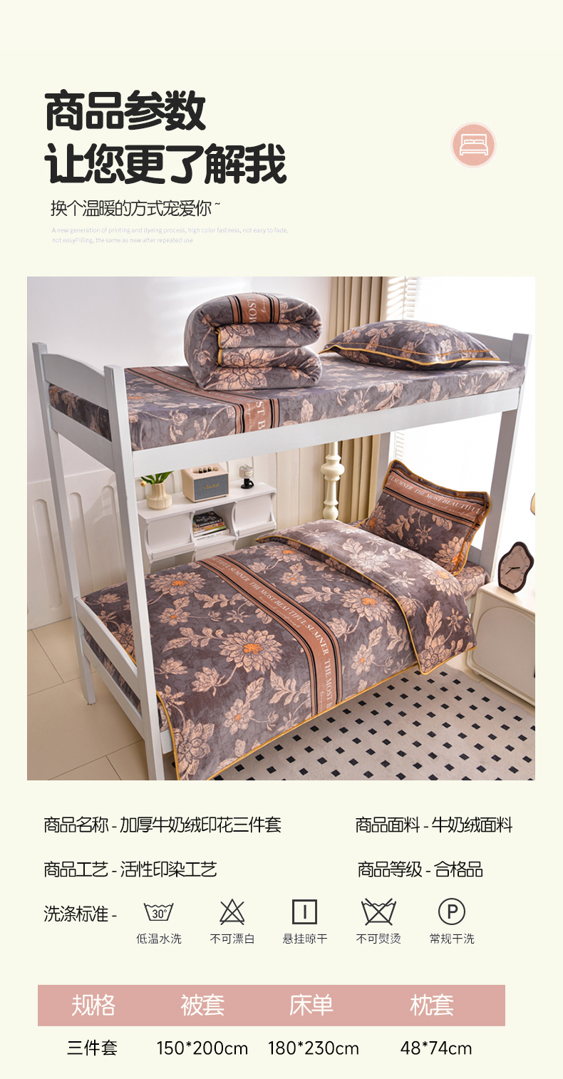 三件套【被套150*200床单180*230枕套48*74】