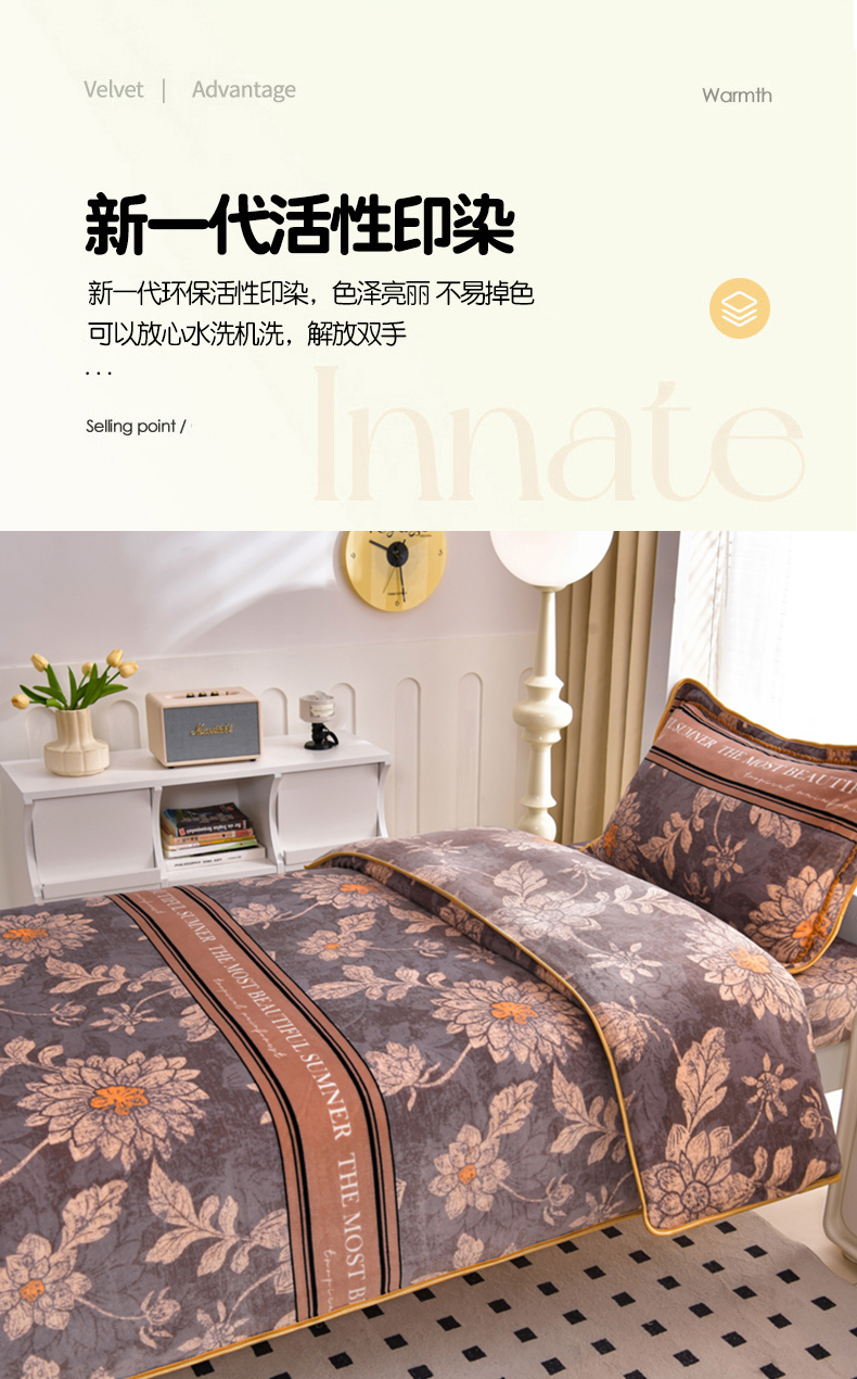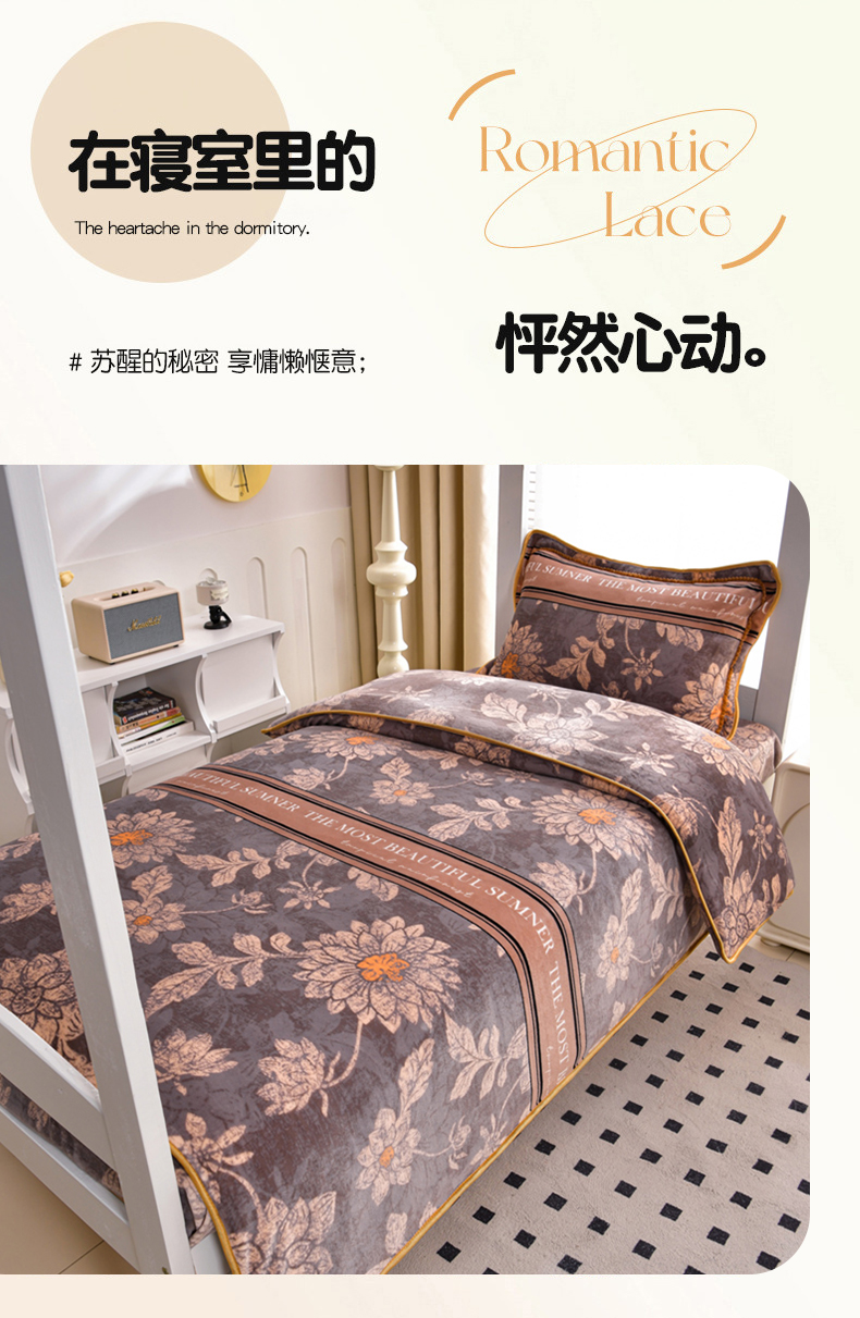 芯诗曼家纺 2025新款金貂绒牛奶绒印花三件套 暗香