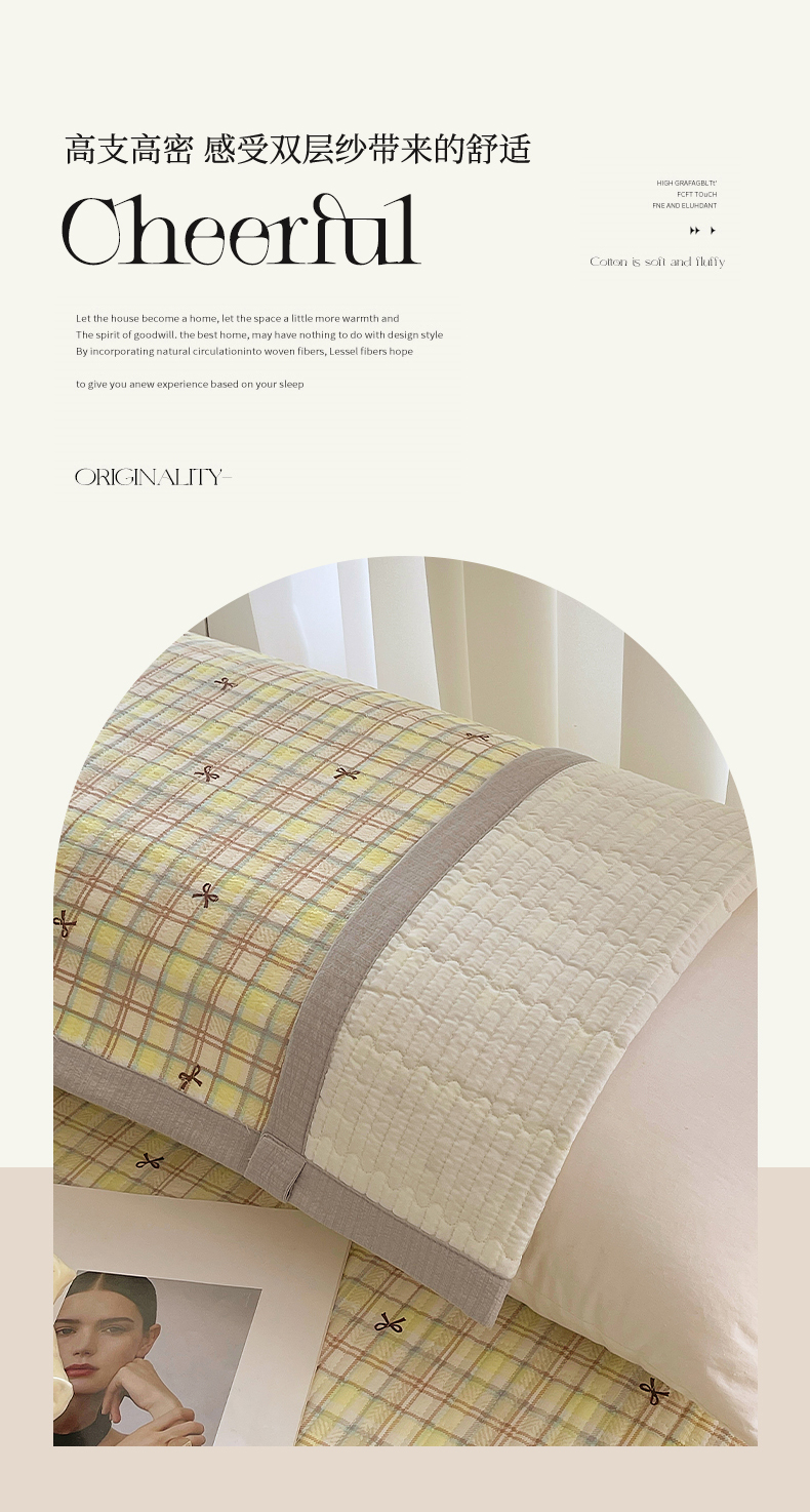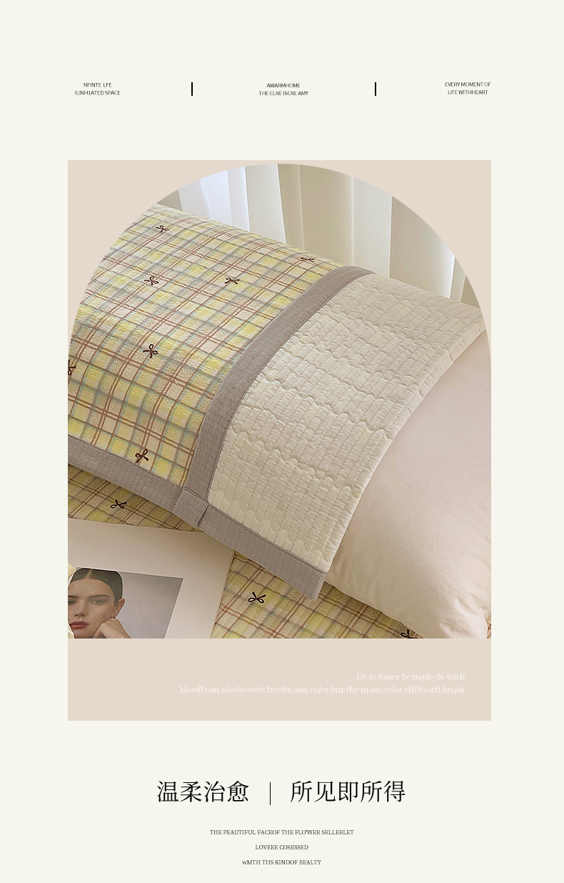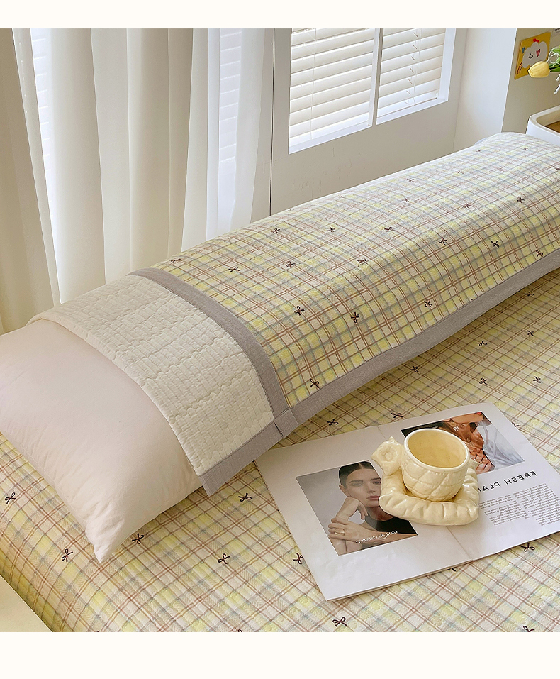 商品名称:雨彤家纺 2025新款A类双层纱夹棉双人枕巾 格调蝴蝶结