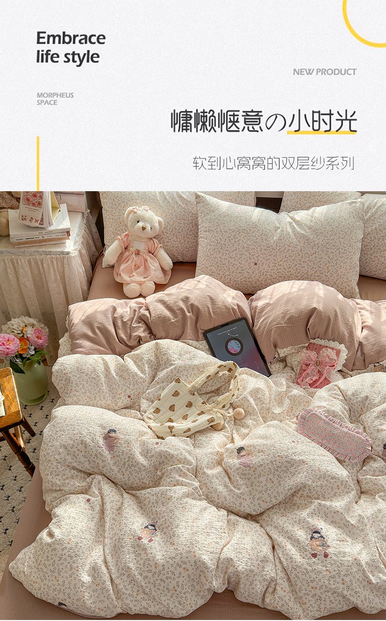 当前位置: 91家纺网 > 商品网购 > 床品套件 > 四件套 > 双层纱四件套 > 丽美人家纺 2025新款【全尺寸不断货】高克重木棉提花双层纱四件套 QB时光