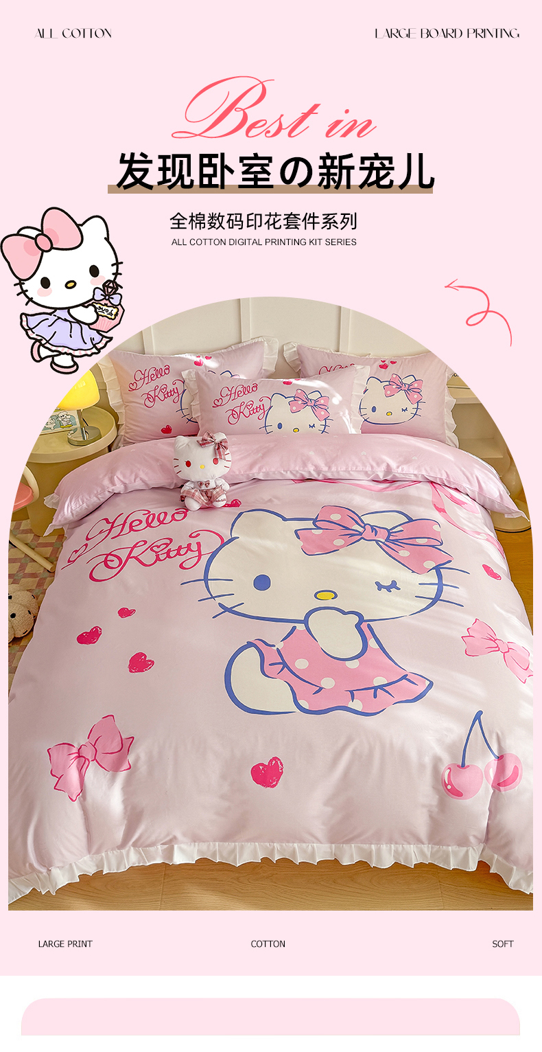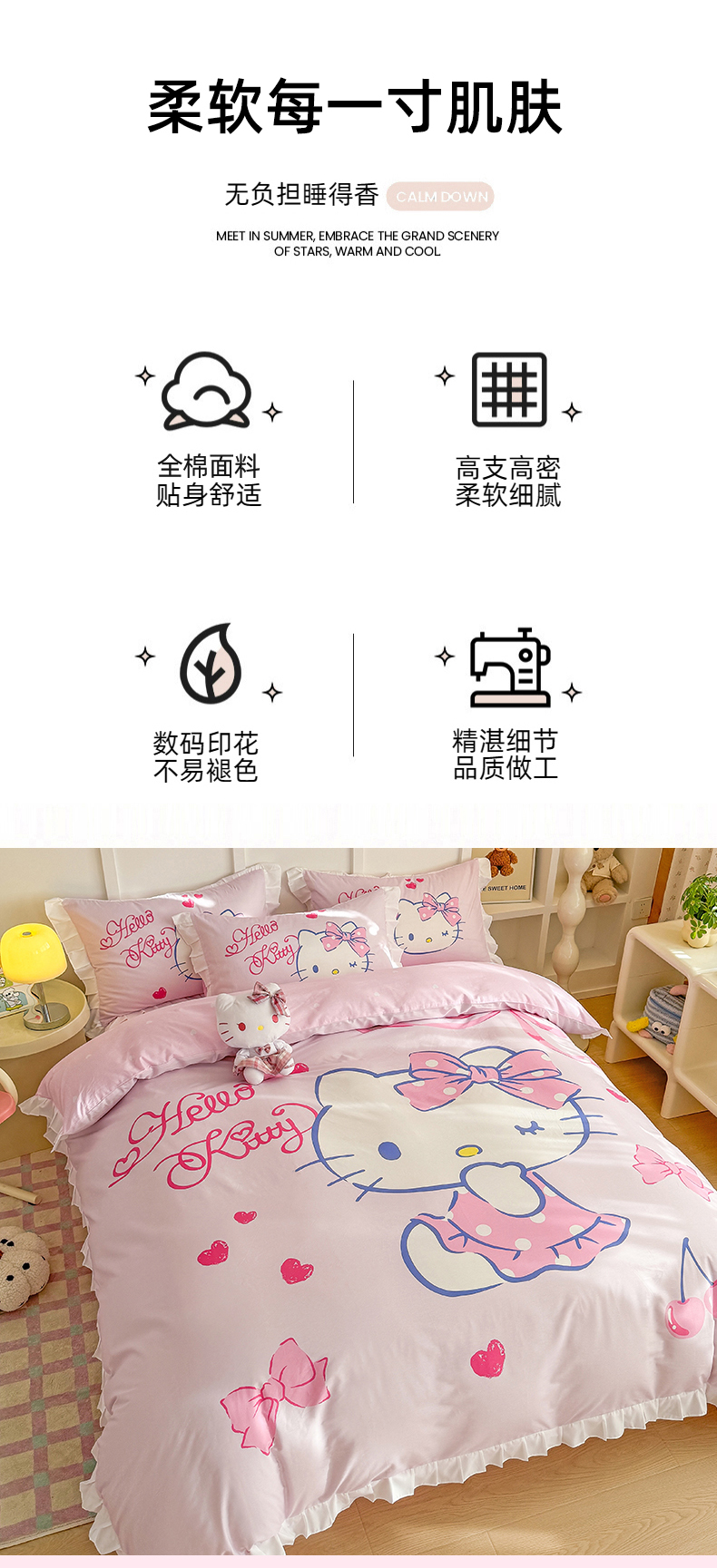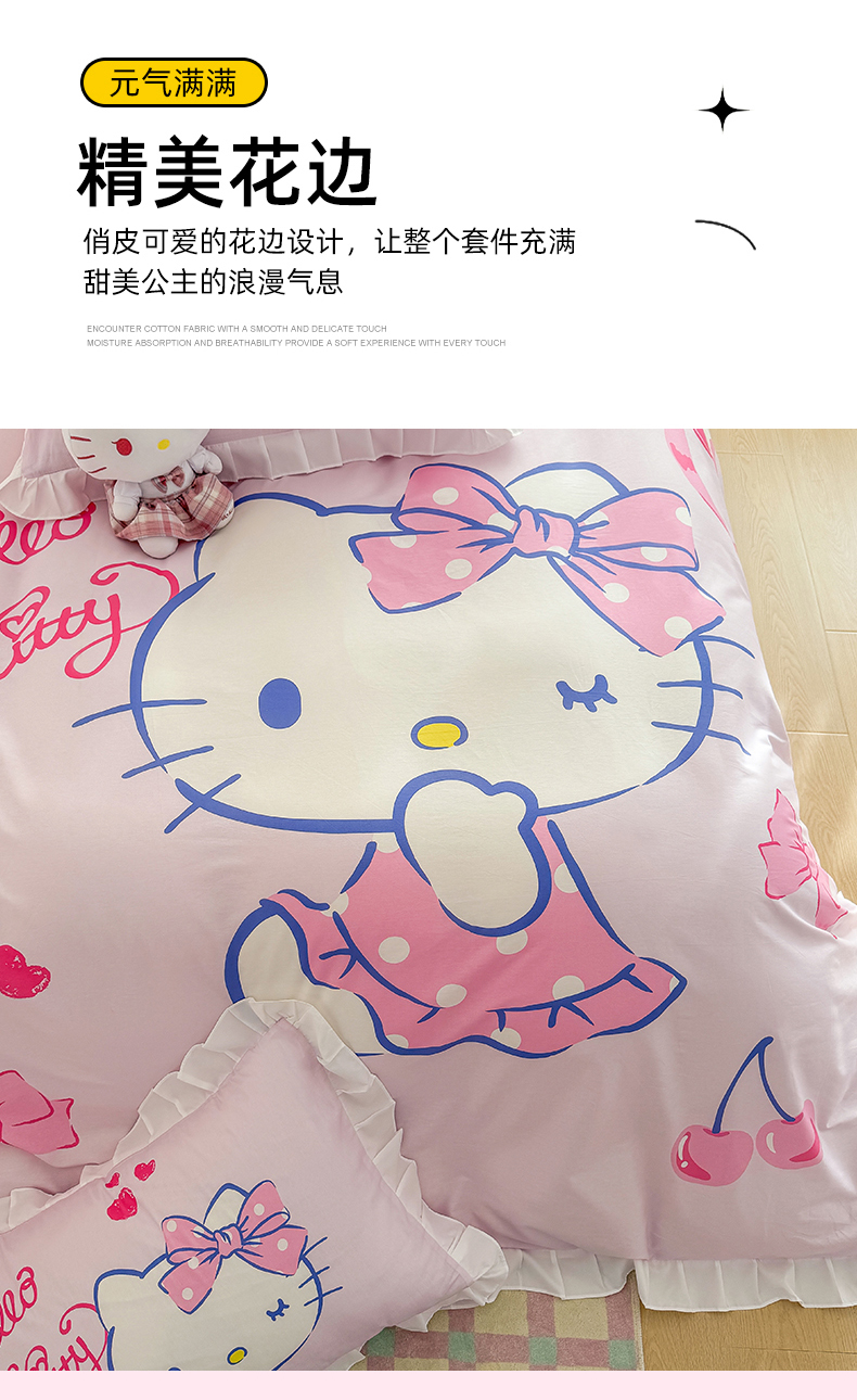 当前位置: 91家纺网 > 商品网购 > 床品套件 > 四件套 > 全棉普通四件套 > 2025新款大版三丽鸥系列 纯棉床单全棉床裙学生三四件套 花边款 大版花边-甜心凯蒂