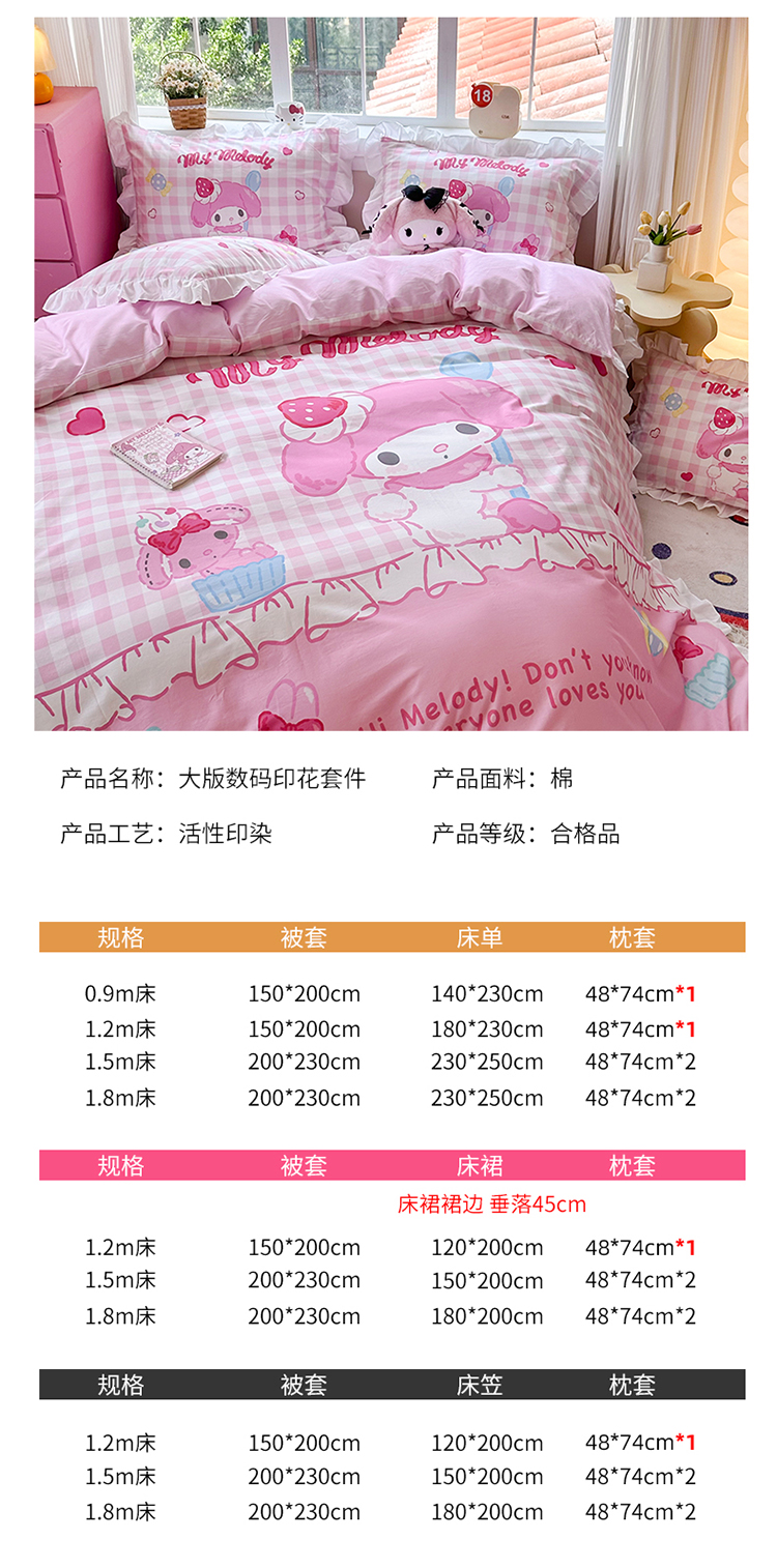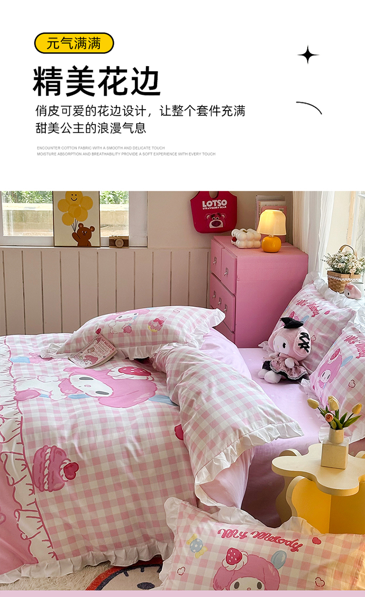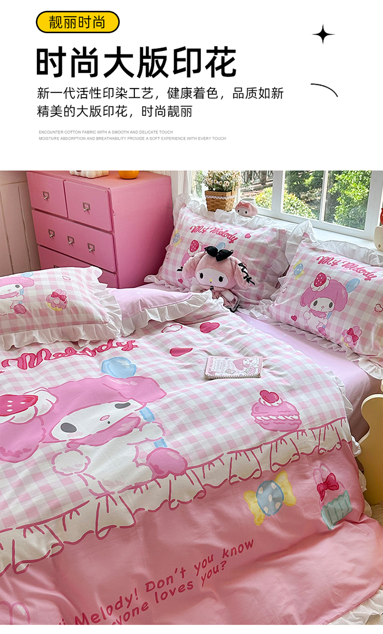 当前位置: 91家纺网 > 商品网购 > 床品套件 > 四件套 > 全棉普通四件套 > 2025新款大版三丽鸥系列 纯棉床单全棉床裙学生三四件套 花边款 星黛美乐蒂-白花边